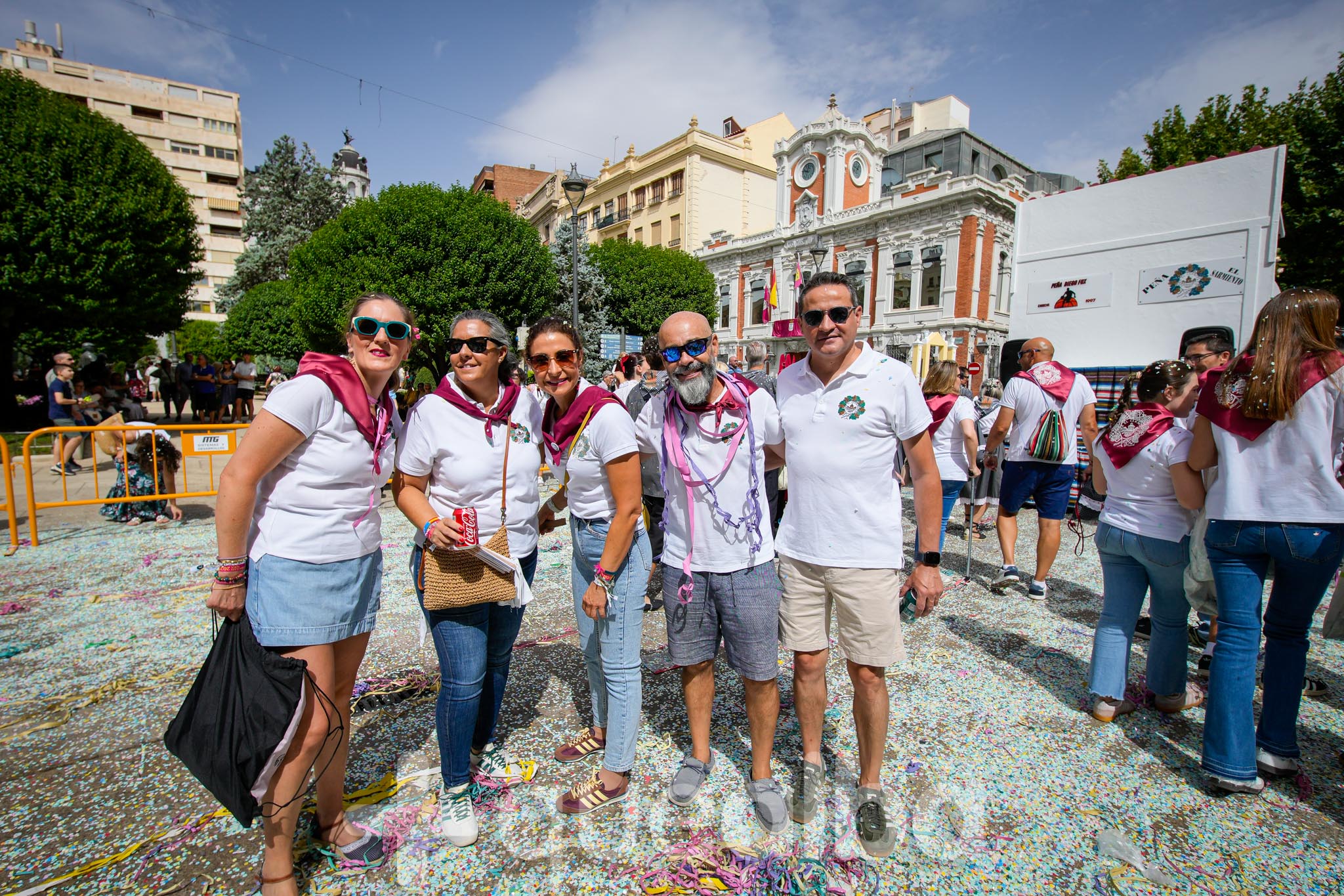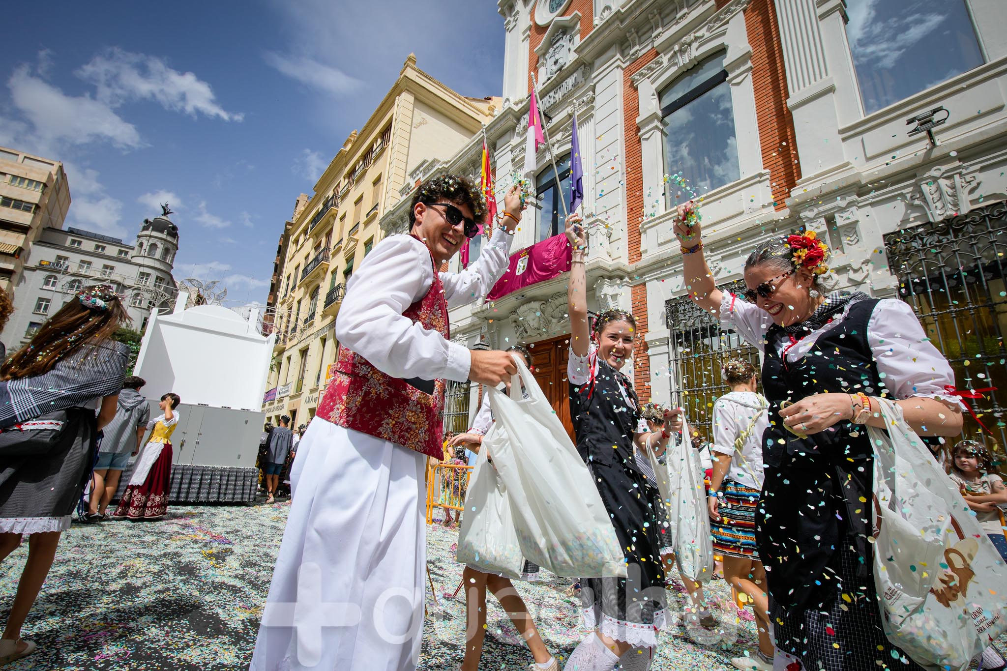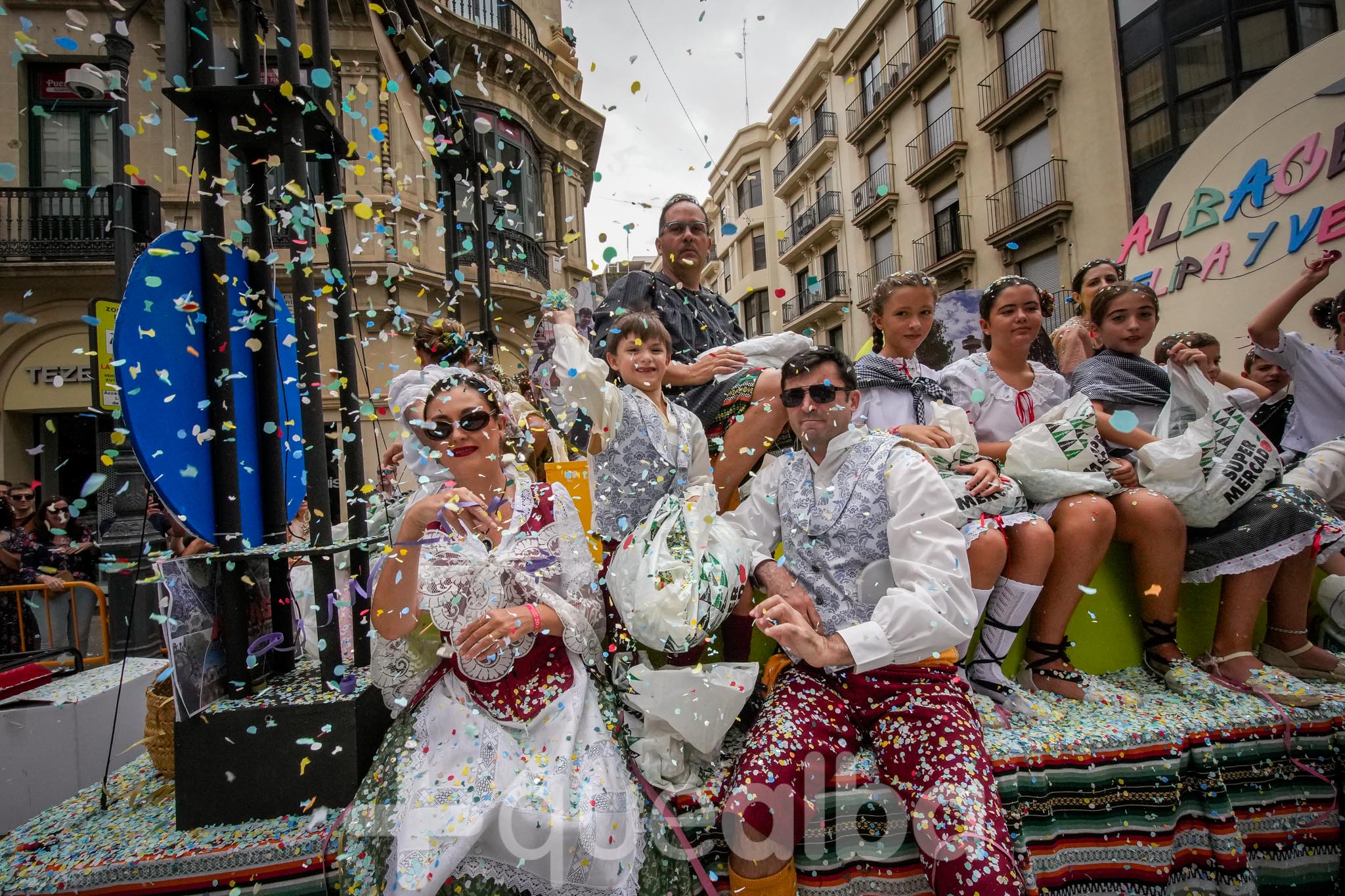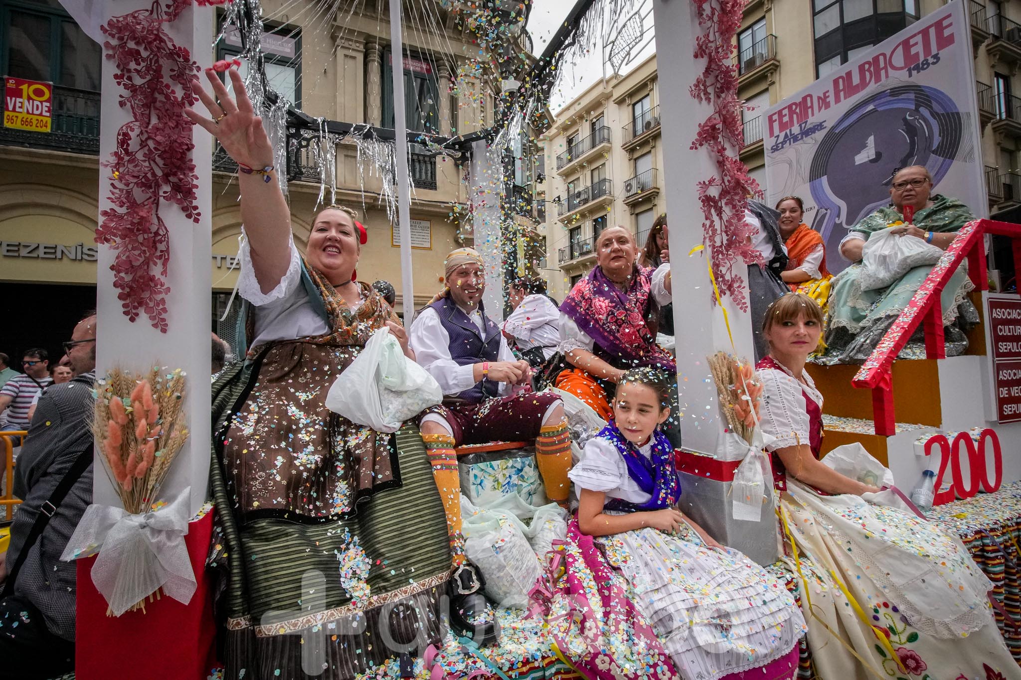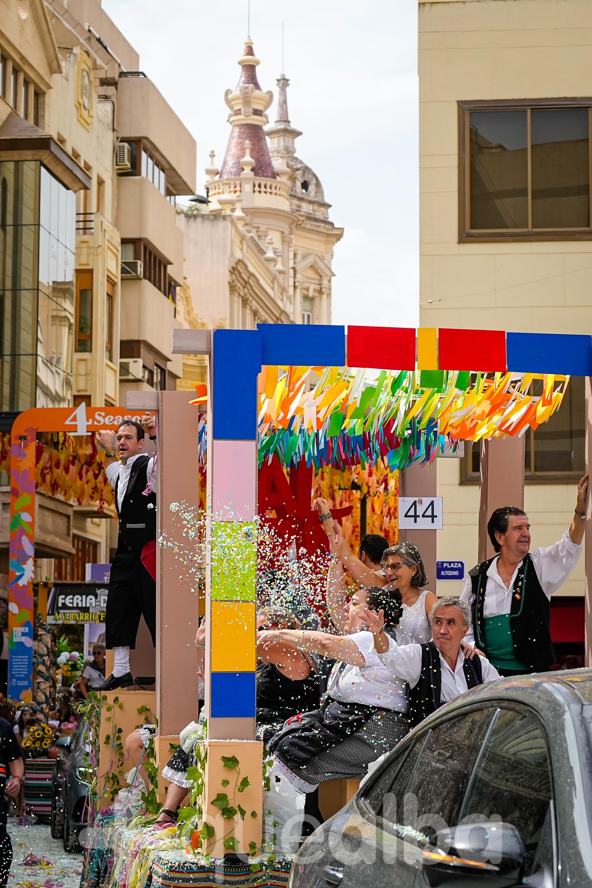 Los concejales de Infraestructuras y Proximidad, Julián Garijo y Carlos Calero, respectivamente, han participado en la tradicional y multitudinaria Batalla de Flores, que ha llenado de animación y color las calles de Albacete en esta mañana ferial del Día de la Patrona.