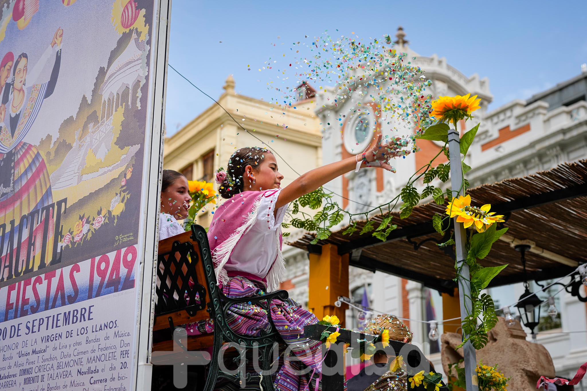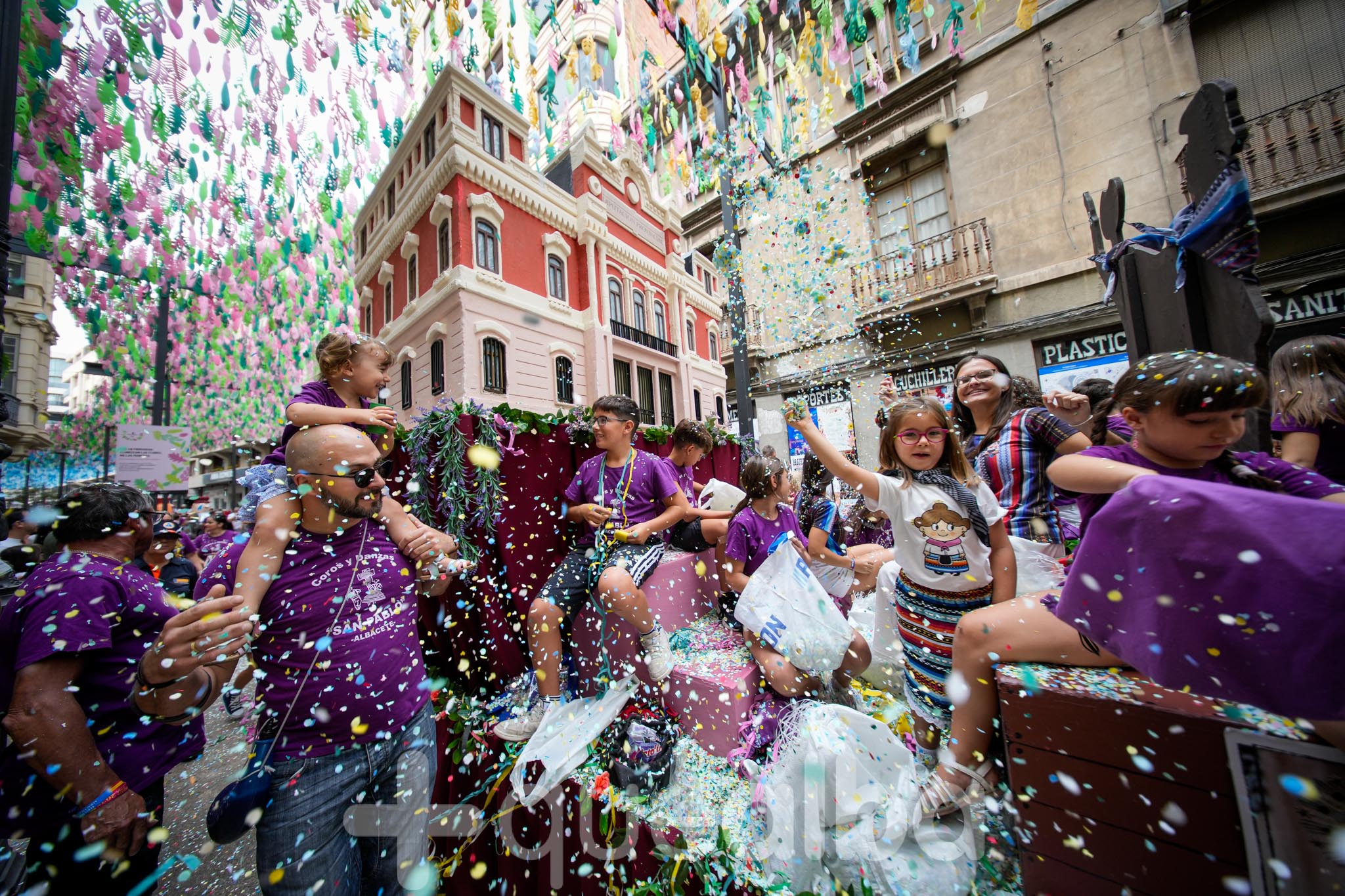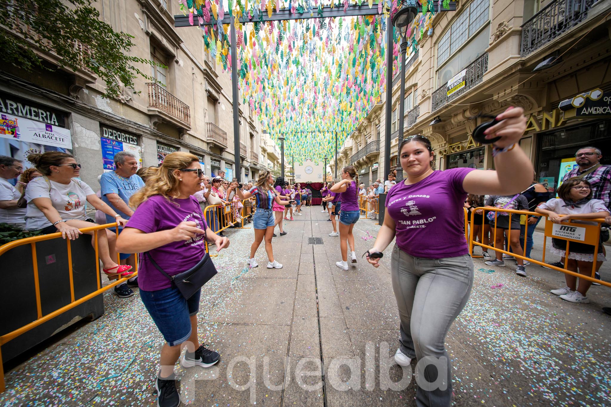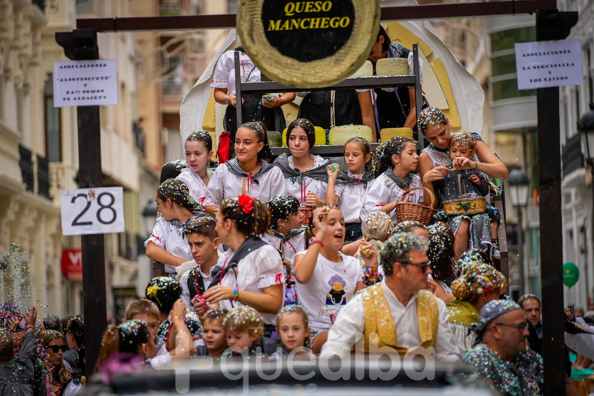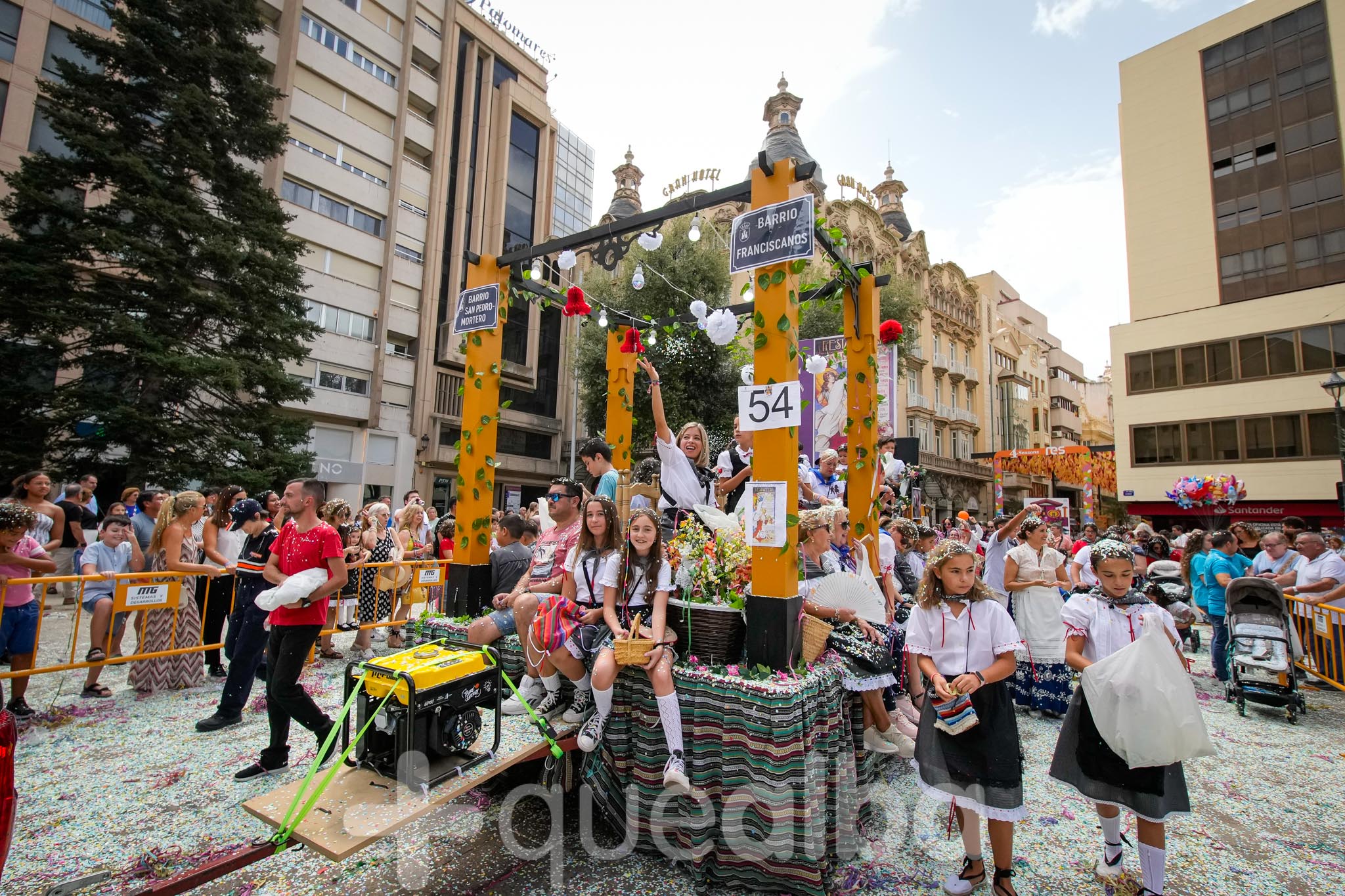 Los concejales de Infraestructuras y Proximidad, Julián Garijo y Carlos Calero, respectivamente, han participado en la tradicional y multitudinaria Batalla de Flores, que ha llenado de animación y color las calles de Albacete en esta mañana ferial del Día de la Patrona.