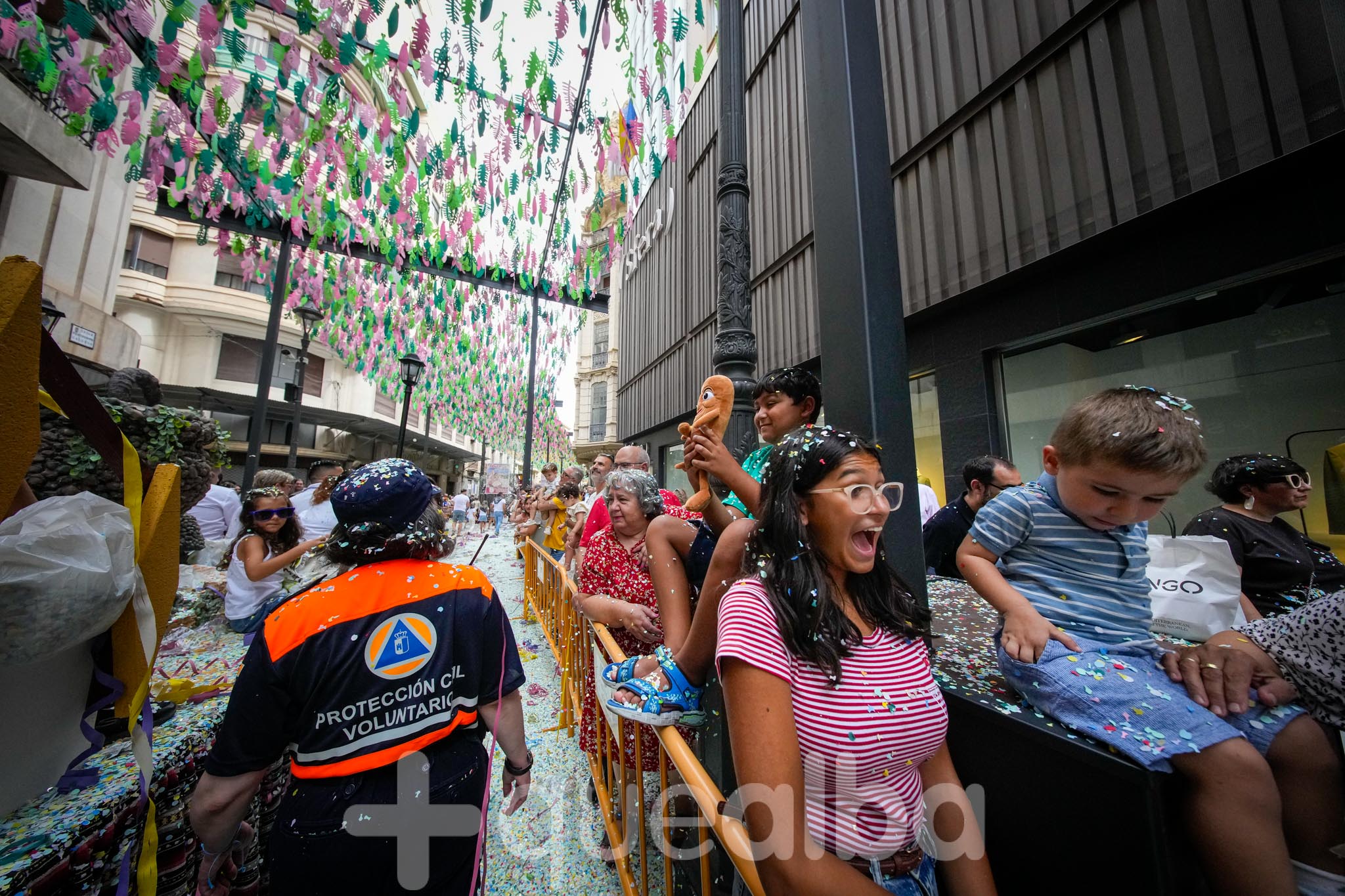 Miles de personas han contemplado la Batalla de Flores por las calles del centro de la ciudad, que inmediatamente han sido limpiadas y despejadas por los servicios de limpieza urbana.