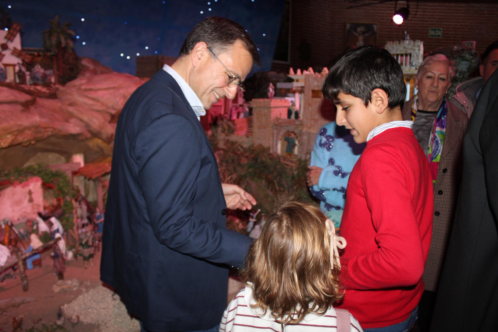 Manuel Serrano ha felicitado al párroco y presidente de la Asociación, Luis Enrique Martínez Galera, por este belén que cada año visitan miles de personas, y que en esta ocasión destinará el dinero recaudado a las mujeres afectadas de cáncer de mama a través de Amac.