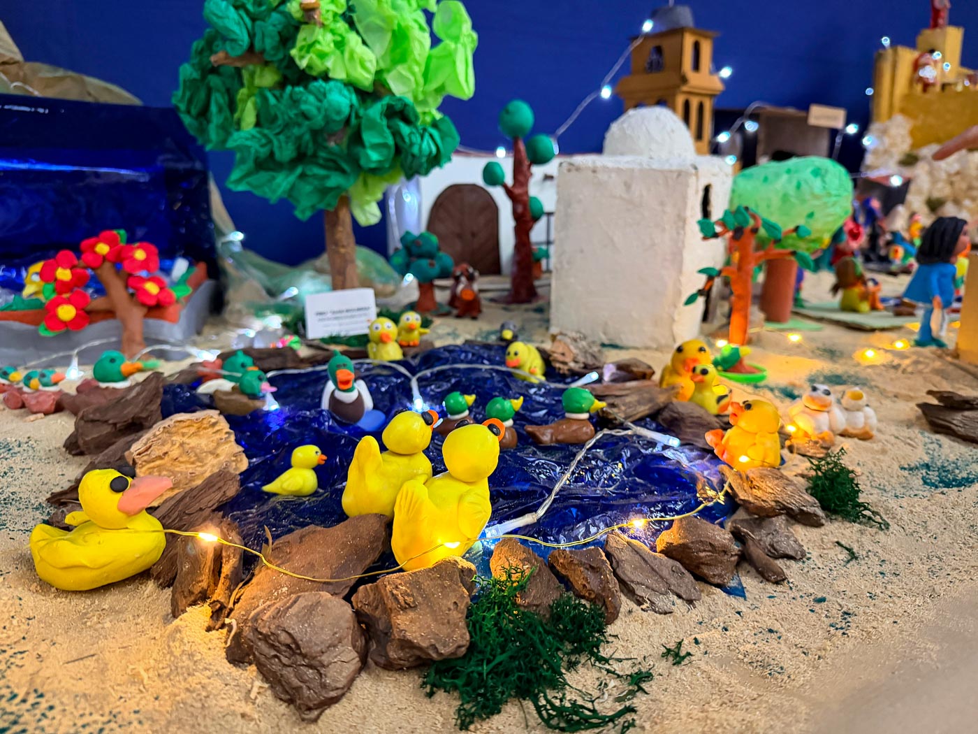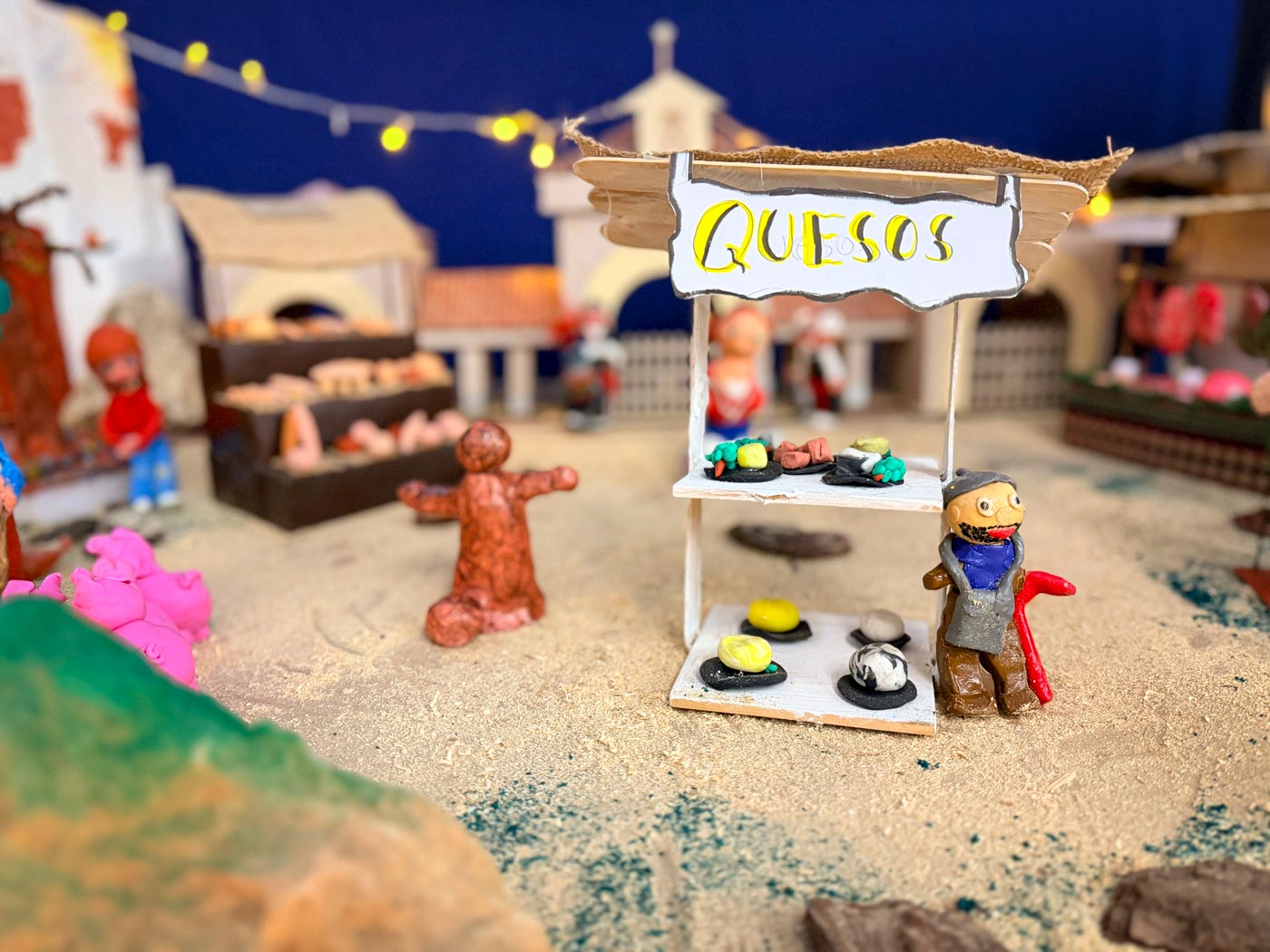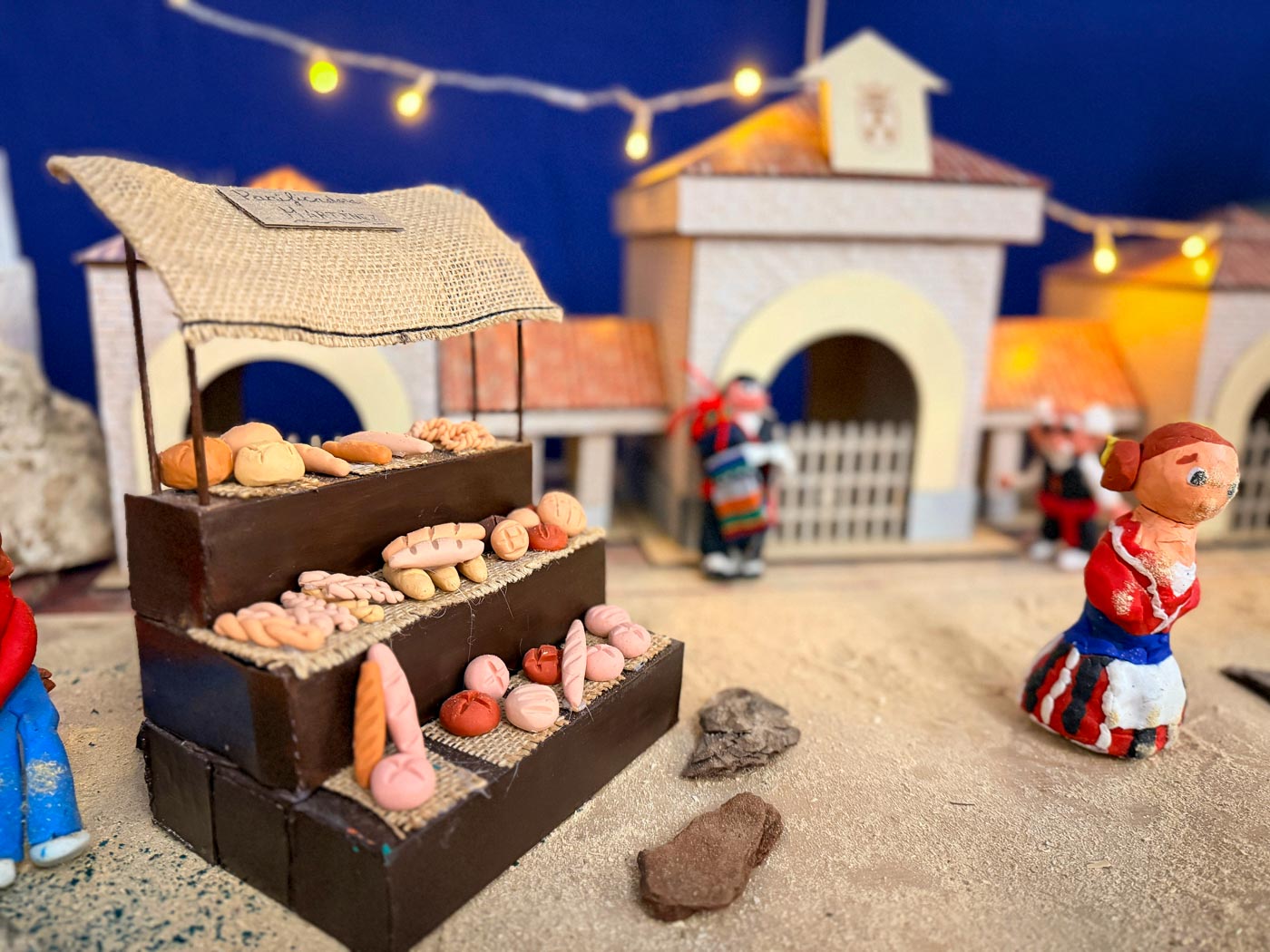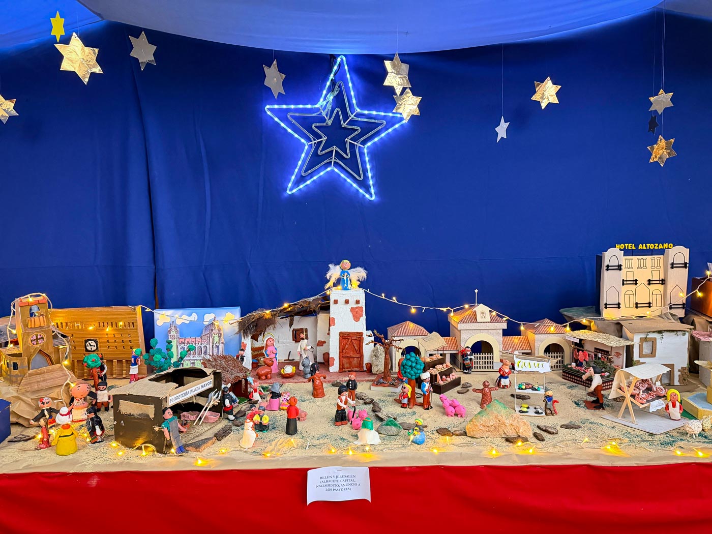 También se ha reproducido comercios emblemáticos, como la Ferretería de la Plaza Mayor; o puestos de los tradicionales Miguelitos de La Roda; en un Belén donde, por supuesto, no faltan los pastores o el nacimiento del niño Jesús.
