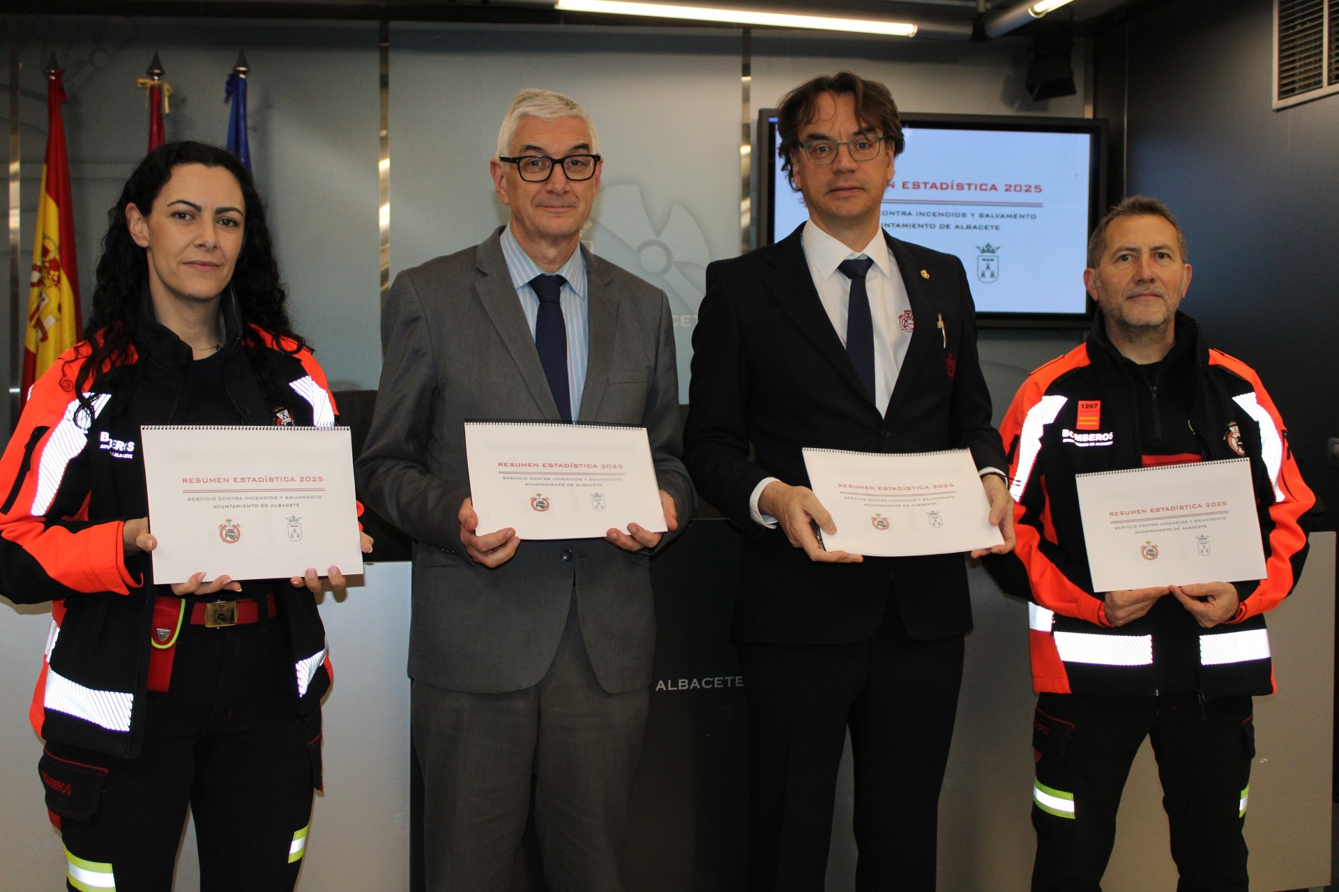 Así lo ha señalado Alberto Reina durante la presentación de la Memoria de actuaciones del Servicio municipal Contra Incendios y Salvamento correspondiente al pasado año 2025, acompañado por el jefe del mismo, Ismael Pérez, junto a César, Jefe de Sección de Prevención y Mantenimiento, y Gema García, Oficial Técnico.