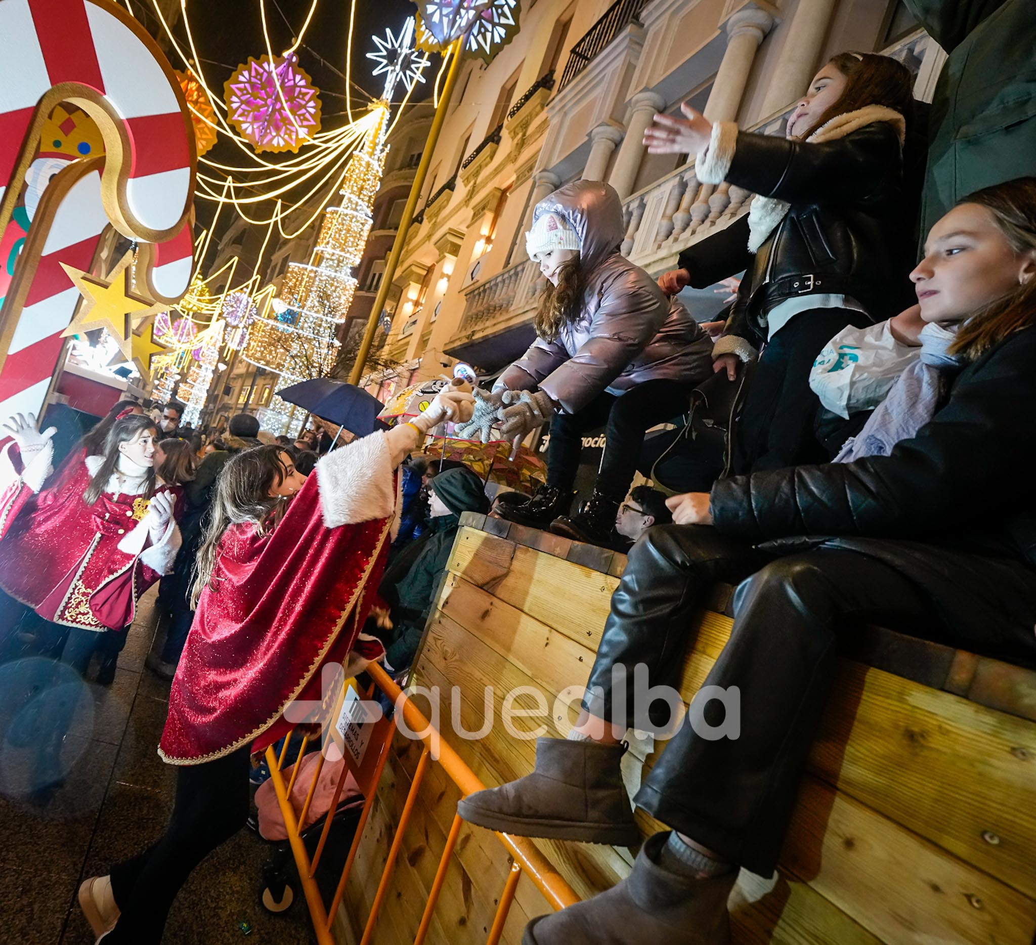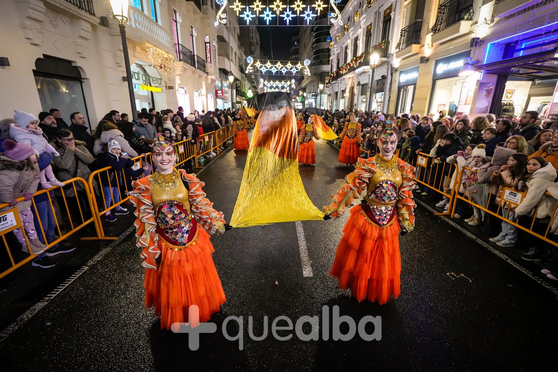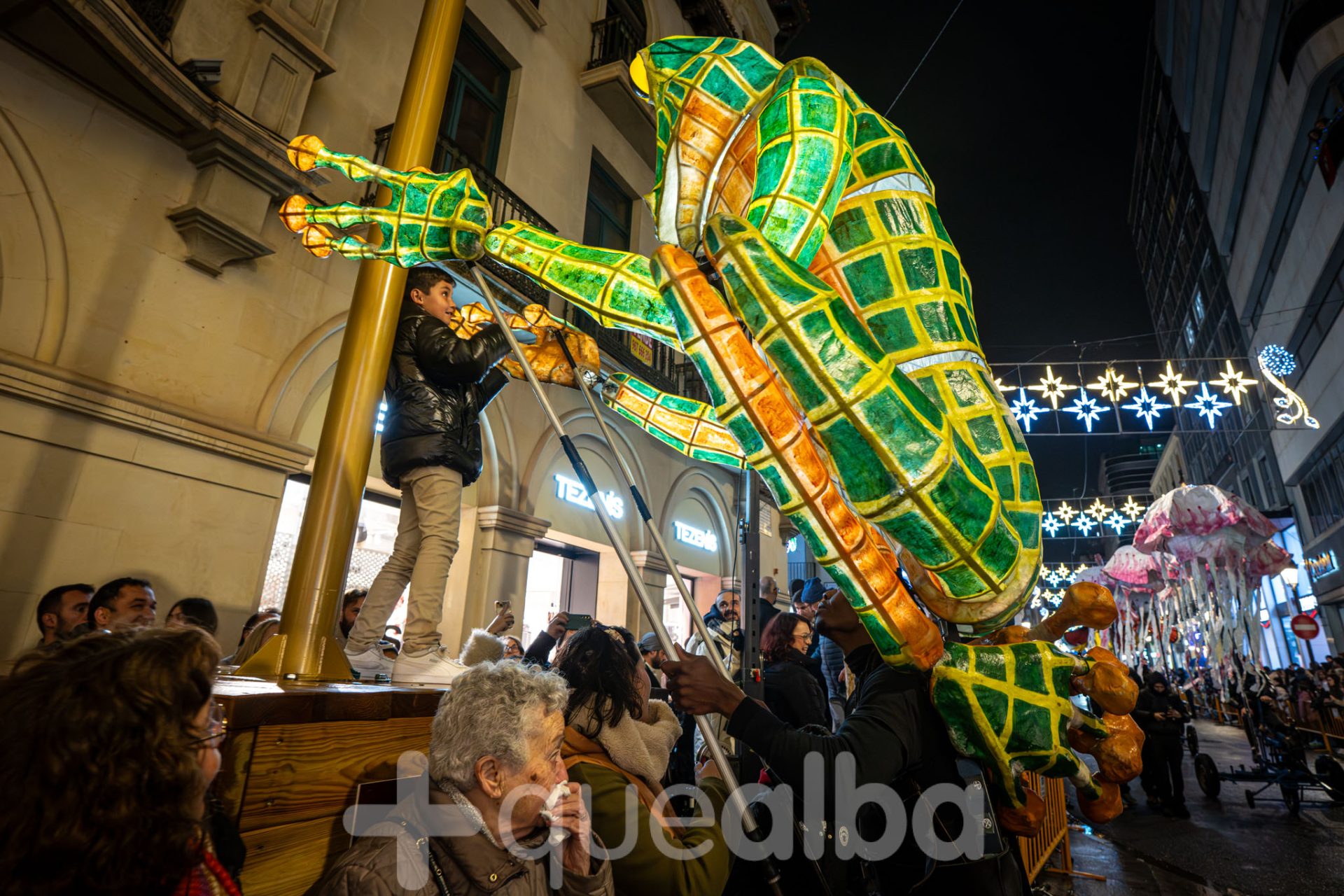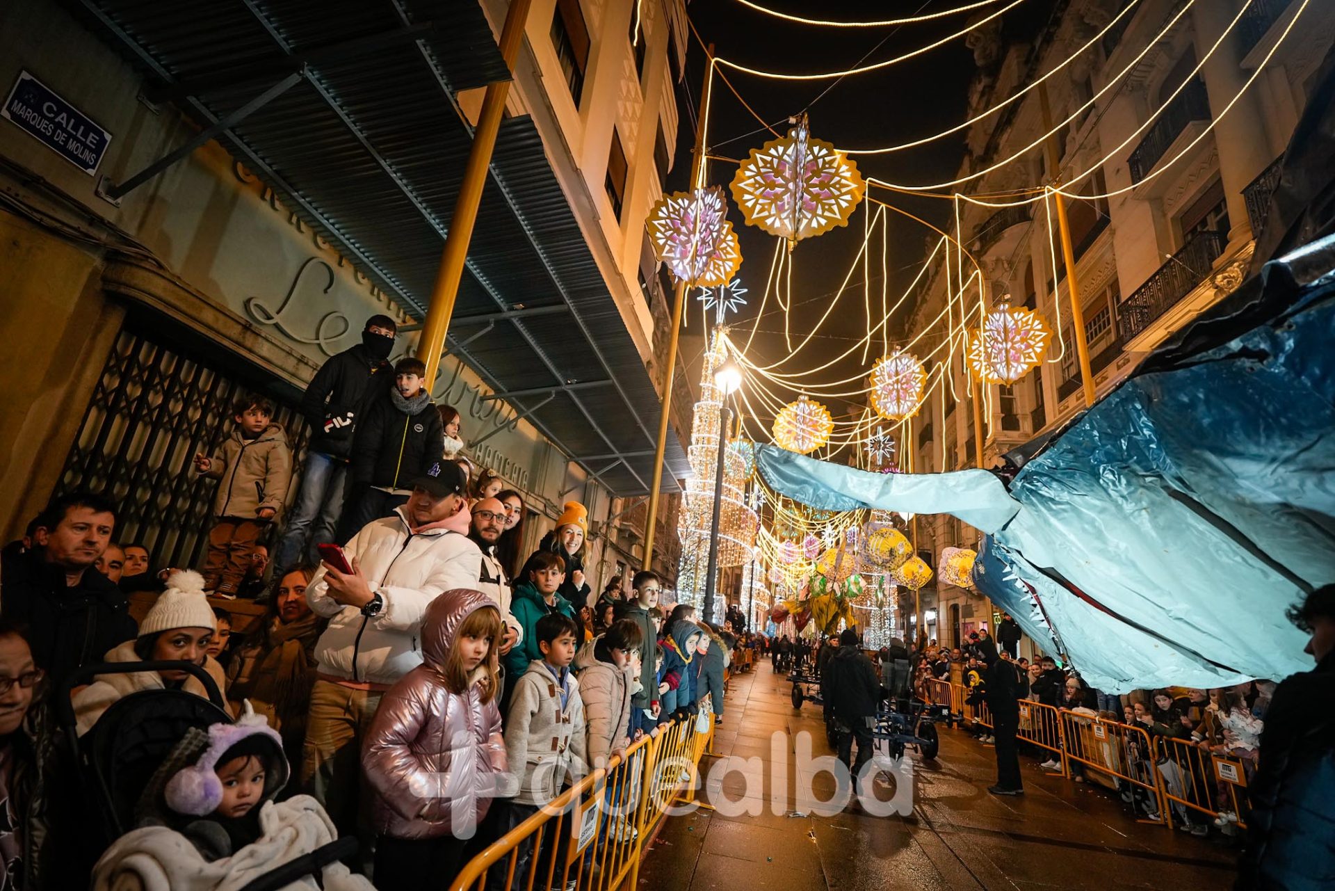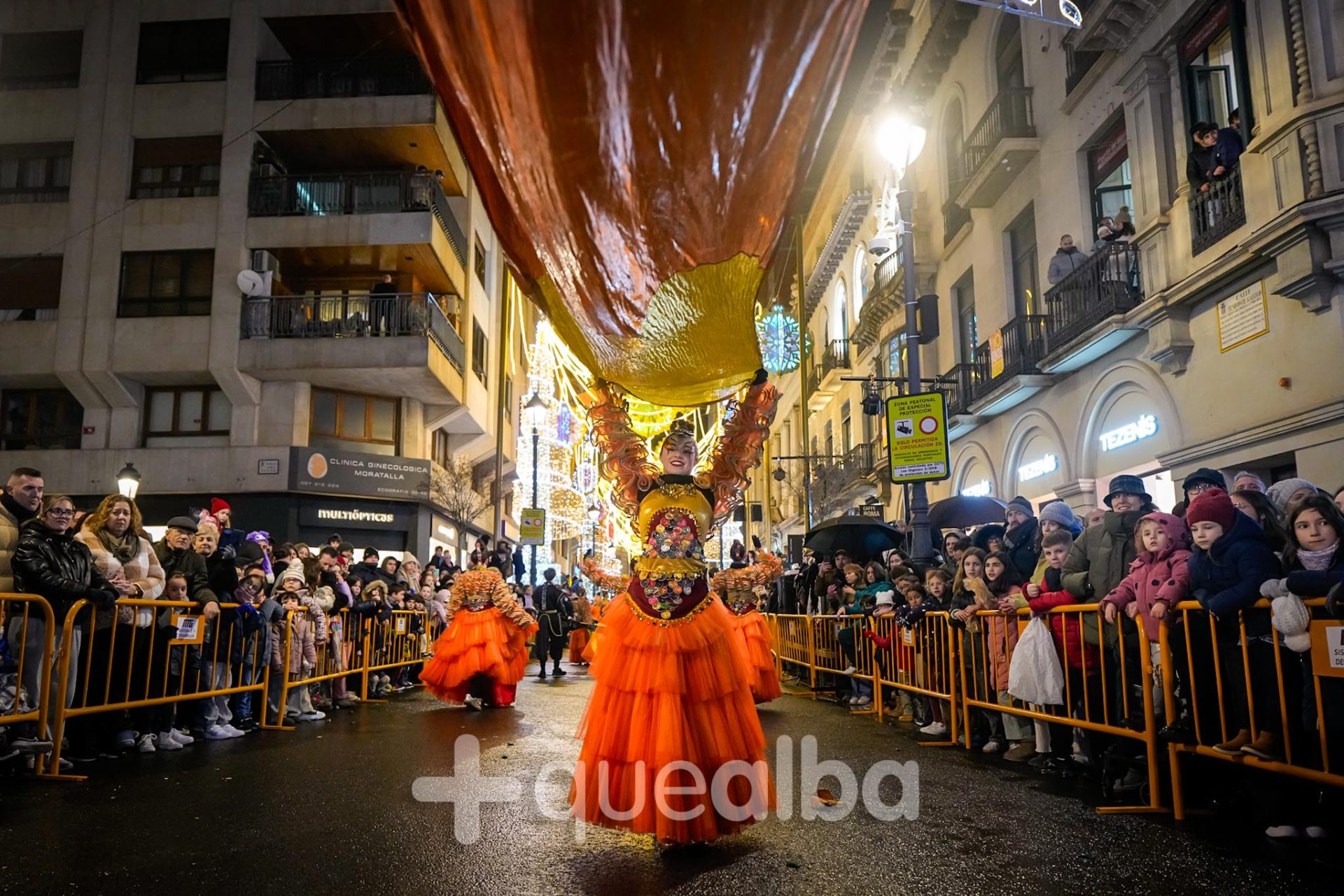 Un total de 29 carrozas y grupos de animación han recorrido unas calles abarrotadas pese al mal tiempo, “la cabalgata más larga y brillante de la historia, que todos recordaremos”, ha dicho el alcalde. Serrano ha agradecido la presencia de seis rondallas en varios puntos del recorrido, donde se han repartido más de 10.000 regalos y 1.200 kilos de caramelos contribuyendo a la animación y el ambiente, así como un camión de bomberos cerrando el desfile. Para garantizar la inclusión y mejorar la experiencia de todos, se han reservado dos zonas específicas para personas con movilidad reducida de modo que “todos han podido disfrutar de esta gran fiesta de esperanza e ilusión”.