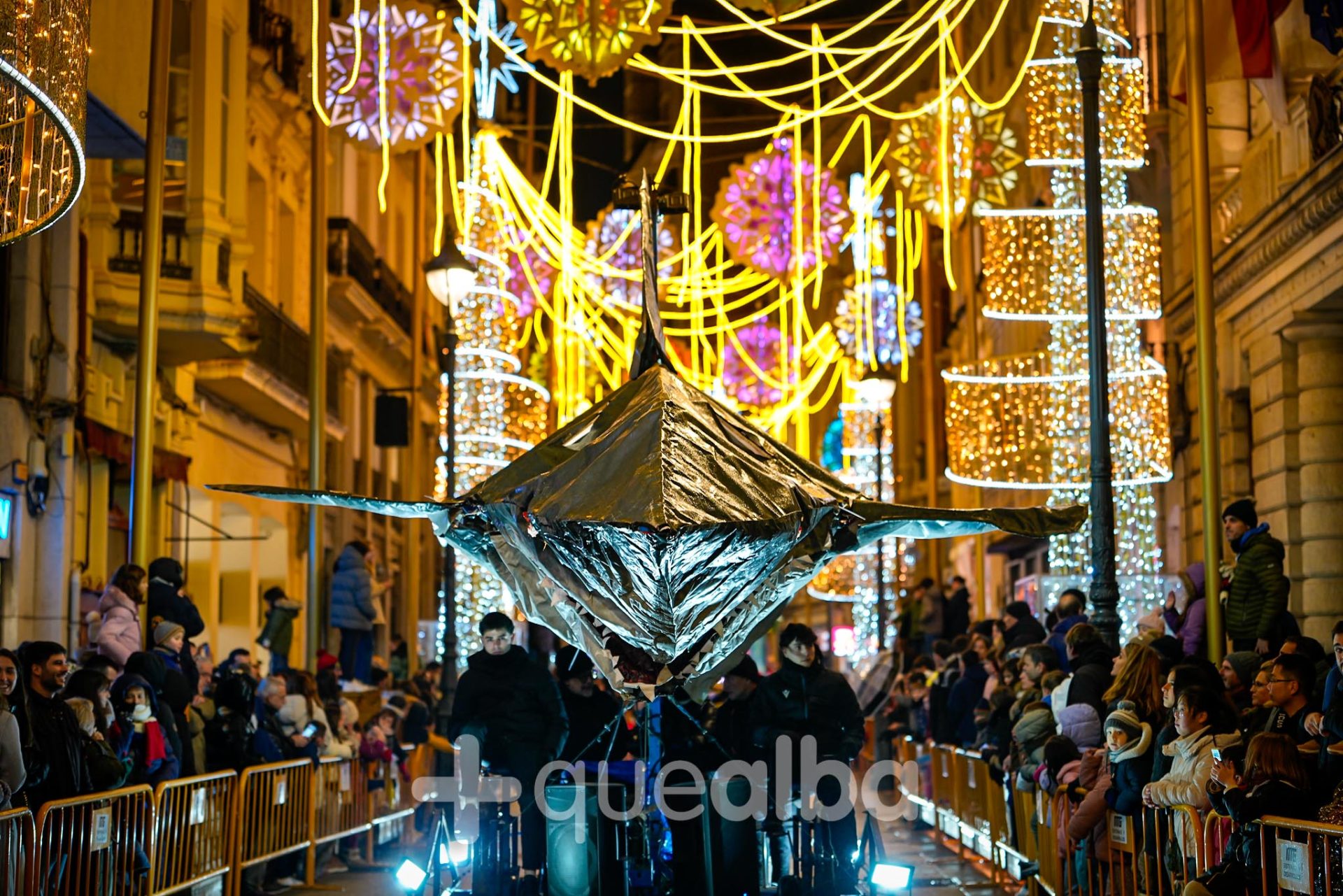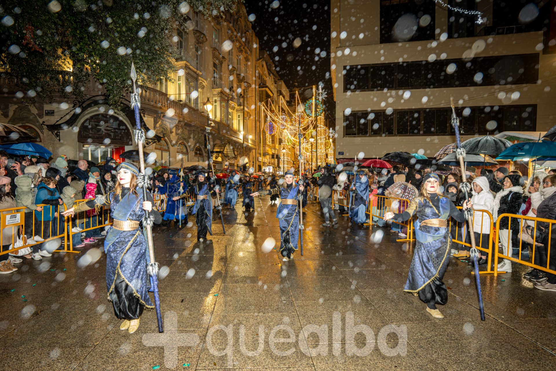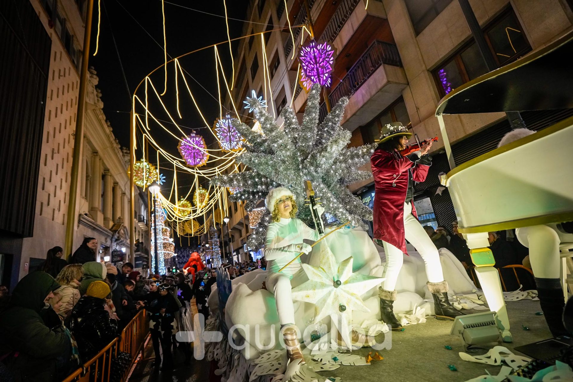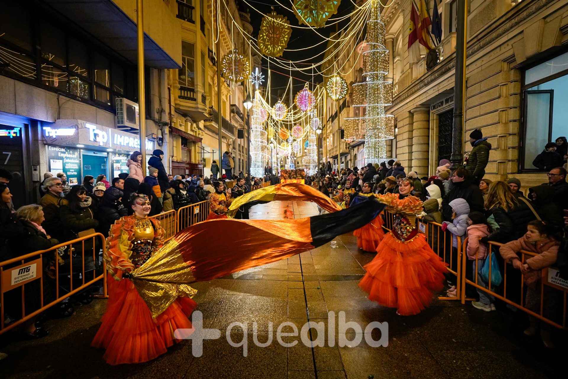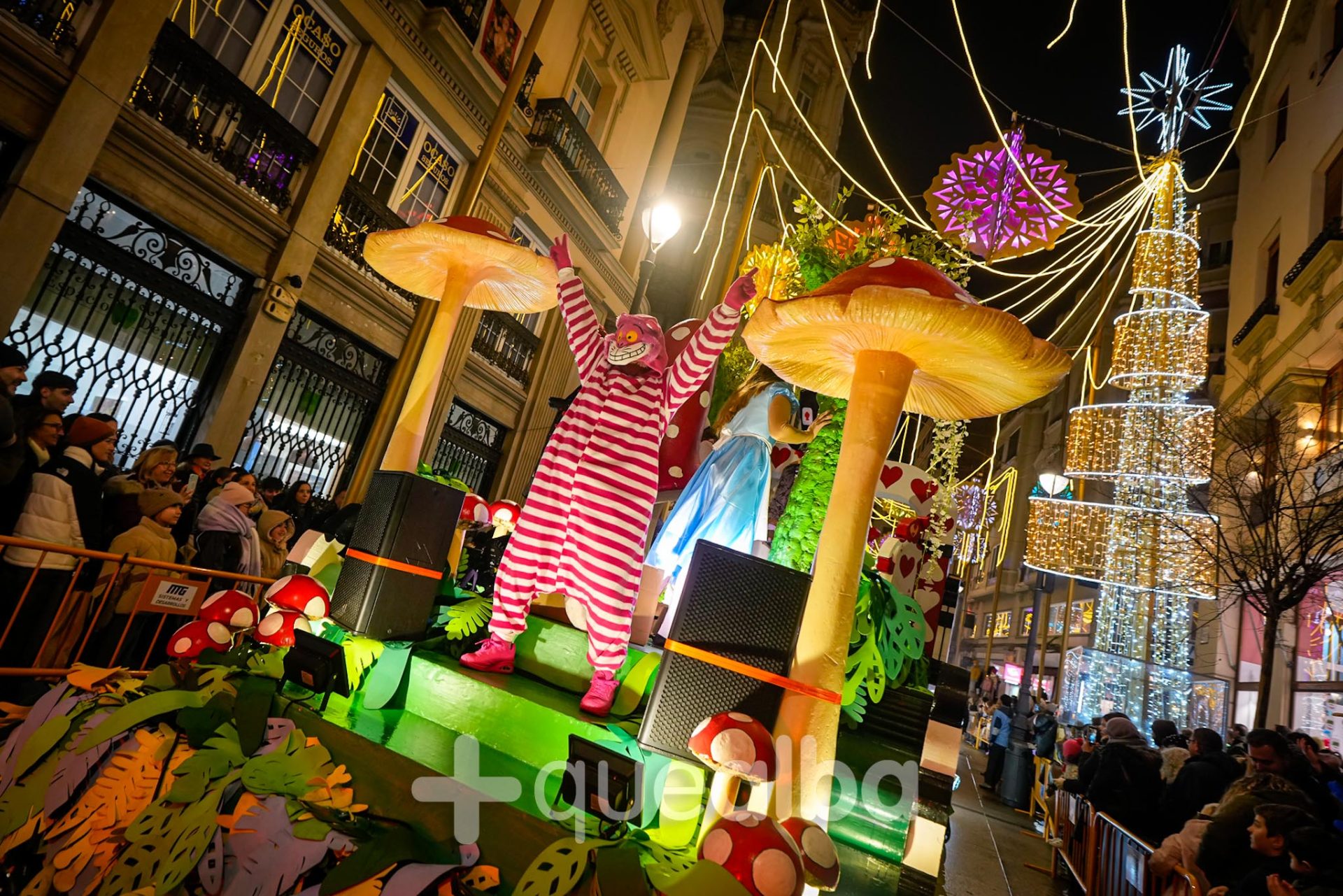 Un total de 29 carrozas y grupos de animación han recorrido unas calles abarrotadas pese al mal tiempo, “la cabalgata más larga y brillante de la historia, que todos recordaremos”, ha dicho el alcalde. Serrano ha agradecido la presencia de seis rondallas en varios puntos del recorrido, donde se han repartido más de 10.000 regalos y 1.200 kilos de caramelos contribuyendo a la animación y el ambiente, así como un camión de bomberos cerrando el desfile. Para garantizar la inclusión y mejorar la experiencia de todos, se han reservado dos zonas específicas para personas con movilidad reducida de modo que “todos han podido disfrutar de esta gran fiesta de esperanza e ilusión”.