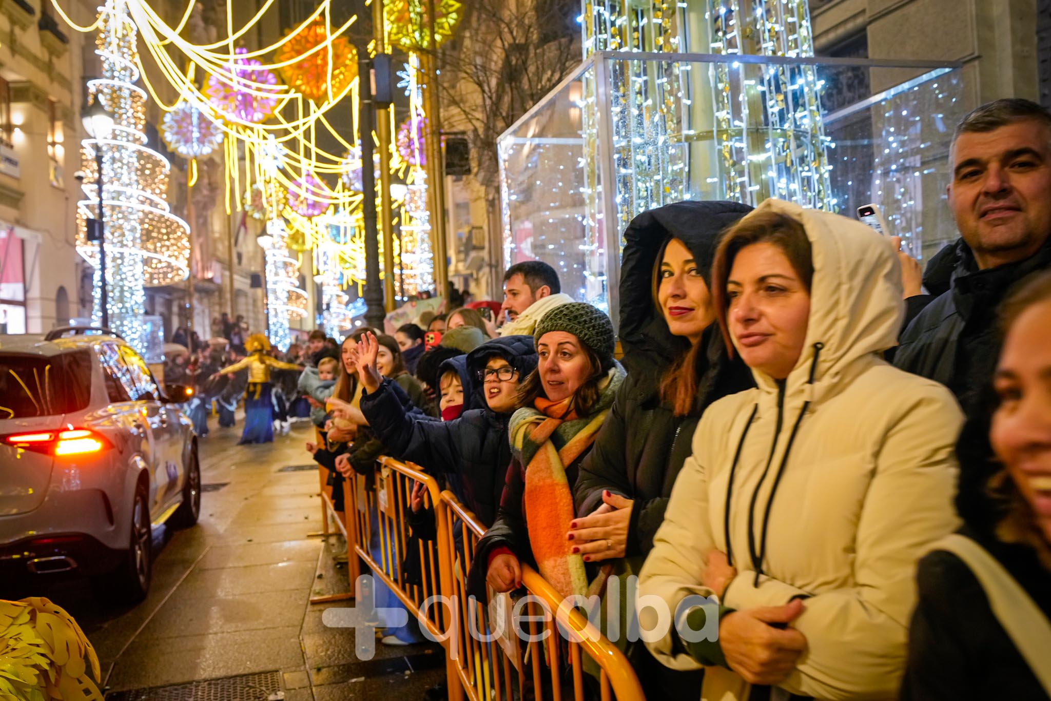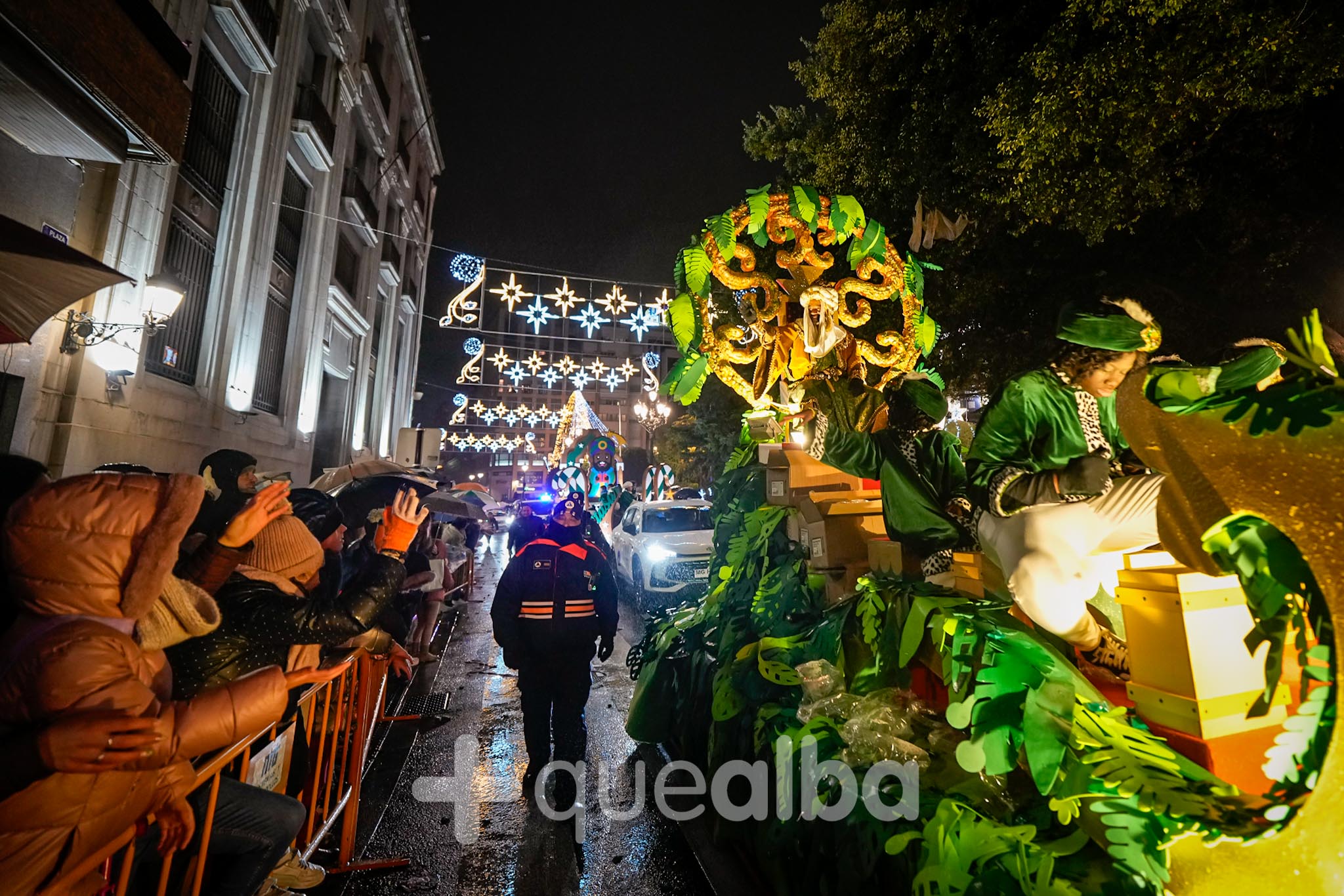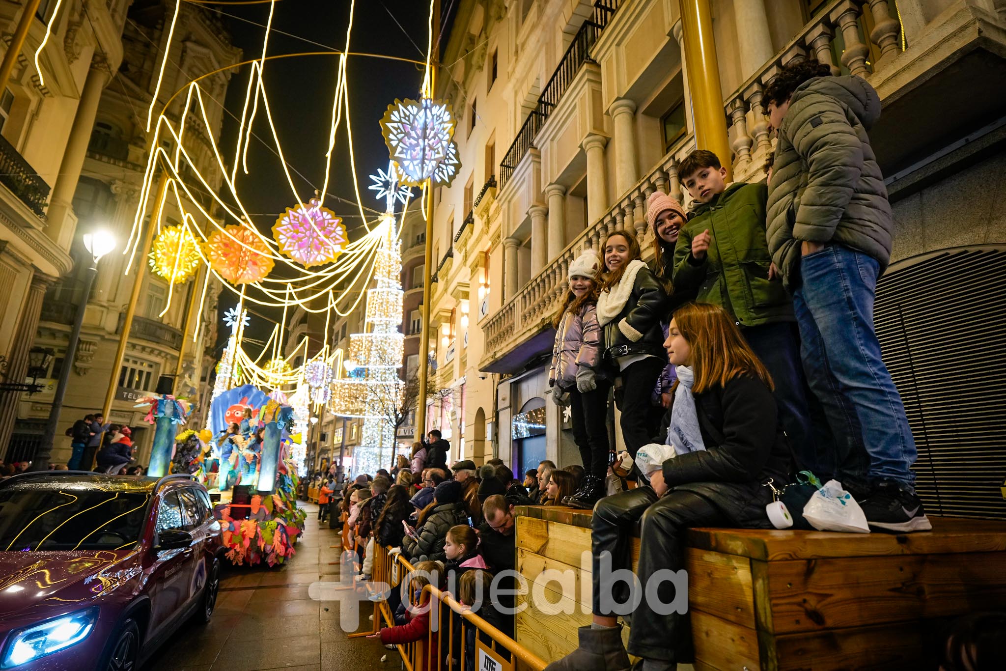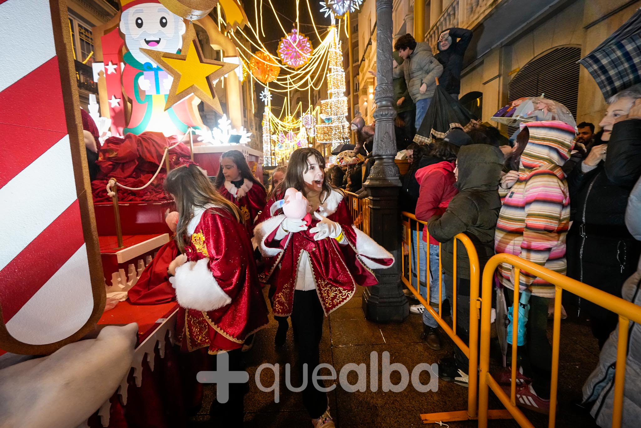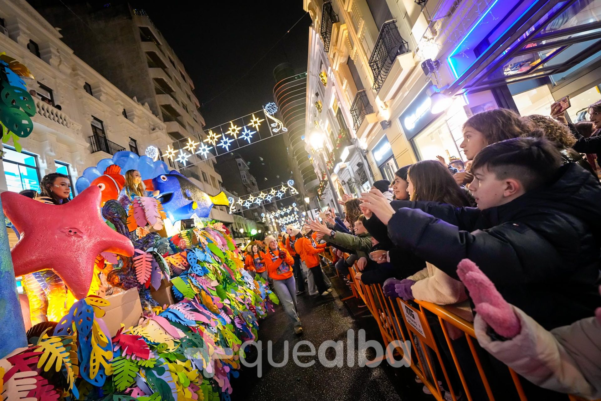 Un total de 29 carrozas y grupos de animación han recorrido unas calles abarrotadas pese al mal tiempo, “la cabalgata más larga y brillante de la historia, que todos recordaremos”, ha dicho el alcalde. Serrano ha agradecido la presencia de seis rondallas en varios puntos del recorrido, donde se han repartido más de 10.000 regalos y 1.200 kilos de caramelos contribuyendo a la animación y el ambiente, así como un camión de bomberos cerrando el desfile. Para garantizar la inclusión y mejorar la experiencia de todos, se han reservado dos zonas específicas para personas con movilidad reducida de modo que “todos han podido disfrutar de esta gran fiesta de esperanza e ilusión”.