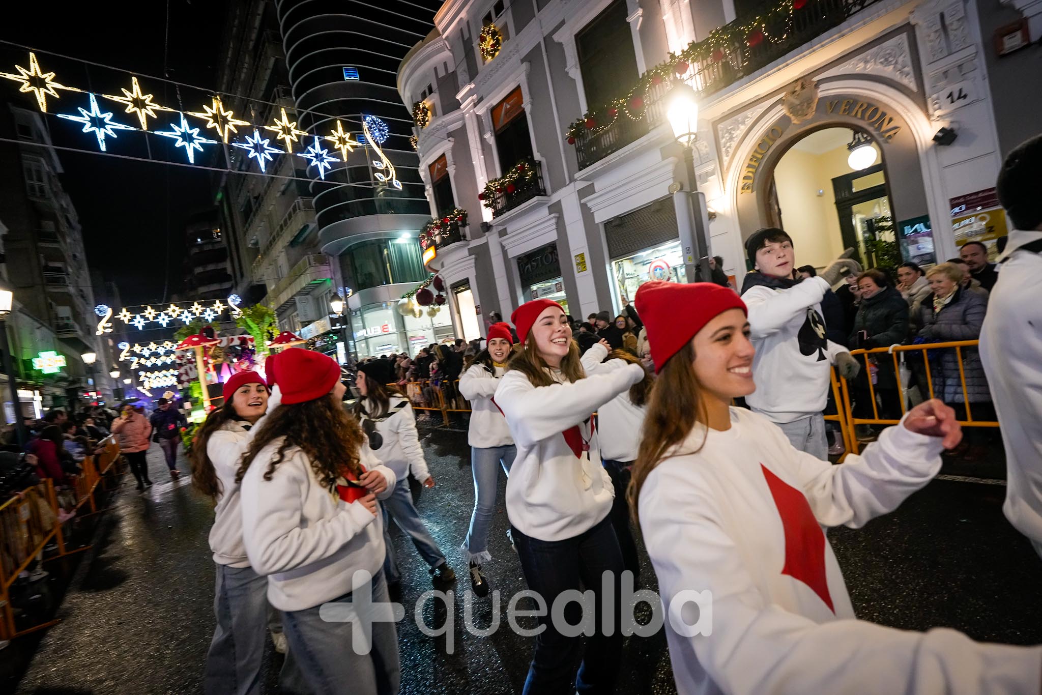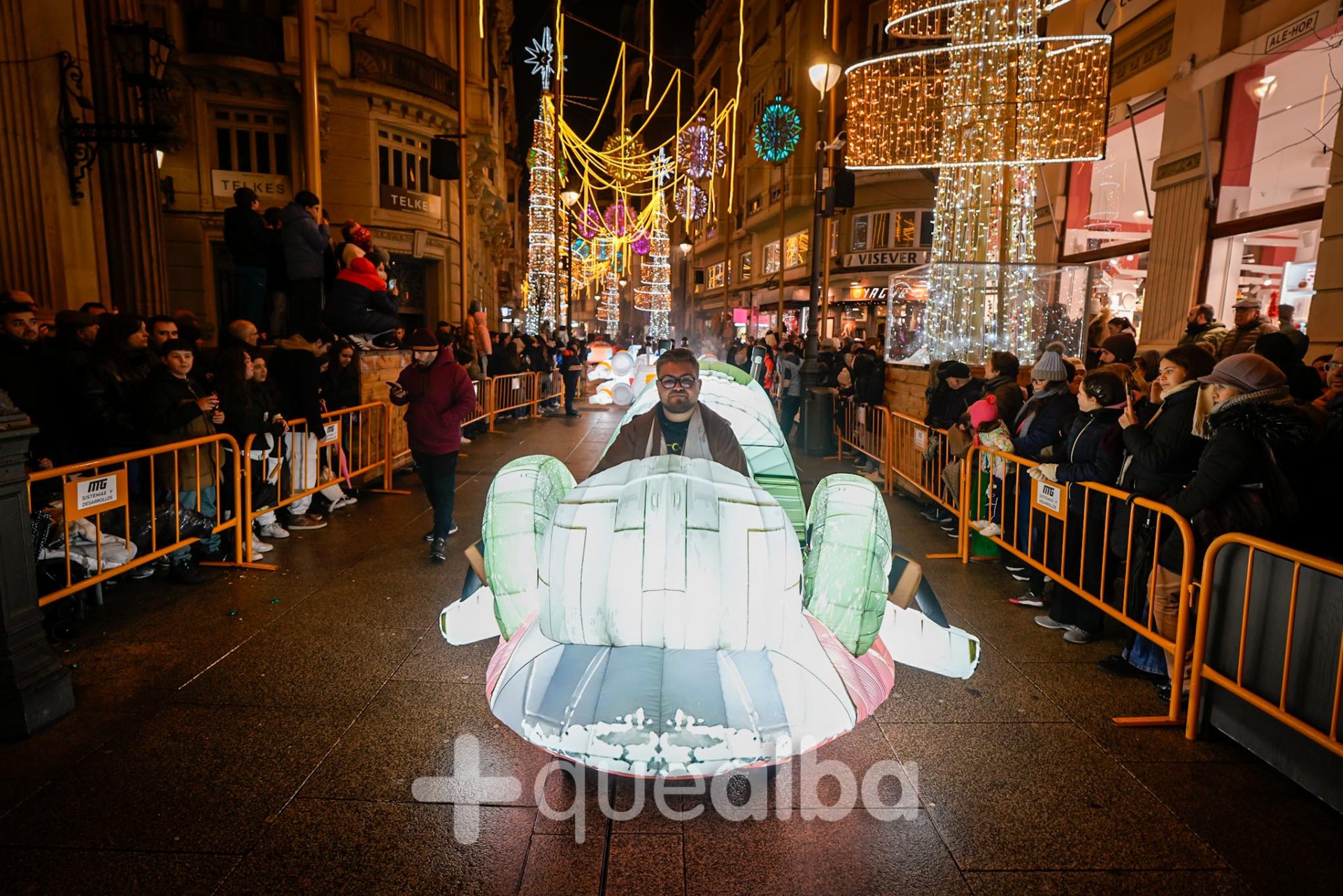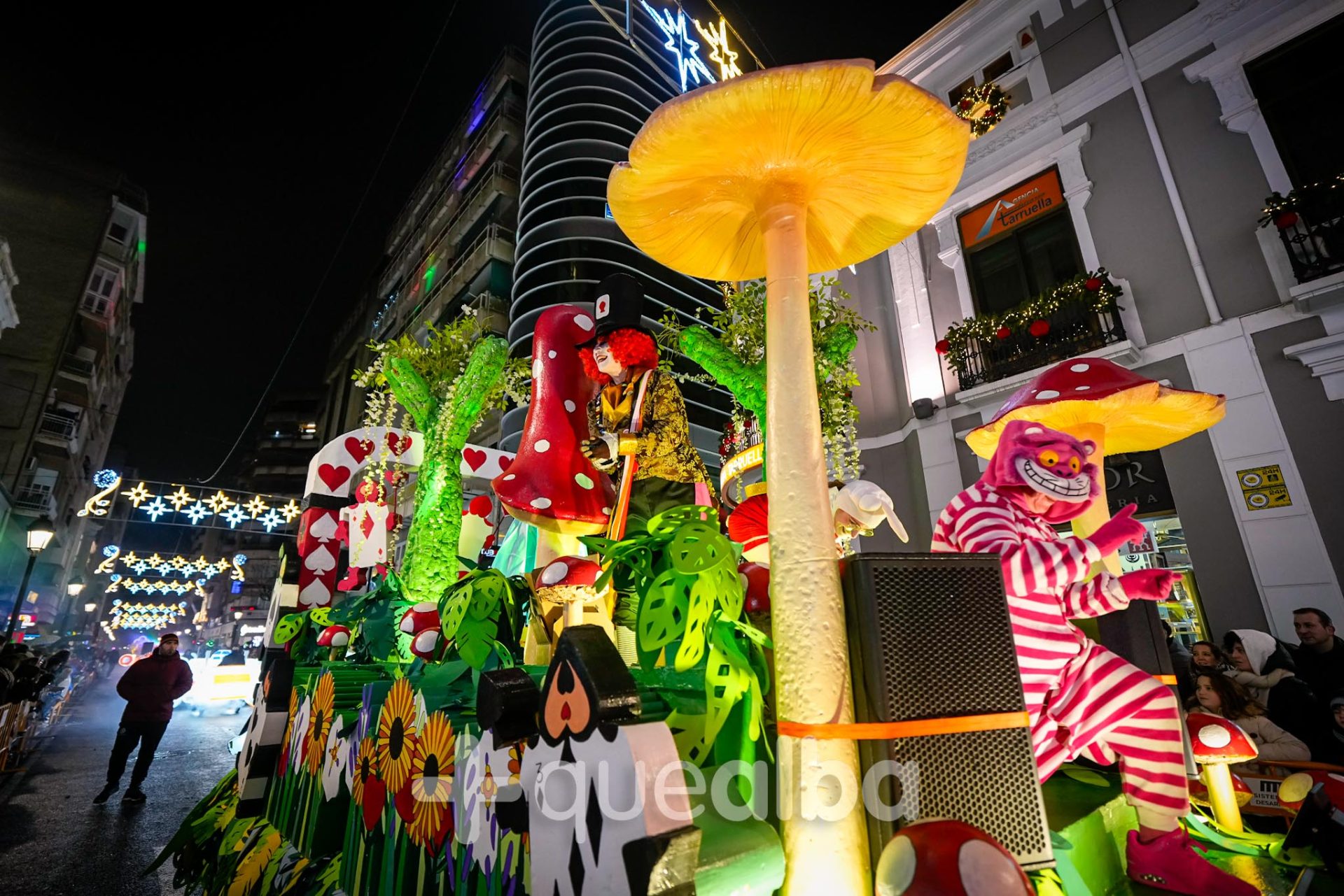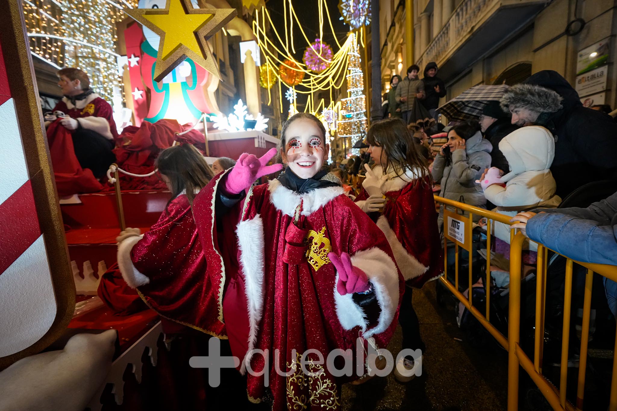 Un total de 29 carrozas y grupos de animación han recorrido unas calles abarrotadas pese al mal tiempo, “la cabalgata más larga y brillante de la historia, que todos recordaremos”, ha dicho el alcalde. Serrano ha agradecido la presencia de seis rondallas en varios puntos del recorrido, donde se han repartido más de 10.000 regalos y 1.200 kilos de caramelos contribuyendo a la animación y el ambiente, así como un camión de bomberos cerrando el desfile. Para garantizar la inclusión y mejorar la experiencia de todos, se han reservado dos zonas específicas para personas con movilidad reducida de modo que “todos han podido disfrutar de esta gran fiesta de esperanza e ilusión”.