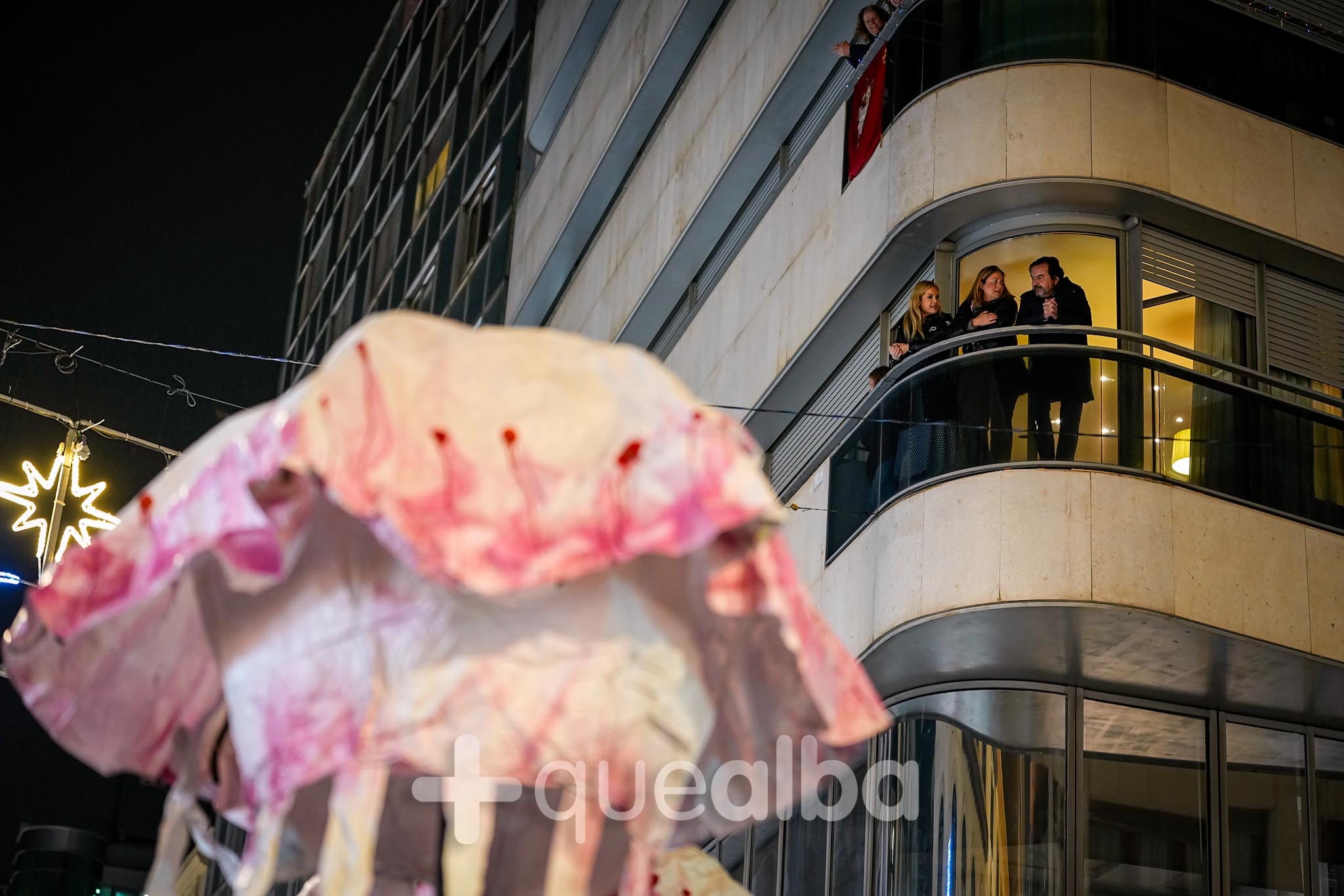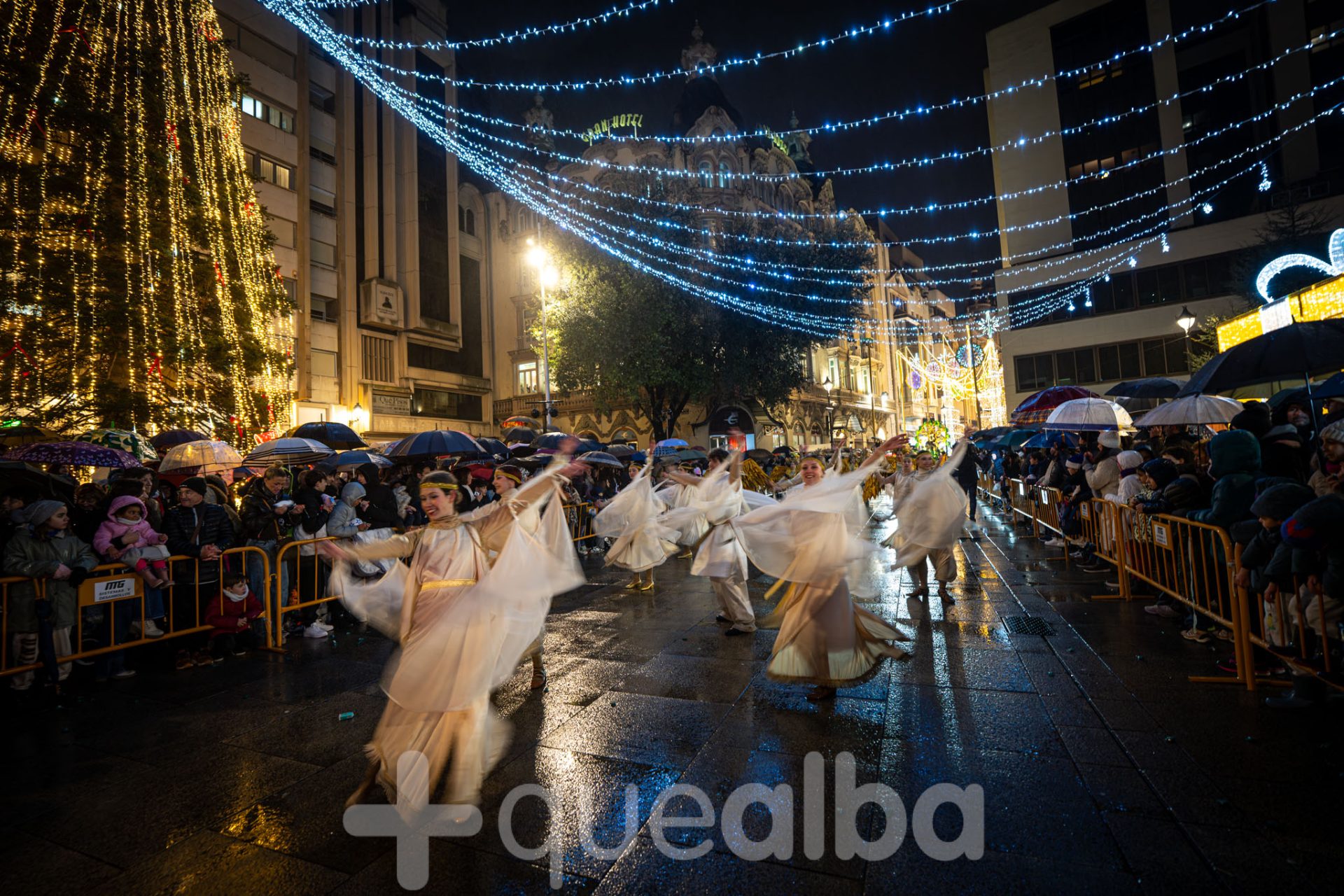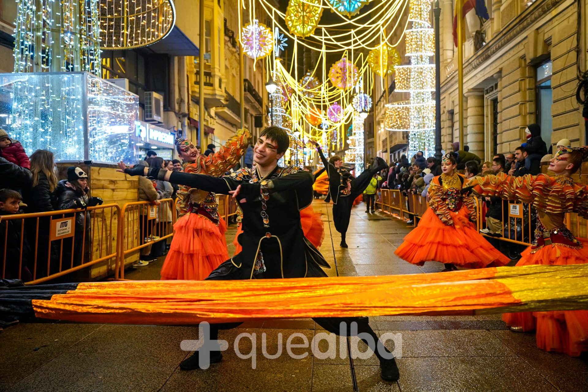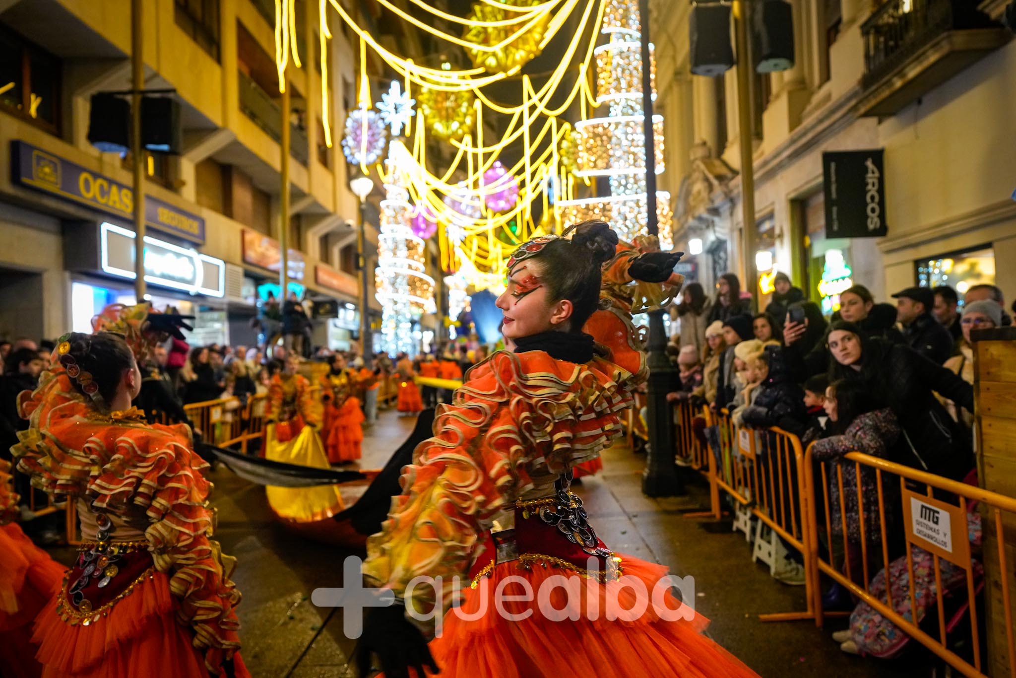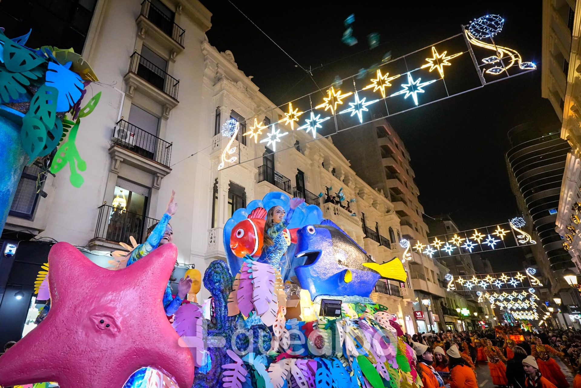 Un total de 29 carrozas y grupos de animación han recorrido unas calles abarrotadas pese al mal tiempo, “la cabalgata más larga y brillante de la historia, que todos recordaremos”, ha dicho el alcalde. Serrano ha agradecido la presencia de seis rondallas en varios puntos del recorrido, donde se han repartido más de 10.000 regalos y 1.200 kilos de caramelos contribuyendo a la animación y el ambiente, así como un camión de bomberos cerrando el desfile. Para garantizar la inclusión y mejorar la experiencia de todos, se han reservado dos zonas específicas para personas con movilidad reducida de modo que “todos han podido disfrutar de esta gran fiesta de esperanza e ilusión”.