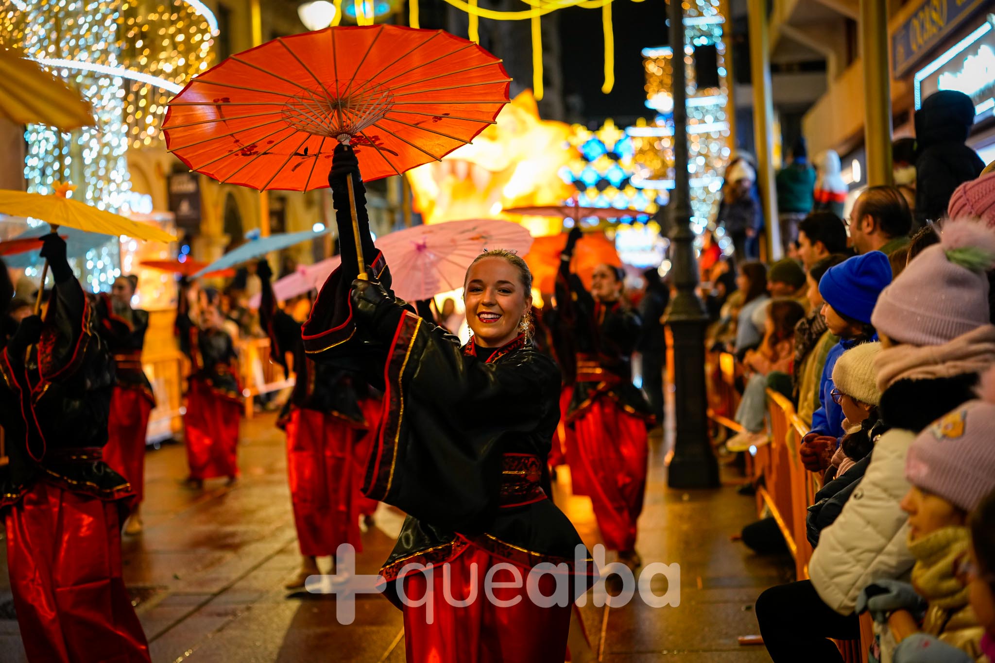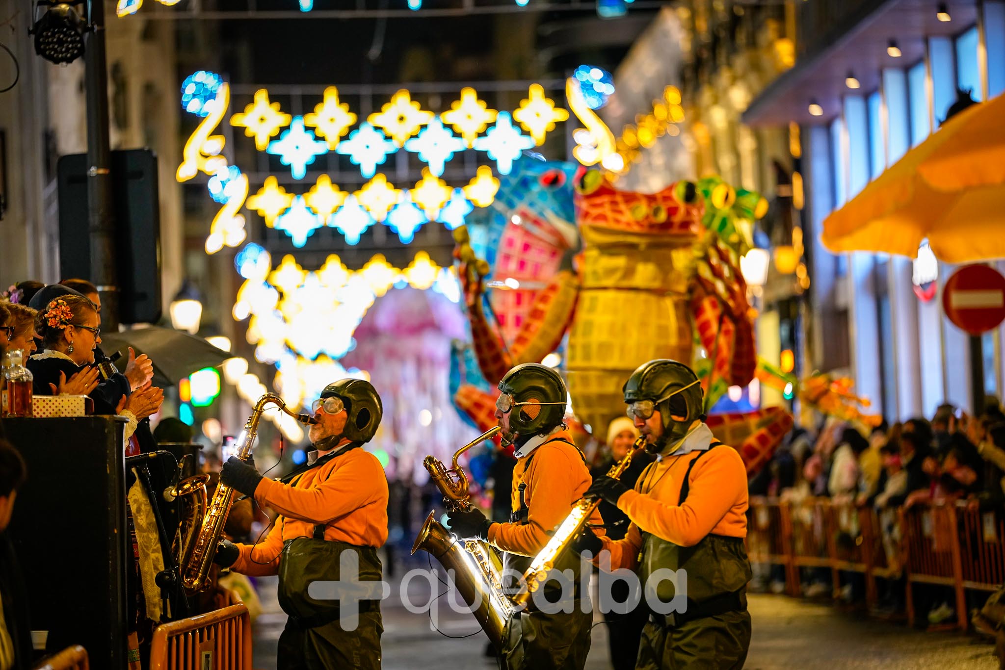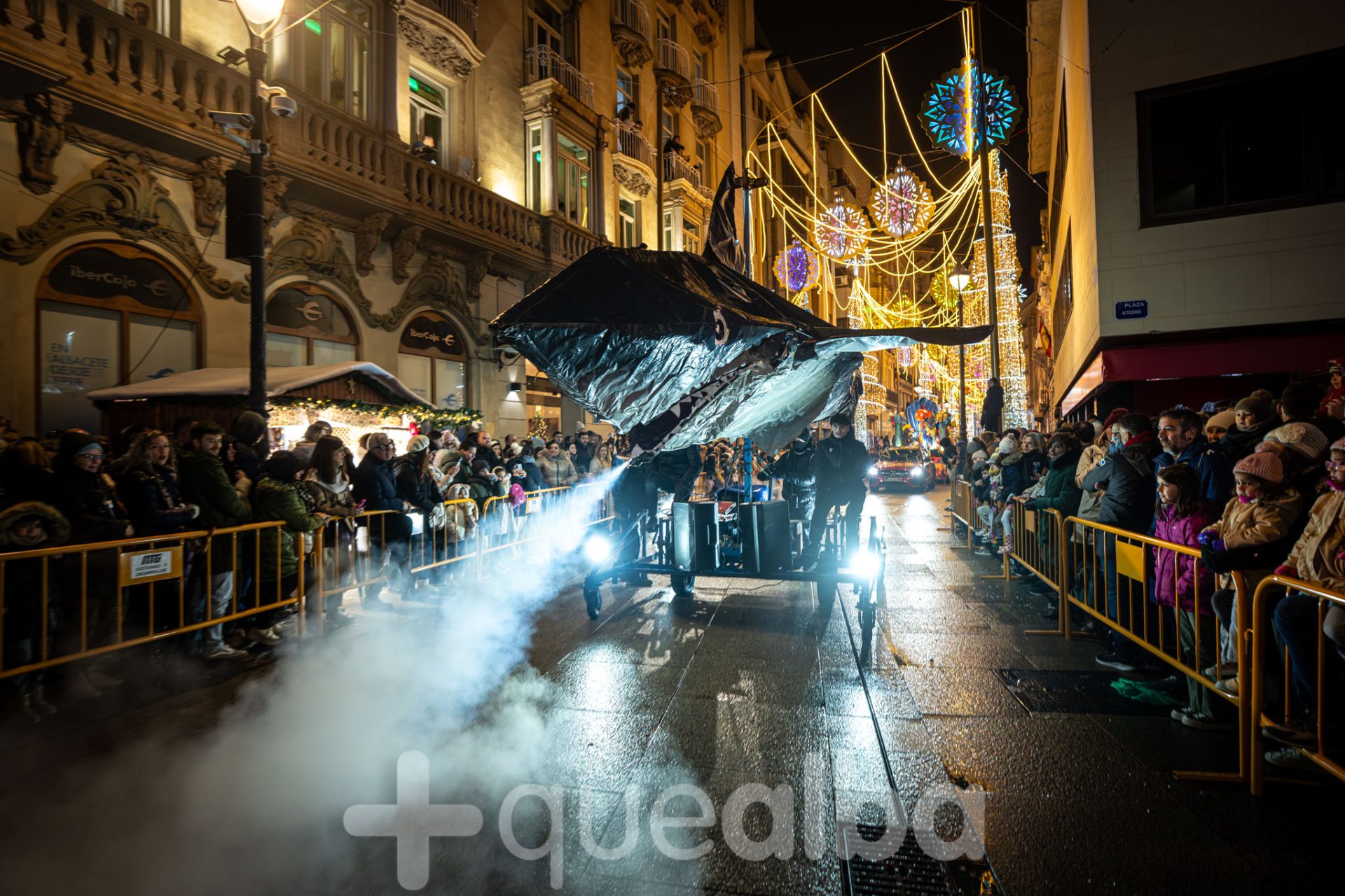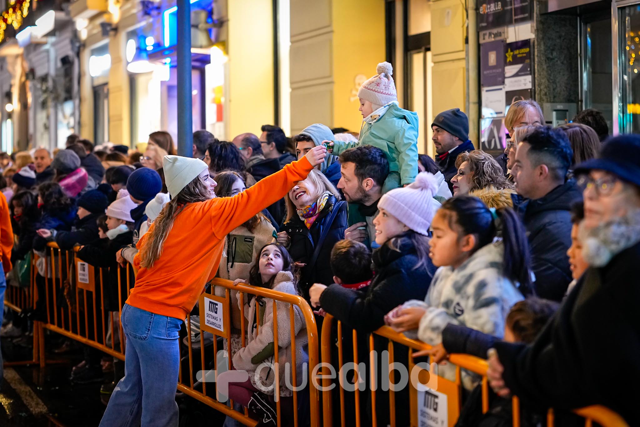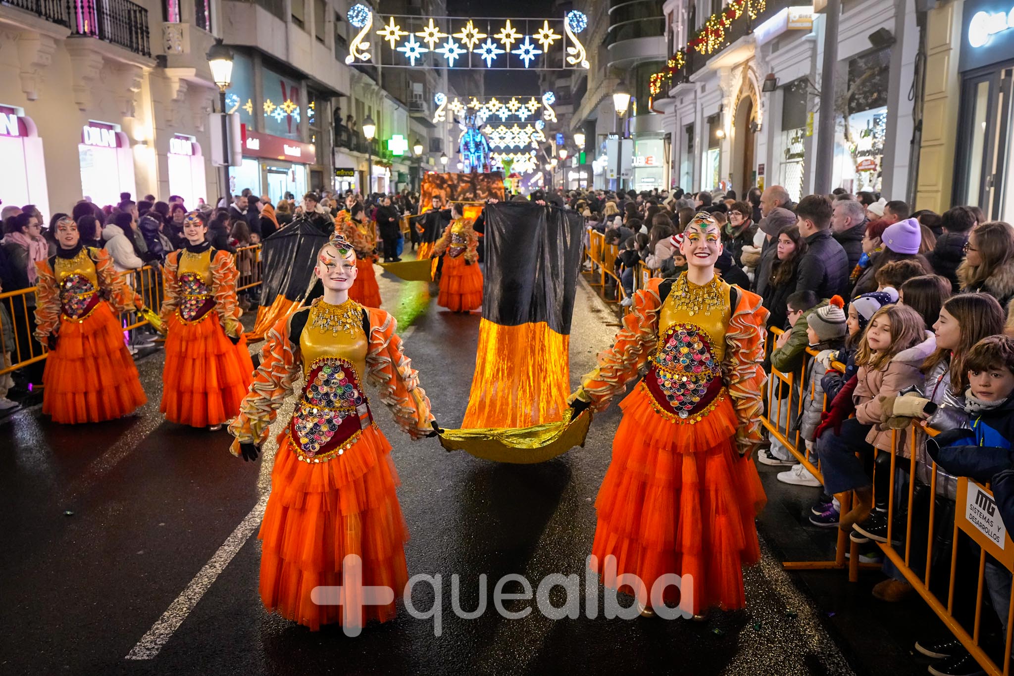 Un total de 29 carrozas y grupos de animación han recorrido unas calles abarrotadas pese al mal tiempo, “la cabalgata más larga y brillante de la historia, que todos recordaremos”, ha dicho el alcalde. Serrano ha agradecido la presencia de seis rondallas en varios puntos del recorrido, donde se han repartido más de 10.000 regalos y 1.200 kilos de caramelos contribuyendo a la animación y el ambiente, así como un camión de bomberos cerrando el desfile. Para garantizar la inclusión y mejorar la experiencia de todos, se han reservado dos zonas específicas para personas con movilidad reducida de modo que “todos han podido disfrutar de esta gran fiesta de esperanza e ilusión”.