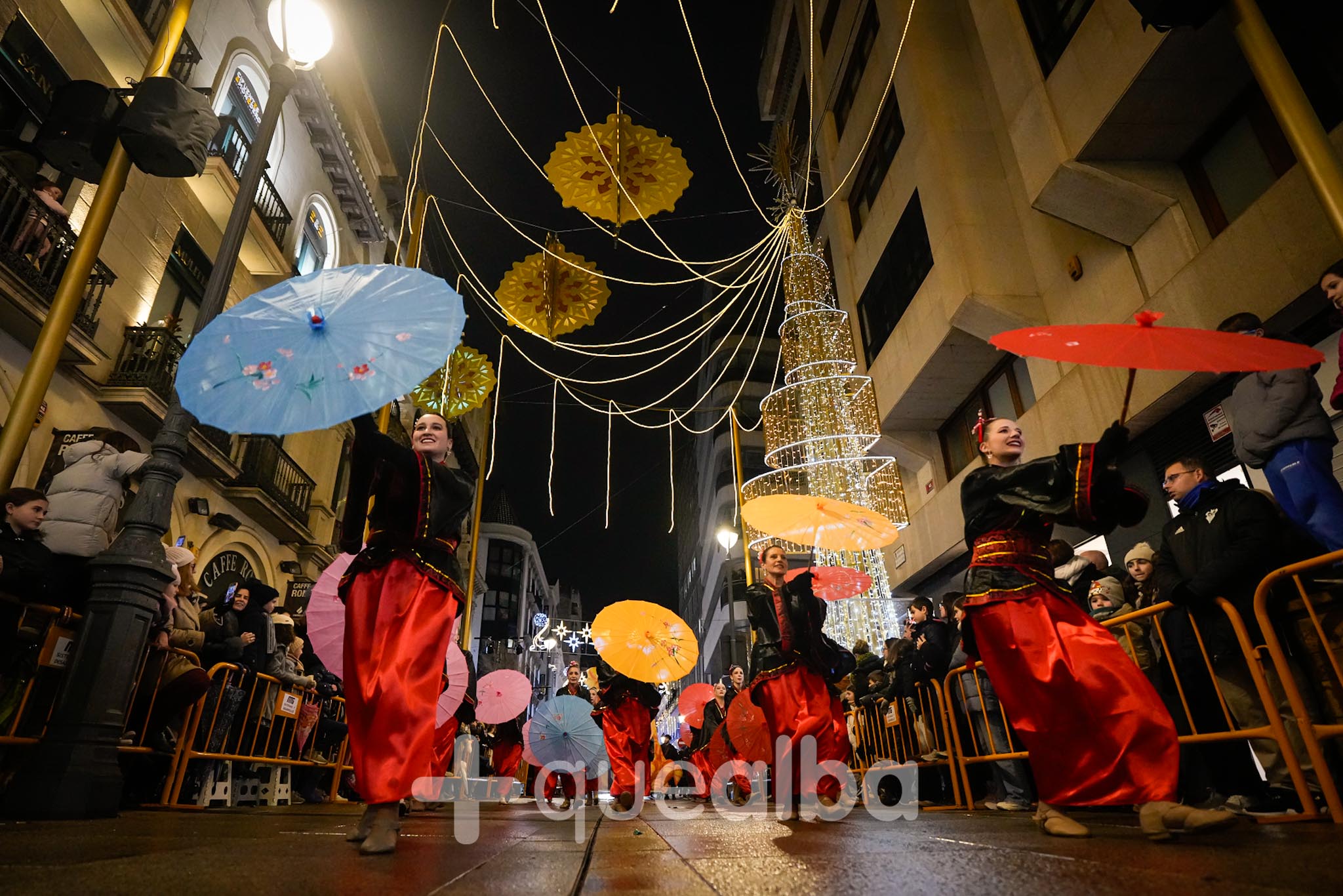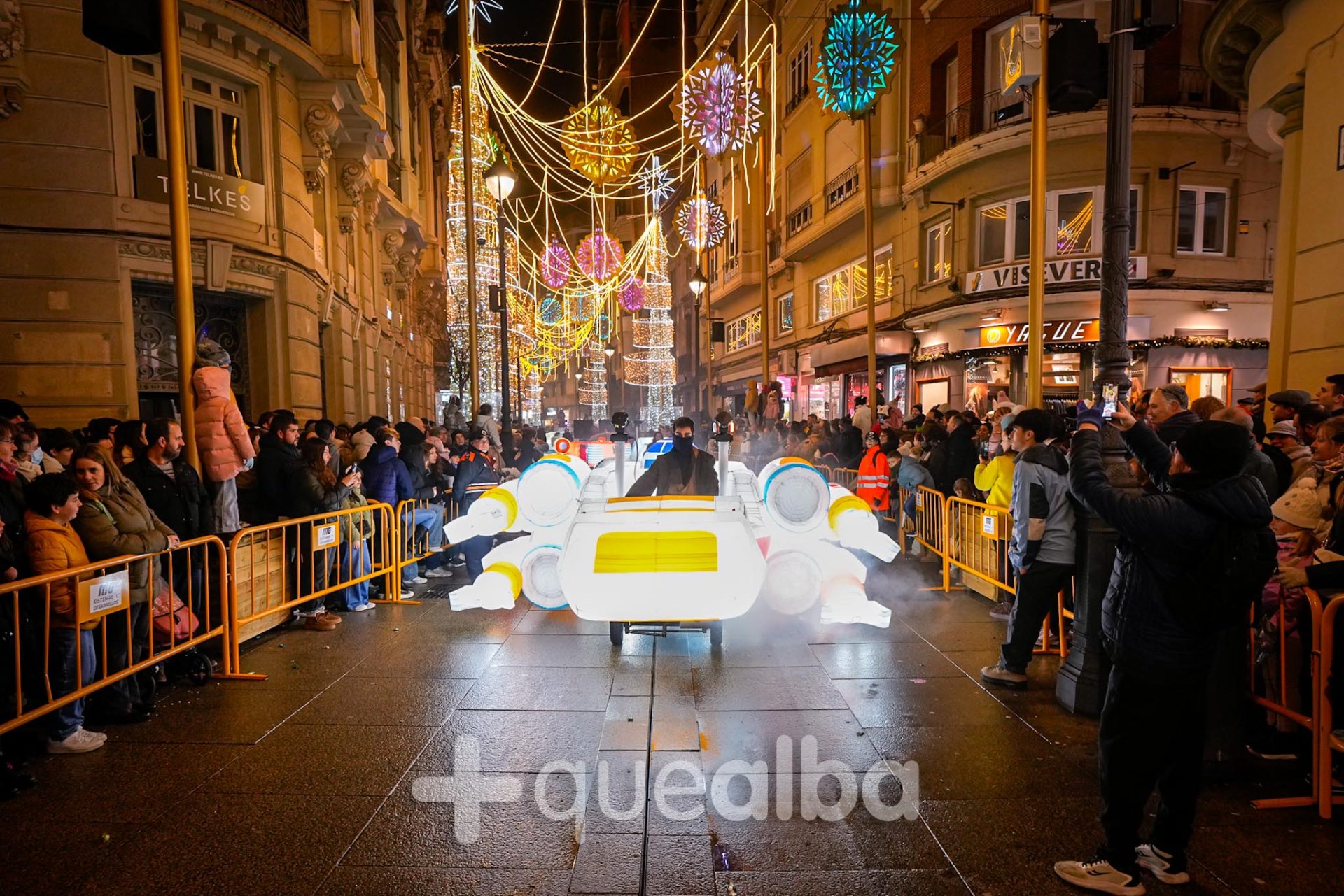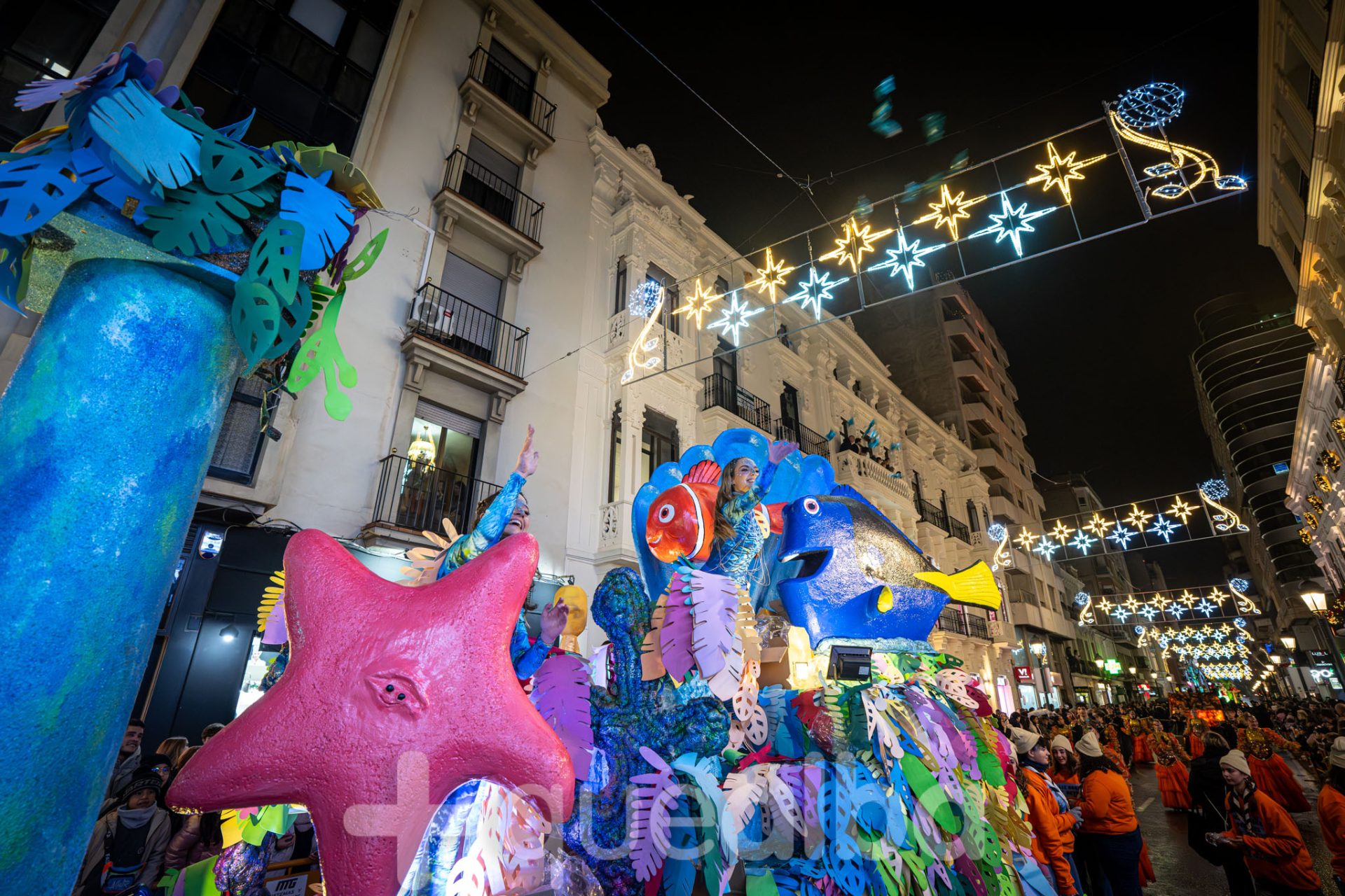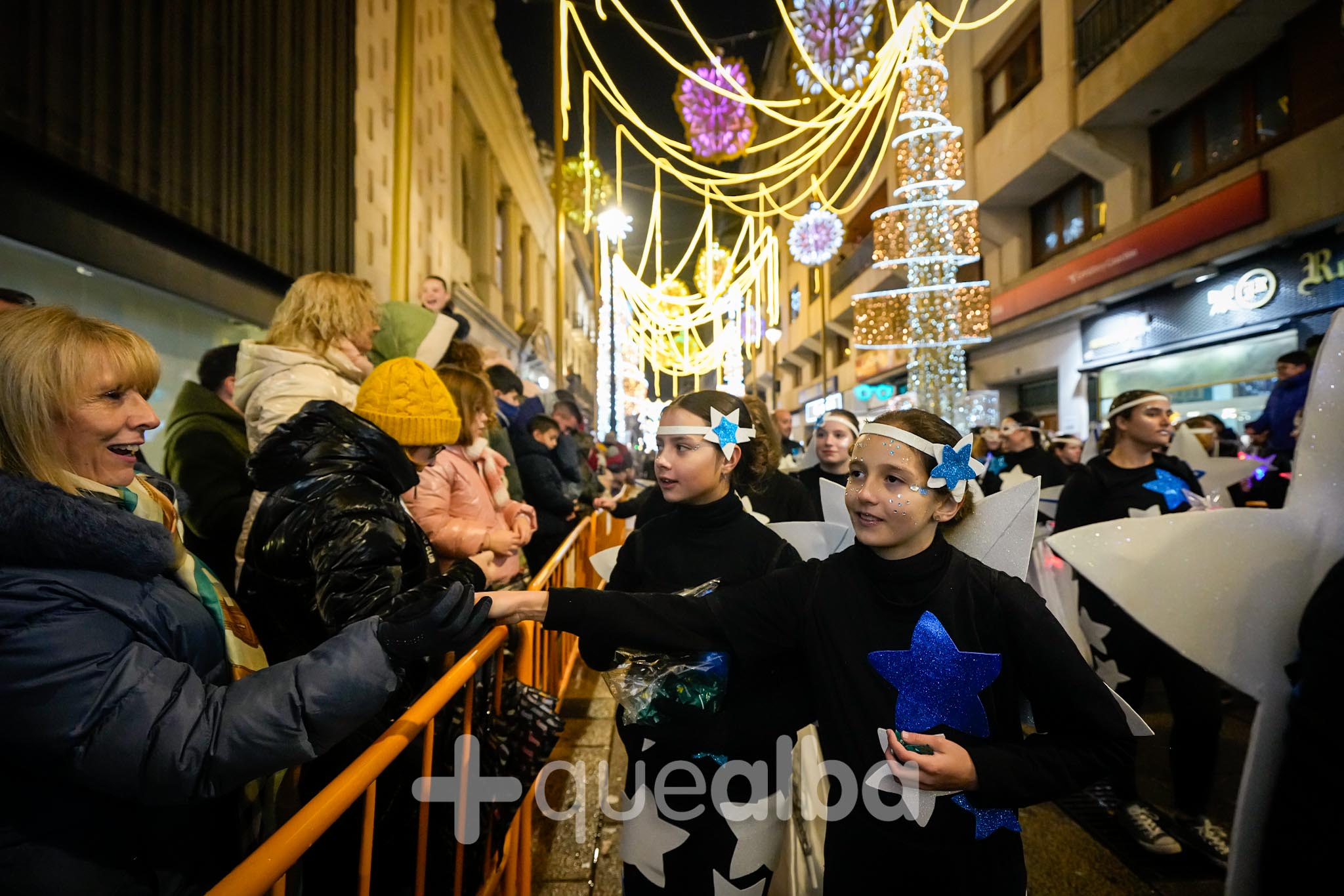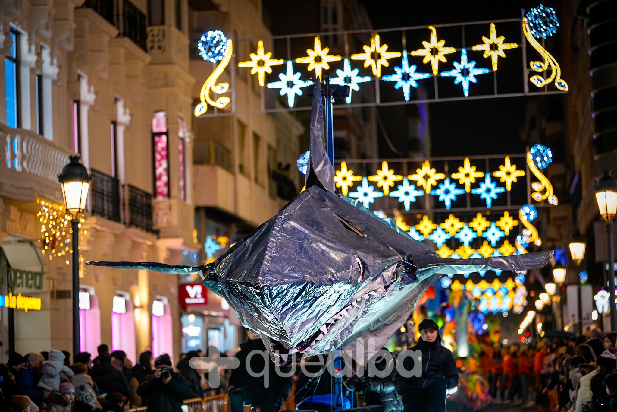 Un total de 29 carrozas y grupos de animación han recorrido unas calles abarrotadas pese al mal tiempo, “la cabalgata más larga y brillante de la historia, que todos recordaremos”, ha dicho el alcalde. Serrano ha agradecido la presencia de seis rondallas en varios puntos del recorrido, donde se han repartido más de 10.000 regalos y 1.200 kilos de caramelos contribuyendo a la animación y el ambiente, así como un camión de bomberos cerrando el desfile. Para garantizar la inclusión y mejorar la experiencia de todos, se han reservado dos zonas específicas para personas con movilidad reducida de modo que “todos han podido disfrutar de esta gran fiesta de esperanza e ilusión”.