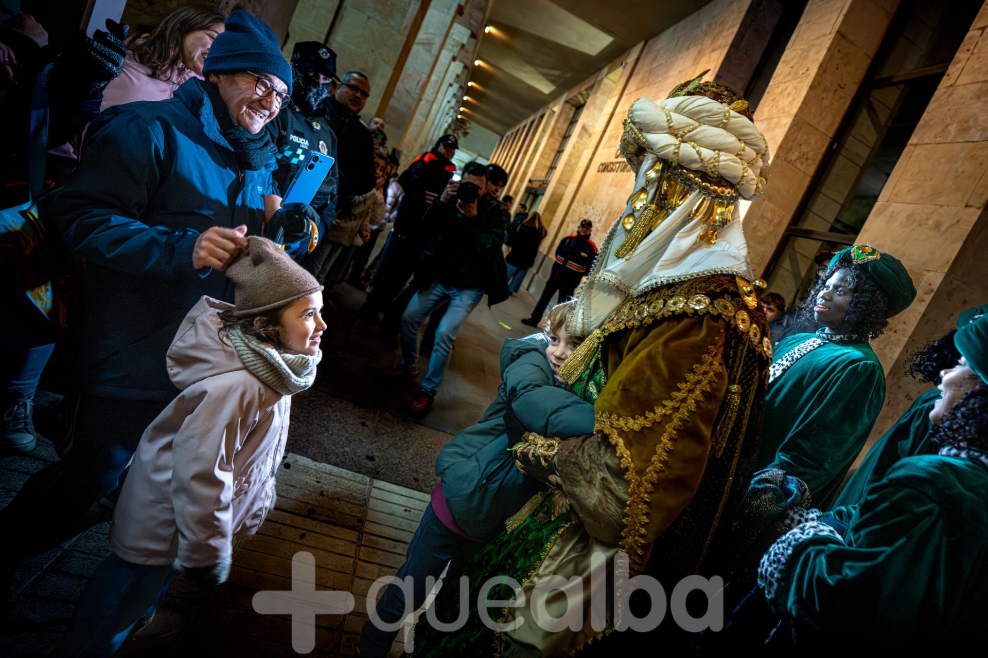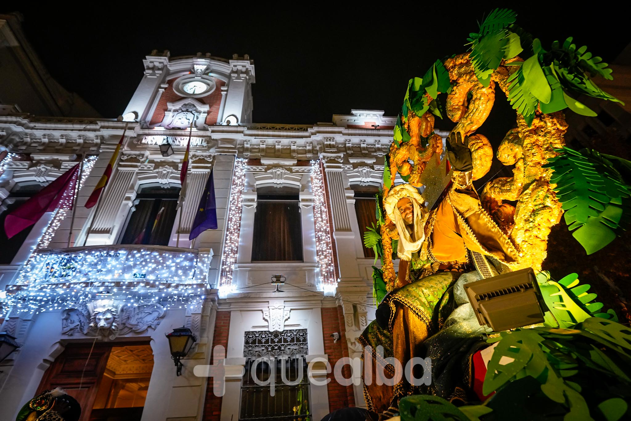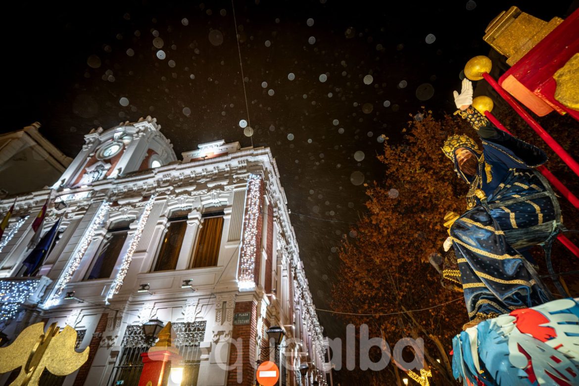 El alcalde de Albacete ha acompañado a Sus Majestades los Reyes de Oriente en su visita a Albacete, y junto a los visitantes reales ha saludado desde el balcón del Ayuntamiento, tras una cabalgata que finalmente ha podido desarrollarse pese a las inclemencias climatológicas, y que ha sido seguida, según cálculos de la Policía Local, por más de 50.000 personas, tanto niños y niñas como adultos.