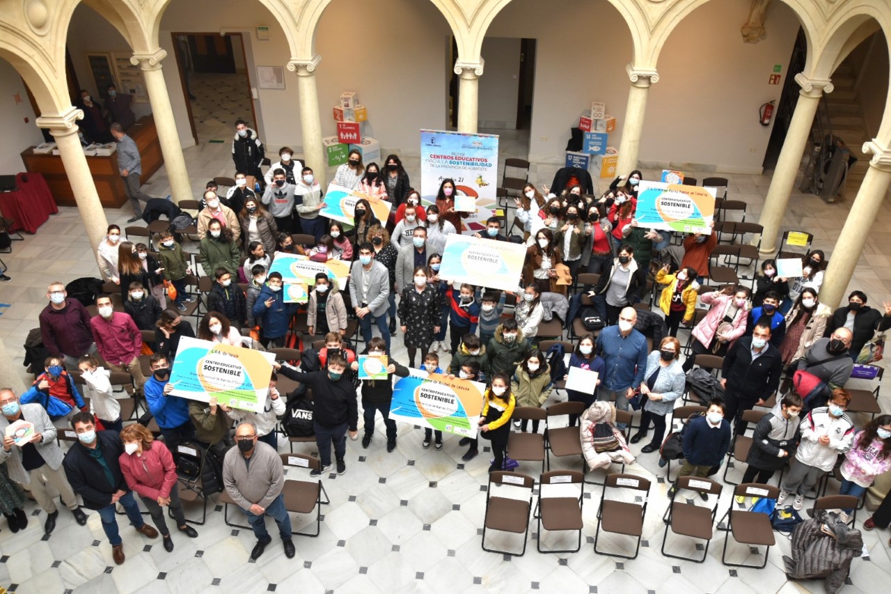 El Centro Cultural La Asunción ha albergado en la mañana de este viernes, 25 de febrero, la ‘gran fiesta’ del programa educativo Agenda 21 Escolar-Horizonte 2030 (A21E-H2030) reuniendo, en un solo día (y en este marco incomparable), a los y las protagonistas de los seis premios de Categoría concedidos en la edición del curso 20/21 dentro de esta iniciativa impulsada en 2008 por la Diputación de Albacete con la colaboración del Gobierno de C-LM (a través de las delegaciones provinciales de Educación y de Desarrollo Sostenible), de los Ayuntamientos, de la propia Comunidad Educativa y de la UCLM.