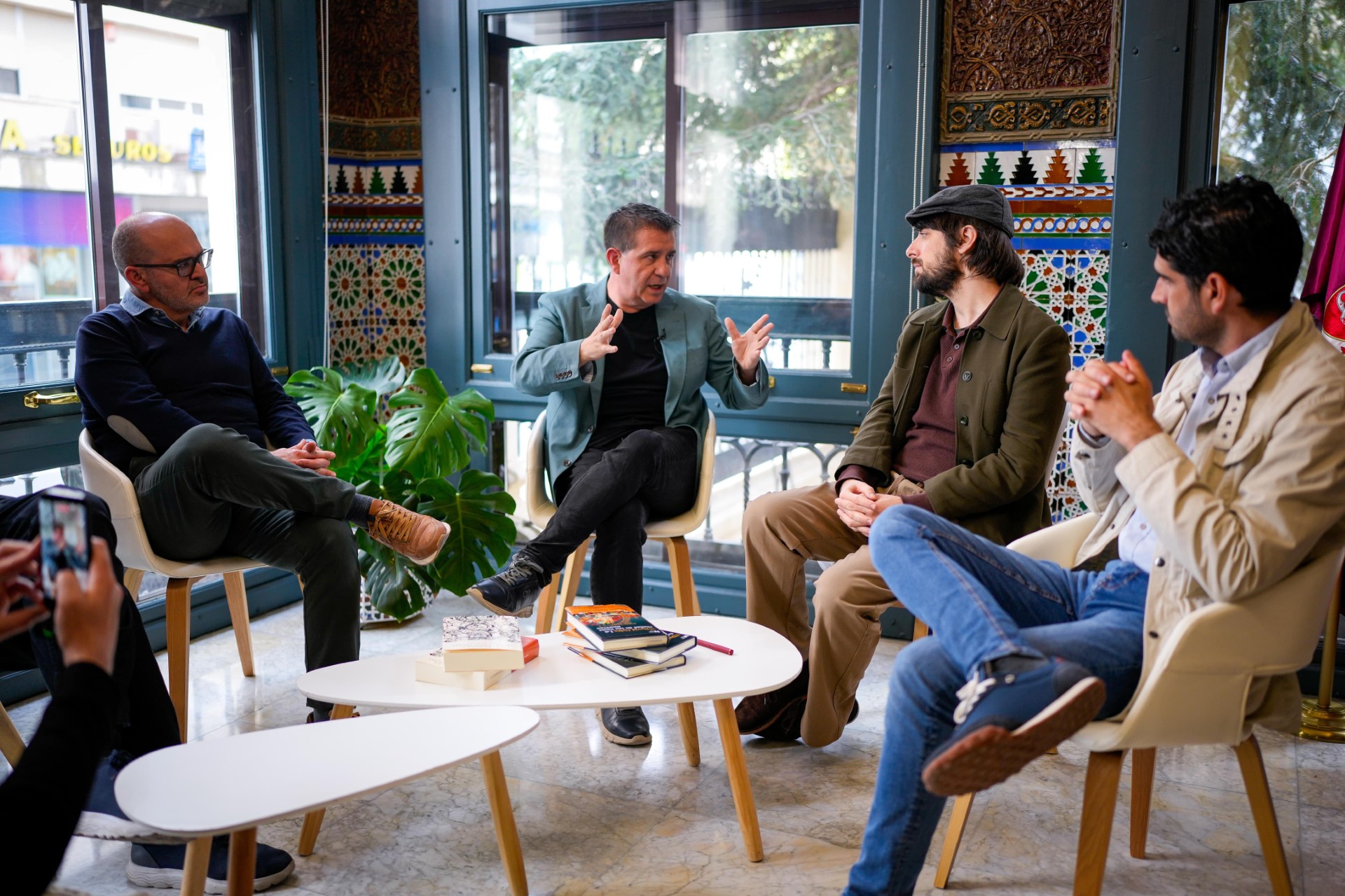 Acompañado de los diputados del Área Social, José González, y de Sanidad, Francisco García, y con la presencia de Ángel Collado, gerente de la Librería Popular, y Javier Pastor, representante de la editorial Destino, Cabañero ha dado la bienvenida al autor a la provincia y ha agradecido su presencia en “este espacio del conocimiento”, detallando que es la sede del Instituto de Estudios Albacetenses ‘Don Juan Manuel’ y del Centro de Estudios y Documentación de las Brigadas Internacionales (CEDOBI).