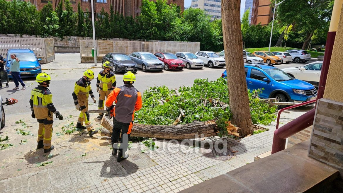 Los Bomberos han tenido que actuar este domingo al mediodía en el barrio de la Estación para retirar la rama de un árbol, de grandes dimensiones, que había caído, en la calle Azorín, junto al Centro de Salud zona 6.