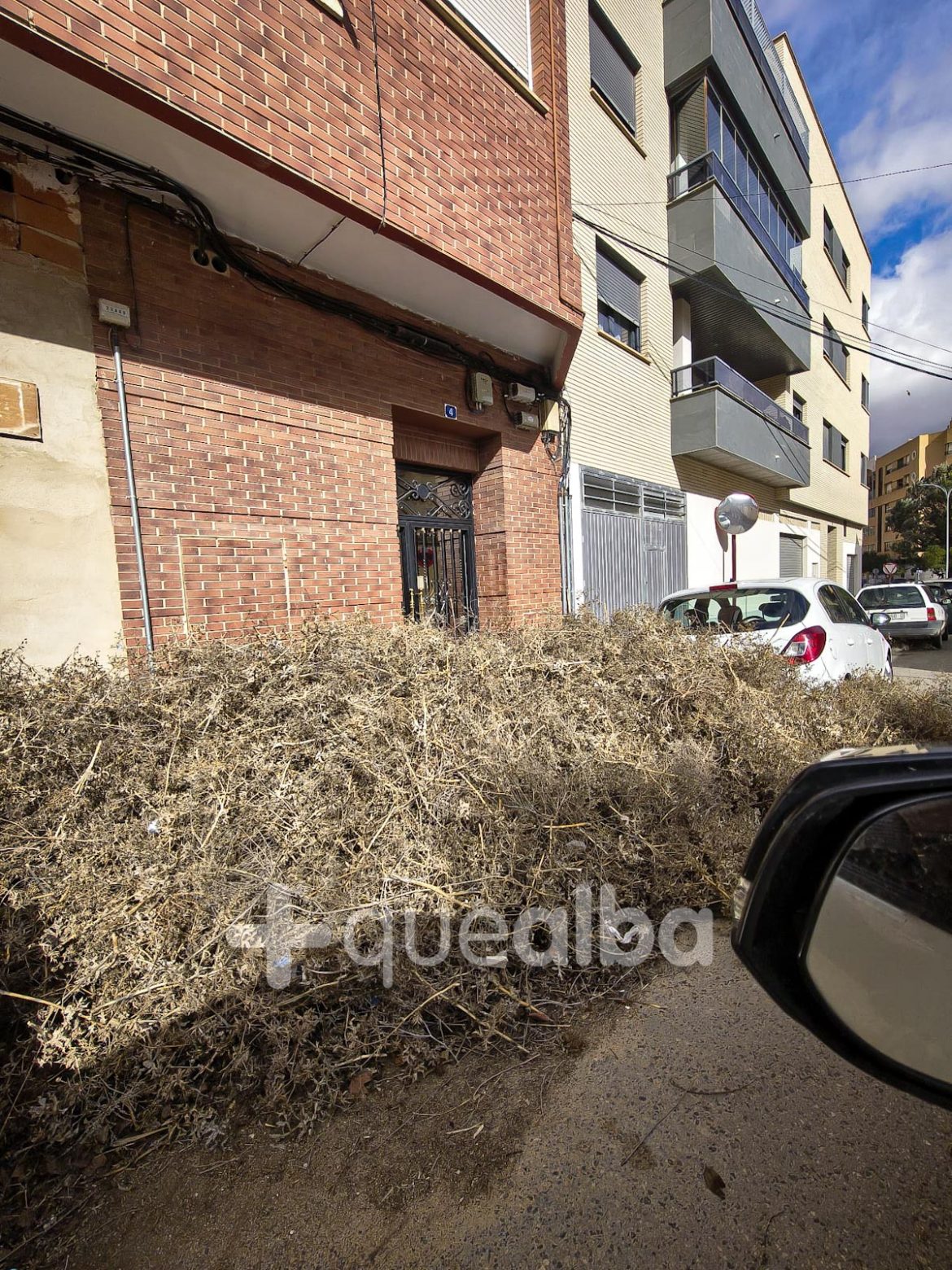 La borrasca Kristin, que este 28 de enero afecta a toda la provincia, ha vuelto a transformar en el lejano oeste la calle Cuba de Albacete, en el barrio San Pedro Mortero.
