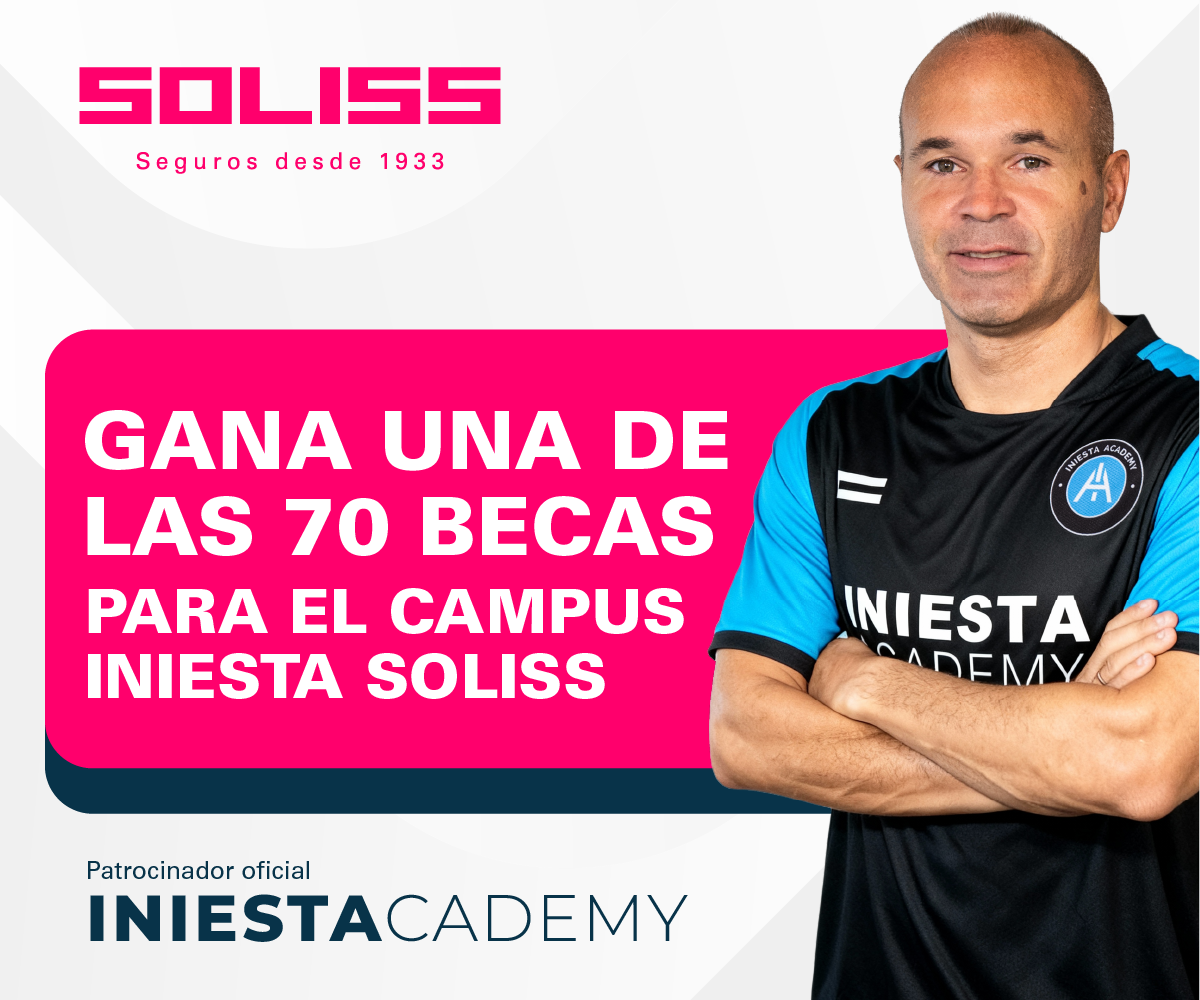 En Soliss Seguros vuelven a regalar 70 becas para participar en el Clinic Campus Iniesta Soliss 2026, que se celebrará en la localidad natal de Andrés Iniesta: Fuentealbilla, en julio de 2026.