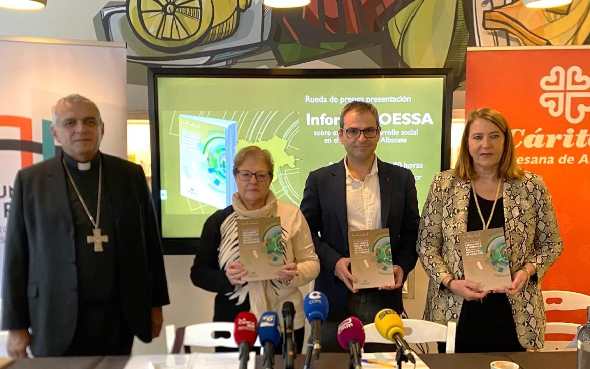 La investigación ha sido presentada este martes por Rosa García, directora de Cáritas Diocesana de Albacete y Raúl Flores, secretario técnico de la Fundación FOESSA y coordinador del estudio. Ha contado también con la presencia de D. Ángel Román, obispo de Albacete, y Llanos Navarro, concejala de Acción Social del Ayuntamiento de Albacete, entidad que ha cofinanciado la realización de este informe.