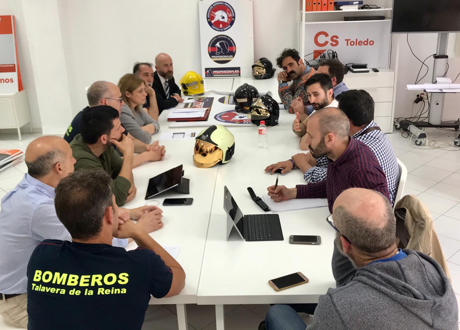 La candidata de Cs a la presidencia de C-LM, Carmen Picazo, junto al número uno a las Cortes regionales por la provincia de Toledo, David Muñoz han mantenido una reunión con la Asociación de Bomberos Profesionales de Castilla- La Mancha.