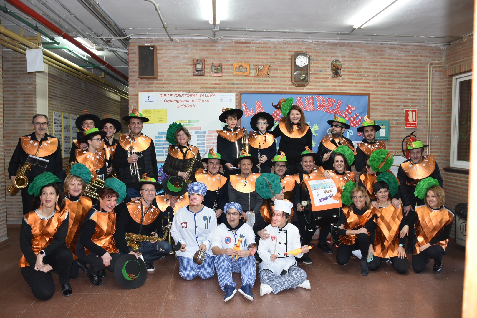 Un nutrido grupo de padres, maestros y ex alumnos del colegio Cristóbal Valera han creado toda una charanga que acompañó al desfile de carnaval que celebró el colegio la víspera de Jueves Lardero. Un desfile que contó con una gran participación y que este año ha girado en torno a los hábitos y la alimentación saludable, motivo que se está trabajando todo el curso siguiendo el grupo de coordinación de bibliotecas escolares.