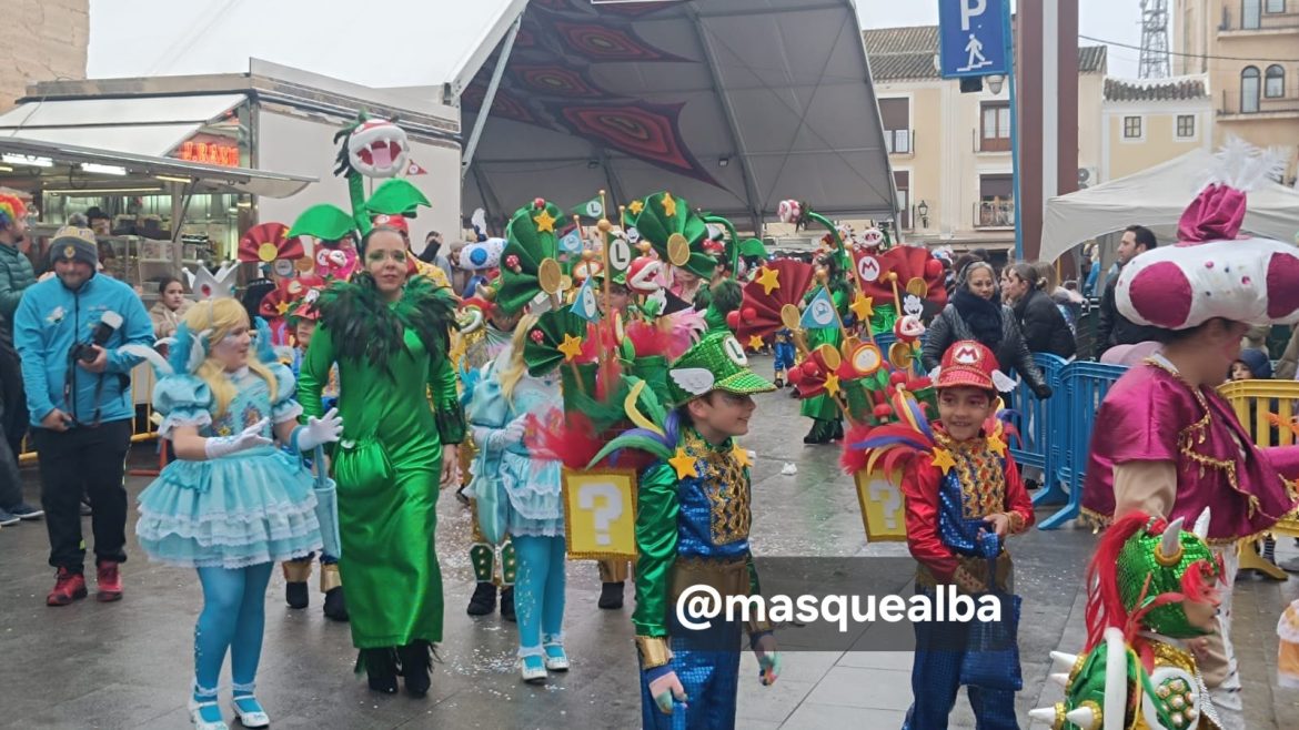 Finalmente, con una desapacible tarde, los más pequeños salían a las calles, abriendo desfile el Colegio Virgen de la Caridad que nos nos teletransportaban al mundo de los videojuegos con super Mario Bros.