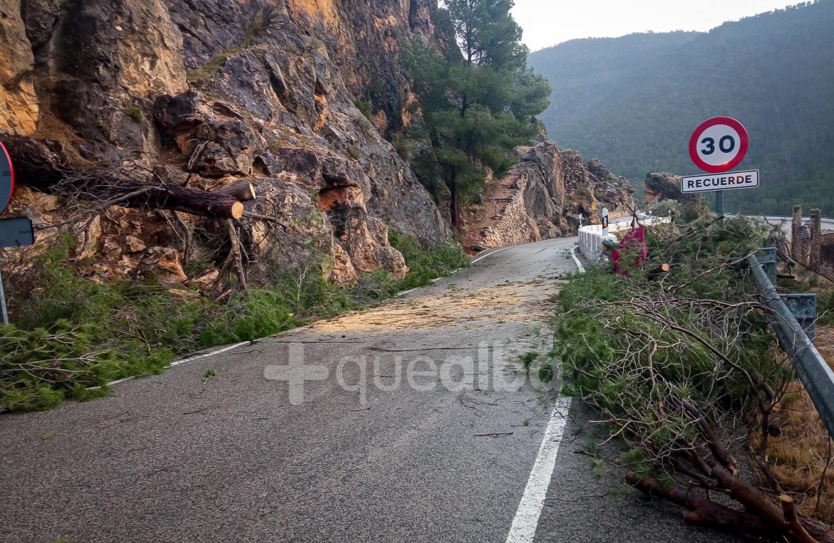 La caída de un árbol en la carretera de acceso a la localidad de Aýna, justo antes de llegar al emblemático sidecar, provoca problemas en el acceso a la localidad. Desde la Delegación de Fomento en Albacete una patrulla se está desplazando en estos momentos a la zona para retirar el árbol. Poco antes de las seis de la tarde, la vía quedaba despejada.