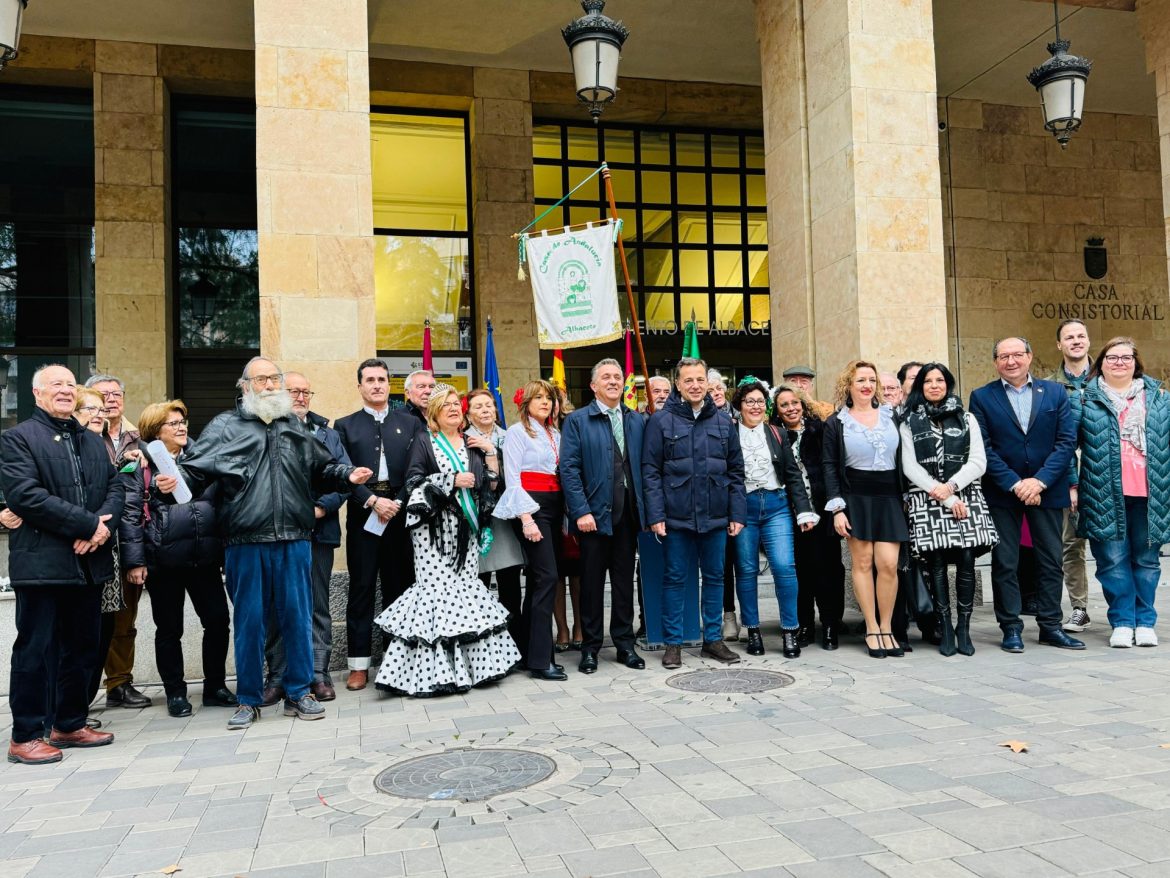 El alcalde de la ciudad, Manuel Serrano, acompañado por la concejala de las Personas, Gala de la Calzada, ha asistido un año más al acto de exaltación de la bandera andaluza que la Casa de Andalucía en Albacete ha organizado a la puerta del Ayuntamiento con motivo del Día de Andalucía.