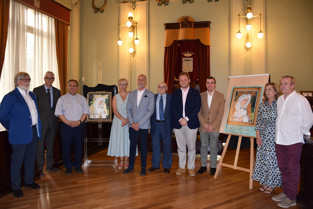 Este cartel está ilustrado por una creación de Francisco Ayuso Raya, que en 2020, cuando este IV Encuentro Internacional tuvo que ser suspendido a consecuencia del Covid, no pudo cumplir su cometido anunciador y que ahora se recupera para divulgar esta importante cita, que fue presentada por José Lozano, presidente de la Cofradía de Nuestra Señora de la Esperanza Macarena de Albacete.
