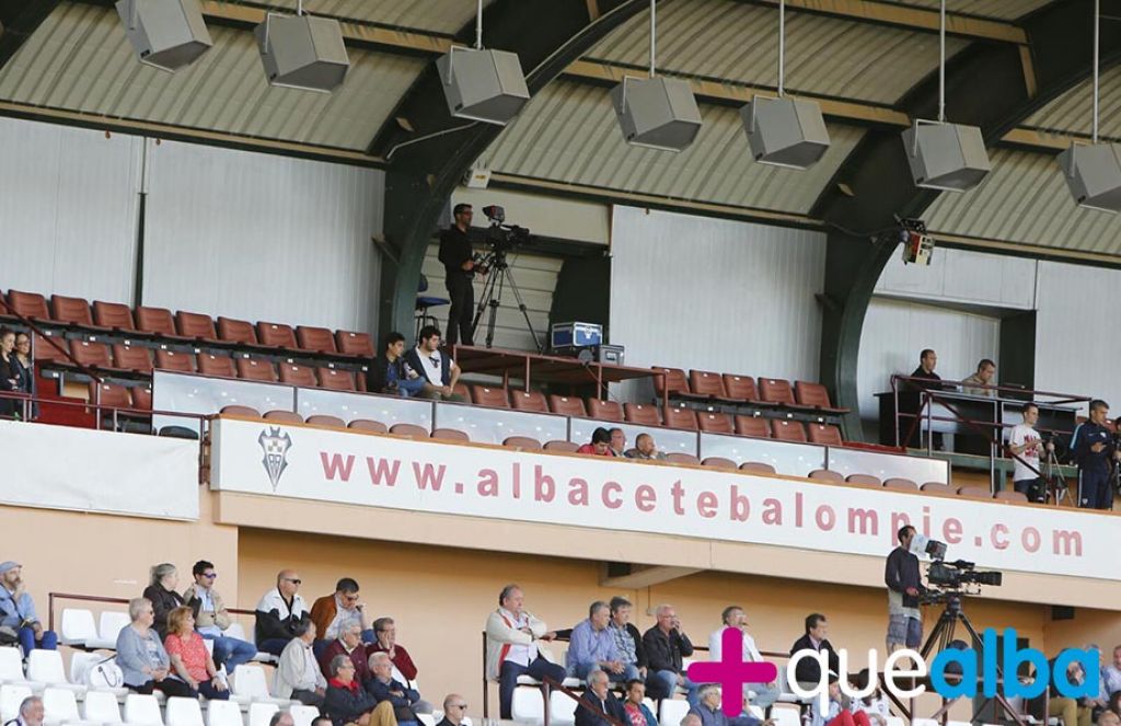 El portavoz del Consejo de Administración del Alba, Luis Castelo, es el único representante de la directiva del club en el palco del Carlos Belmonte. Está junto a un representante del equipo visitante.