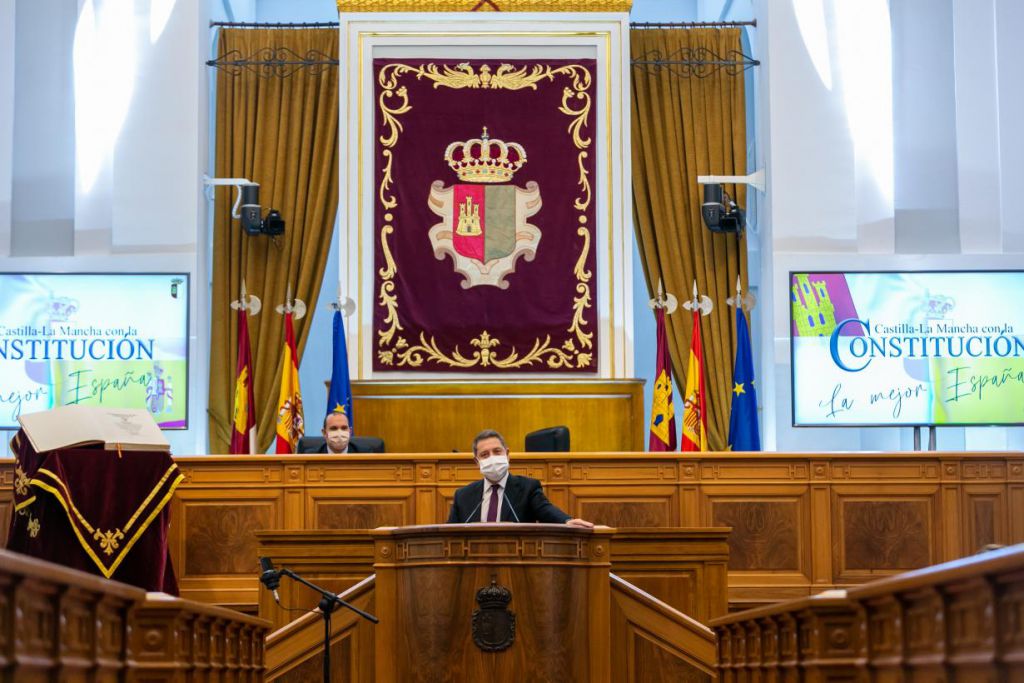 El presidente de Castilla-La Mancha, Emiliano García-Page, ha reconocido en el texto de la Constitución española una invitación a seguir acordando y a huir de los extremismos y los frentismos. Así lo ha puesto de manifiesto hoy en el Salón de Plenos de las Cortes regionales, en Toledo, donde ha tenido lugar la conmemoración del 42 aniversario de la Carta Magna.
