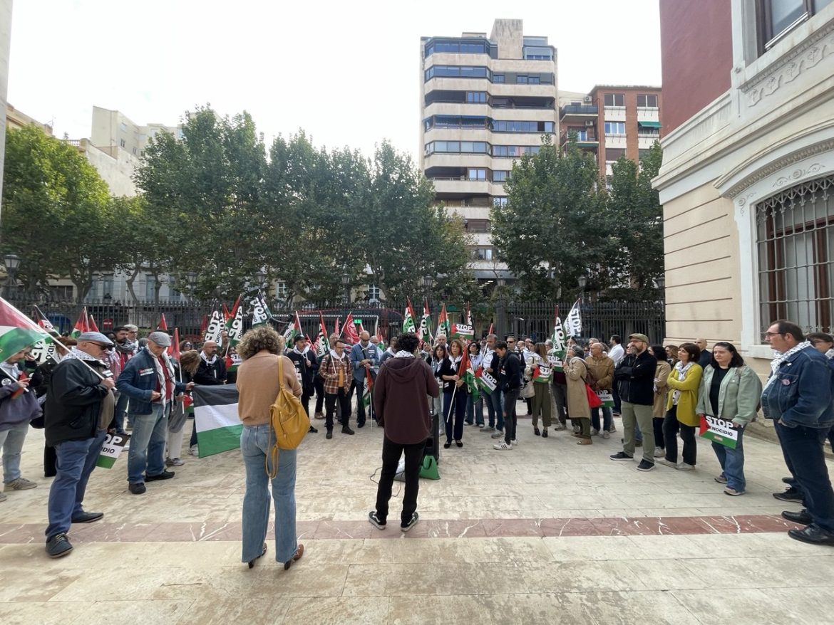 Coincidiendo con el paro de dos horas en los centros de trabajo convocados por CCOO y UGT, cientos de personas han participado esta mañana en las concentraciones que han tenido lugar en la Diputación Provincial y en el Ayuntamiento de Albacete. El mensaje ha sido claro: De no haber sido por la movilización y la presión social a nivel mundial ni el alto el fuego ni el el Plan de Paz se hubieran producido. De ahí la importancia de mantener viva la lucha para reivindicar una paz real y duradera en un Estado Palestino viable y reconocido a nivel internacional.