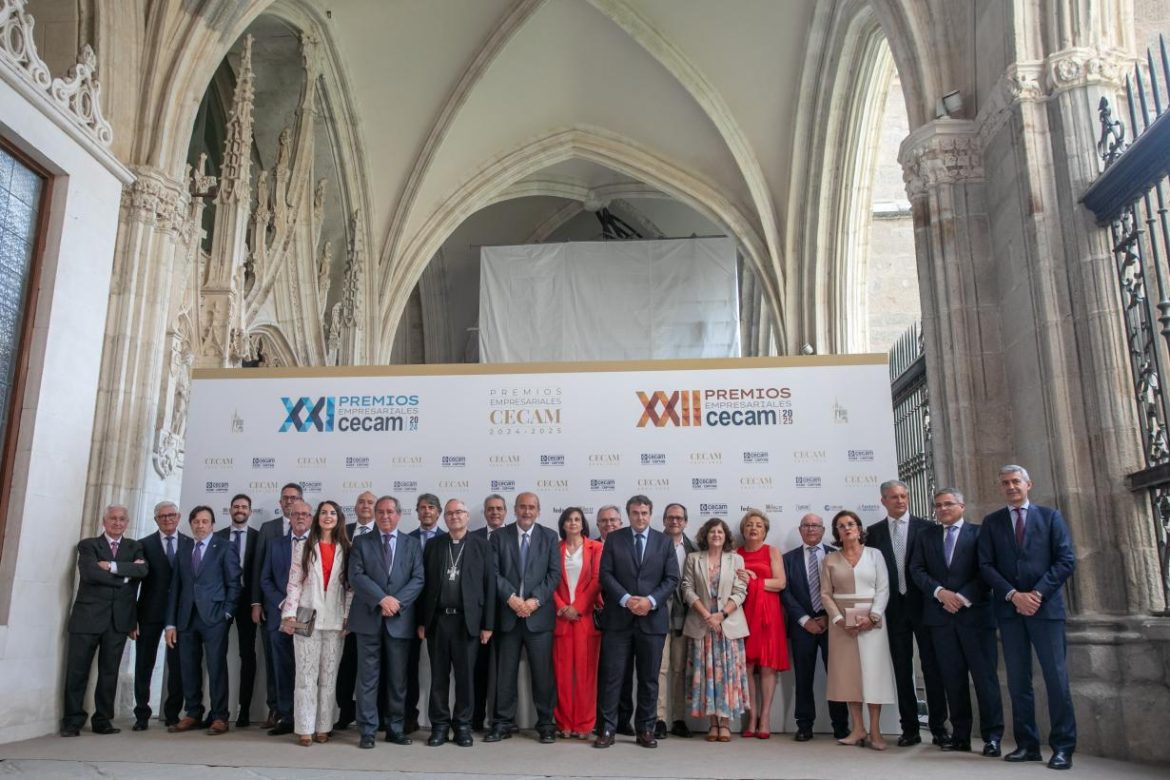 Martínez Guijarro ha clausurado la XXII edición de los Premios Empresariales CECAM que ha albergado el claustro de la Catedral Primada de Toledo, y que ha aunado a los premiados del año 2024 y del 2025 ya que la pasada edición de los Premios Empresariales, prevista el pasado 30 de octubre, tuvo que ser cancelada debido al impacto de la DANA que afectó gravemente a nuestra región.