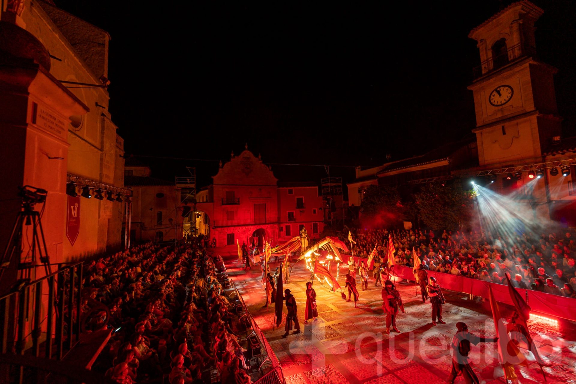 La localidad de Chinchilla de Montearagón brillaba este sábado, 18 de junio, con el espectáculo “Ciudad Forjada”, en la Plaza Monumental de La Mancha, con una recreación histórica dirigida por José Tomás Cháfer. “Ciudad Forjada” ha hecho brillar, más si cabe, la espectacular Plaza de La Mancha de Chinchilla de Montearagón y ha supuesto un momento especial en la celebración de los tres Centenarios que este año conmemora la localidad. Muy especialmente, en esta ocasión, el VI Centenario de Título de Ciudad, para hacer viajar al espectador y visitante a inicios del siglo XV.