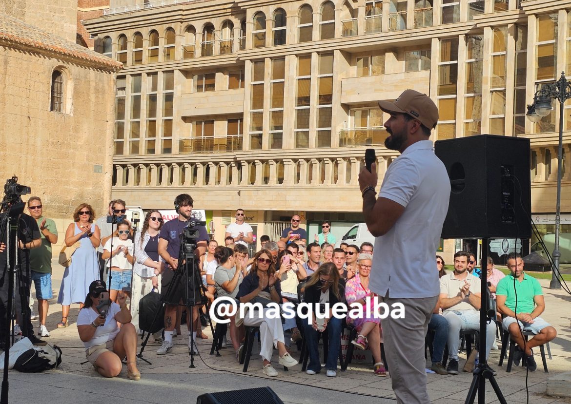 Cientos de albaceteños se daban cita esta tarde para recibir al líder de Se Acabó la Fiesta, Alvise Pérez, que llegaba a la ciudad entre aplausos y gritos de «Alvise presidente».