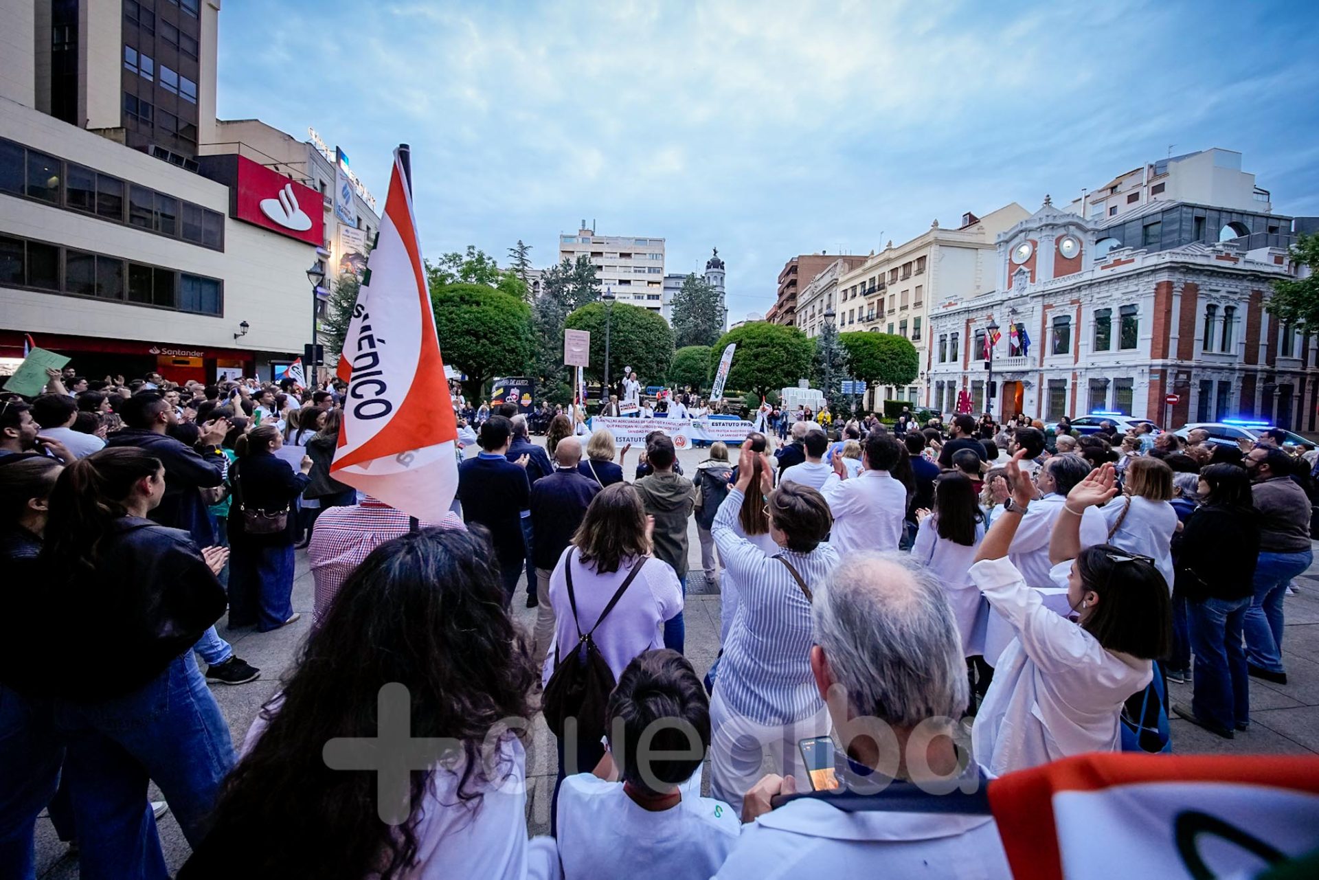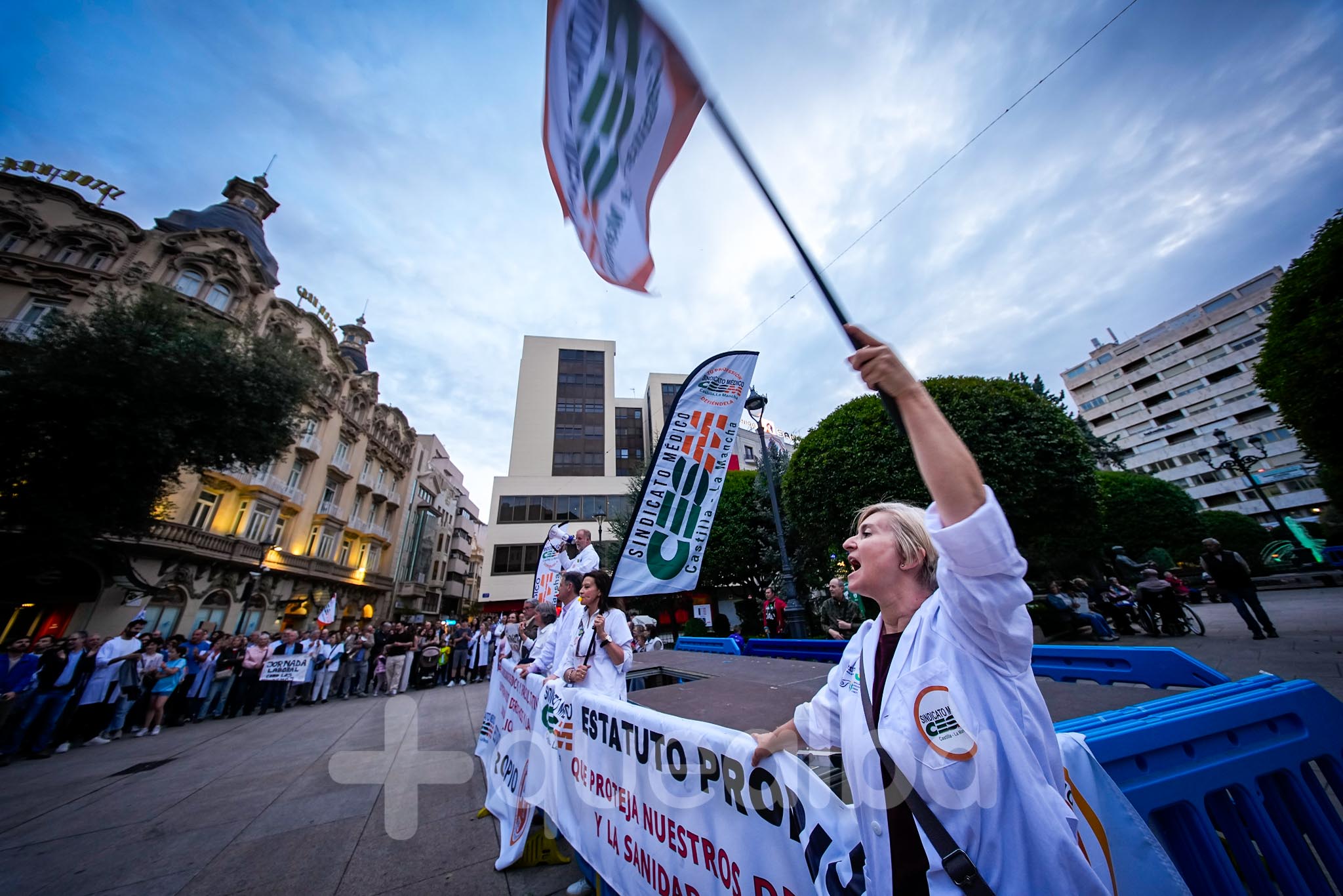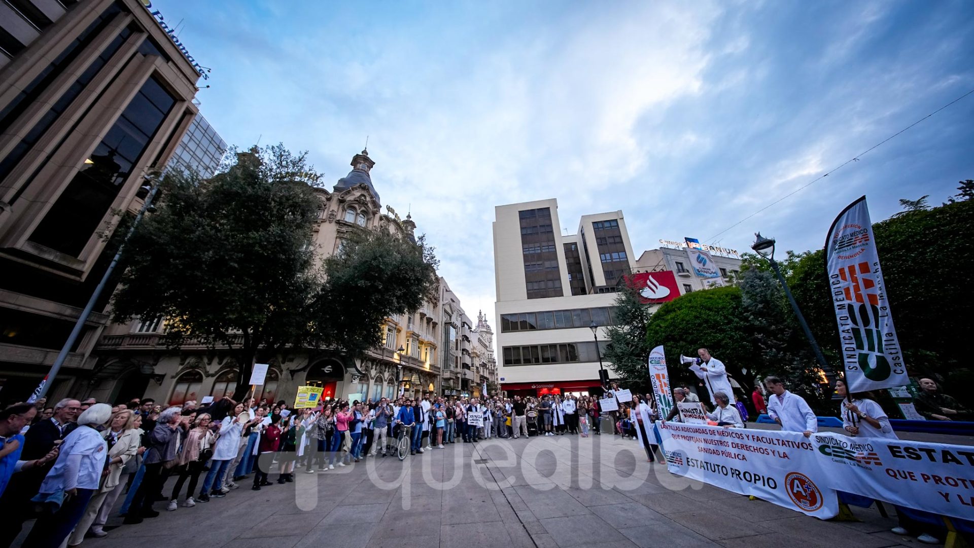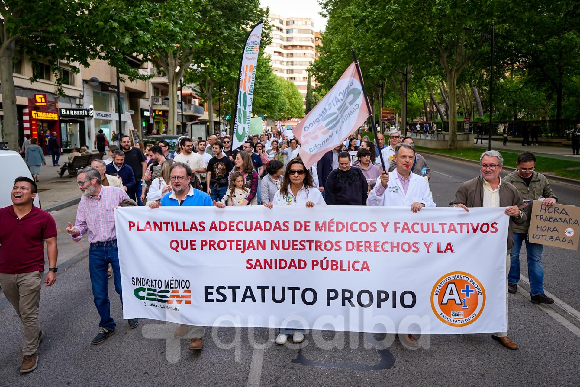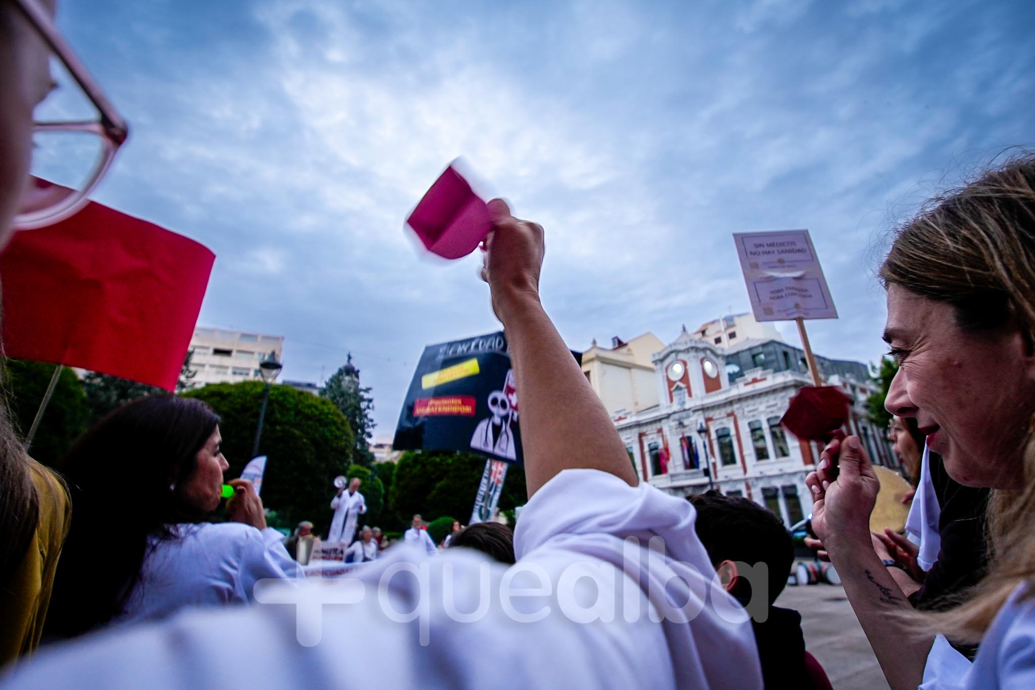 Alrededor de medio millar de médicos han participado, esta tarde-noche, en la manifestación que ha partido del Hospital, para bajar por la Avenida de España y la calle Ancha, hasta la Plaza del Altozano, para reivindicar un Estatuto Marco propio. La protesta se enmarca en la nueva semana de huelga médica y ha sido convocada por el Sindicato de Médicos CESM.