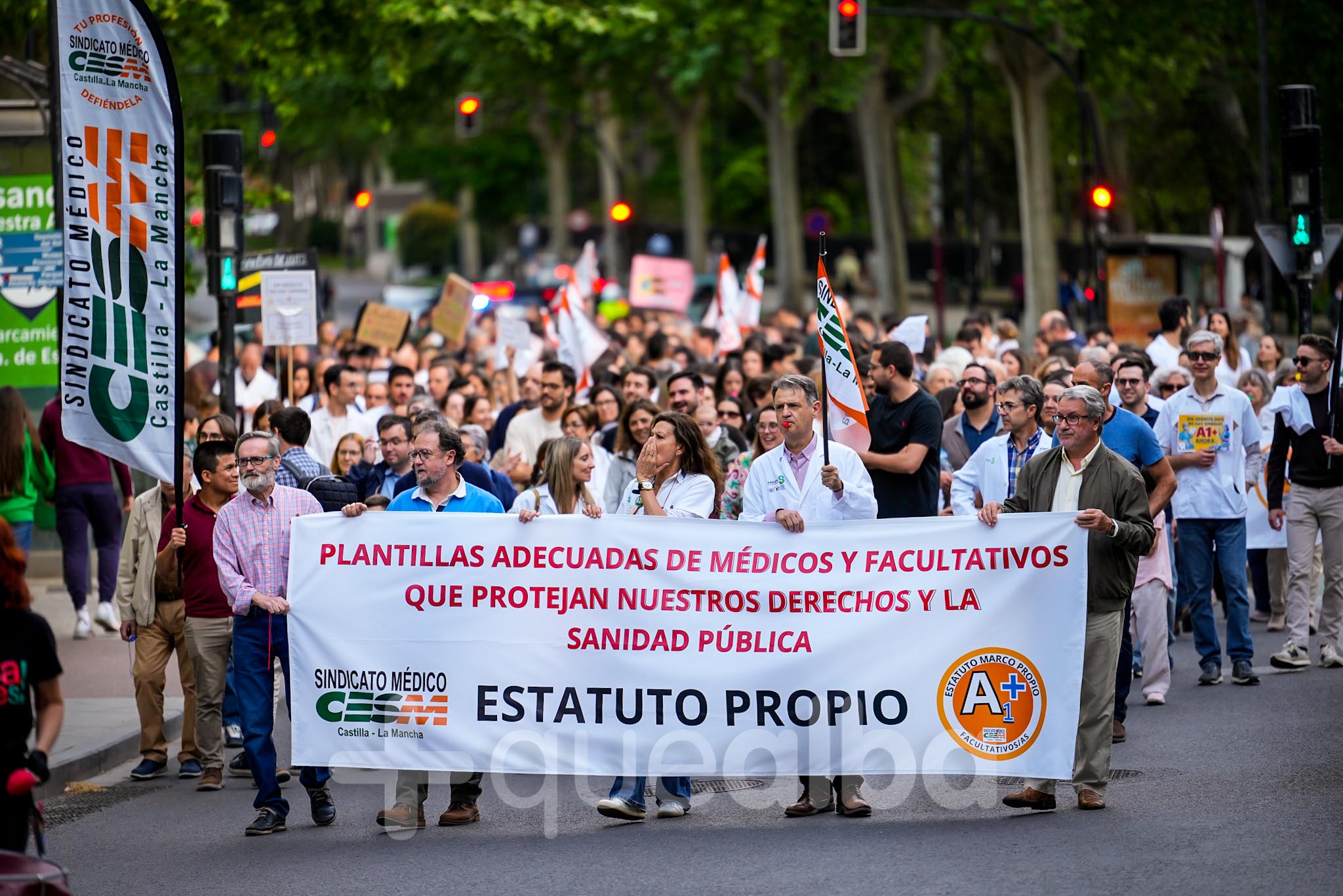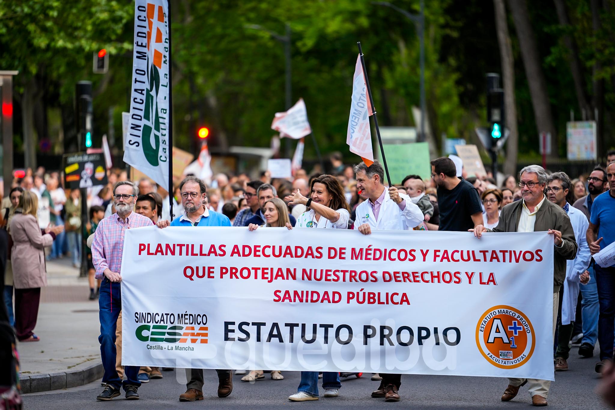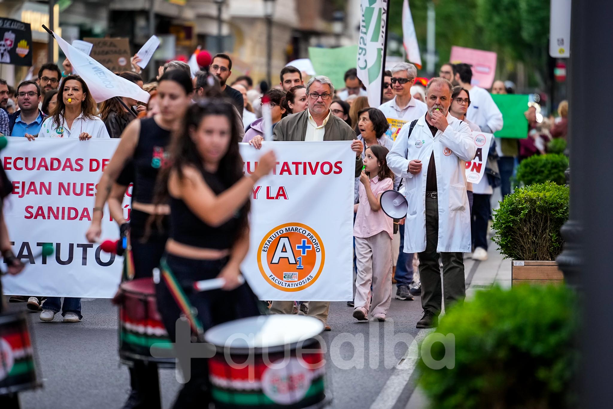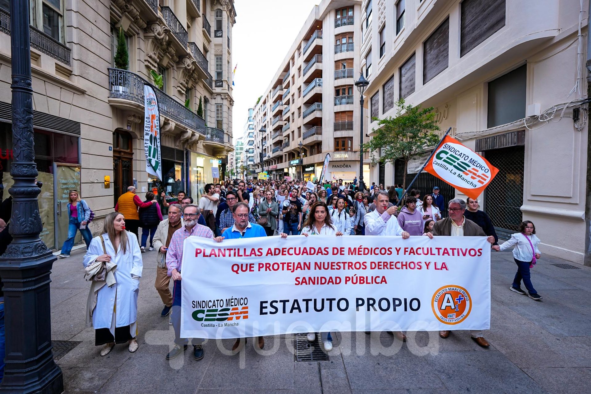 Alrededor de medio millar de médicos han participado, esta tarde-noche, en la manifestación que ha partido del Hospital, para bajar por la Avenida de España y la calle Ancha, hasta la Plaza del Altozano, para reivindicar un Estatuto Marco propio. La protesta se enmarca en la nueva semana de huelga médica y ha sido convocada por el Sindicato de Médicos CESM.