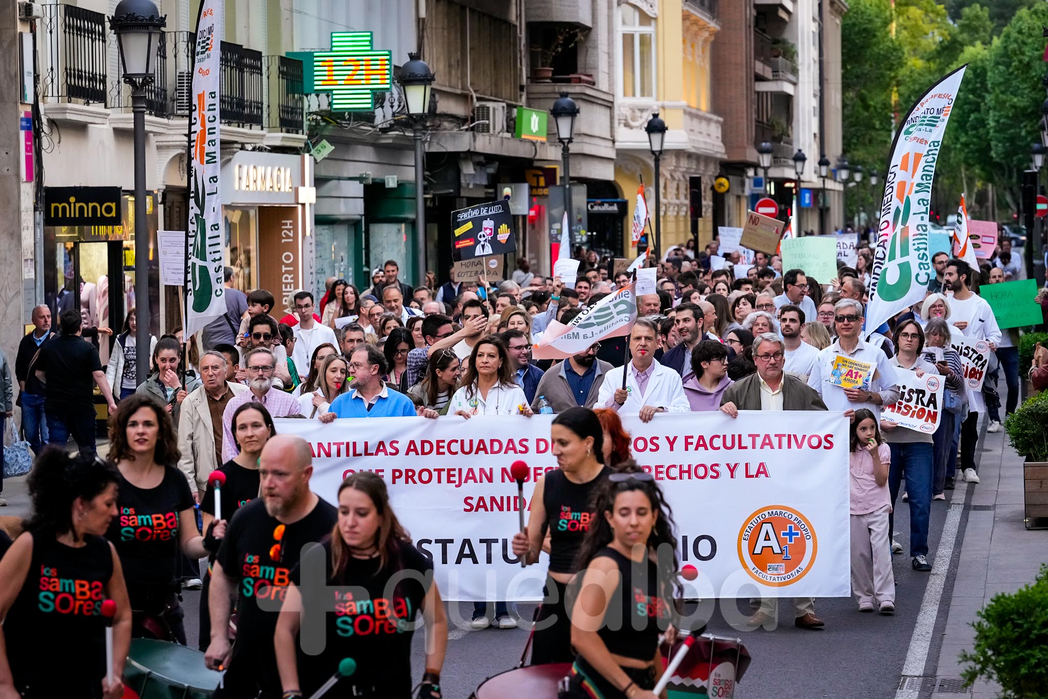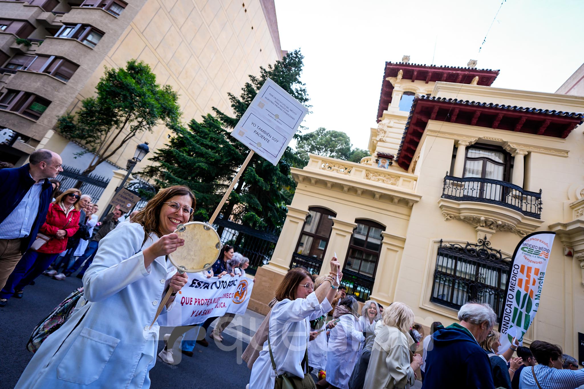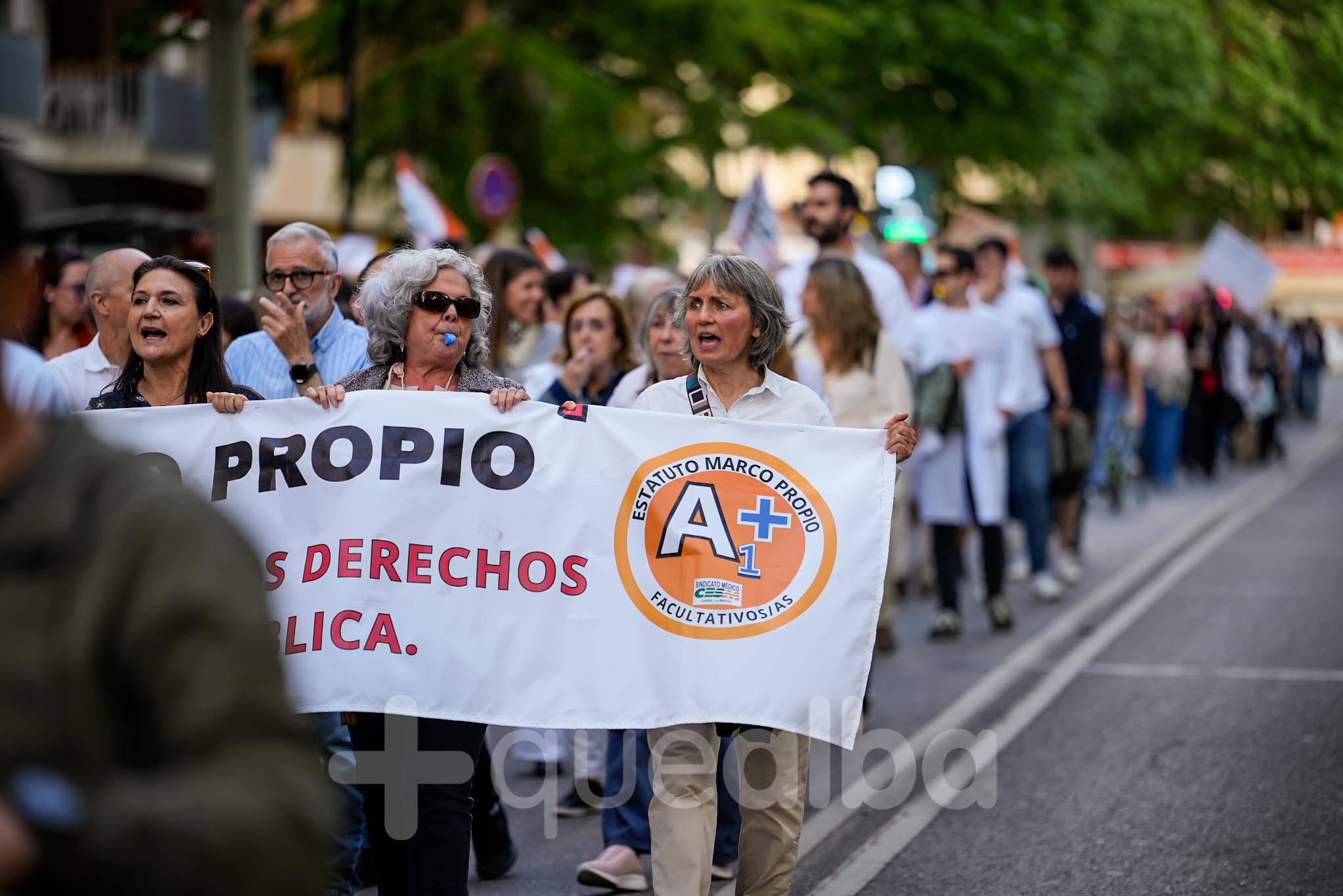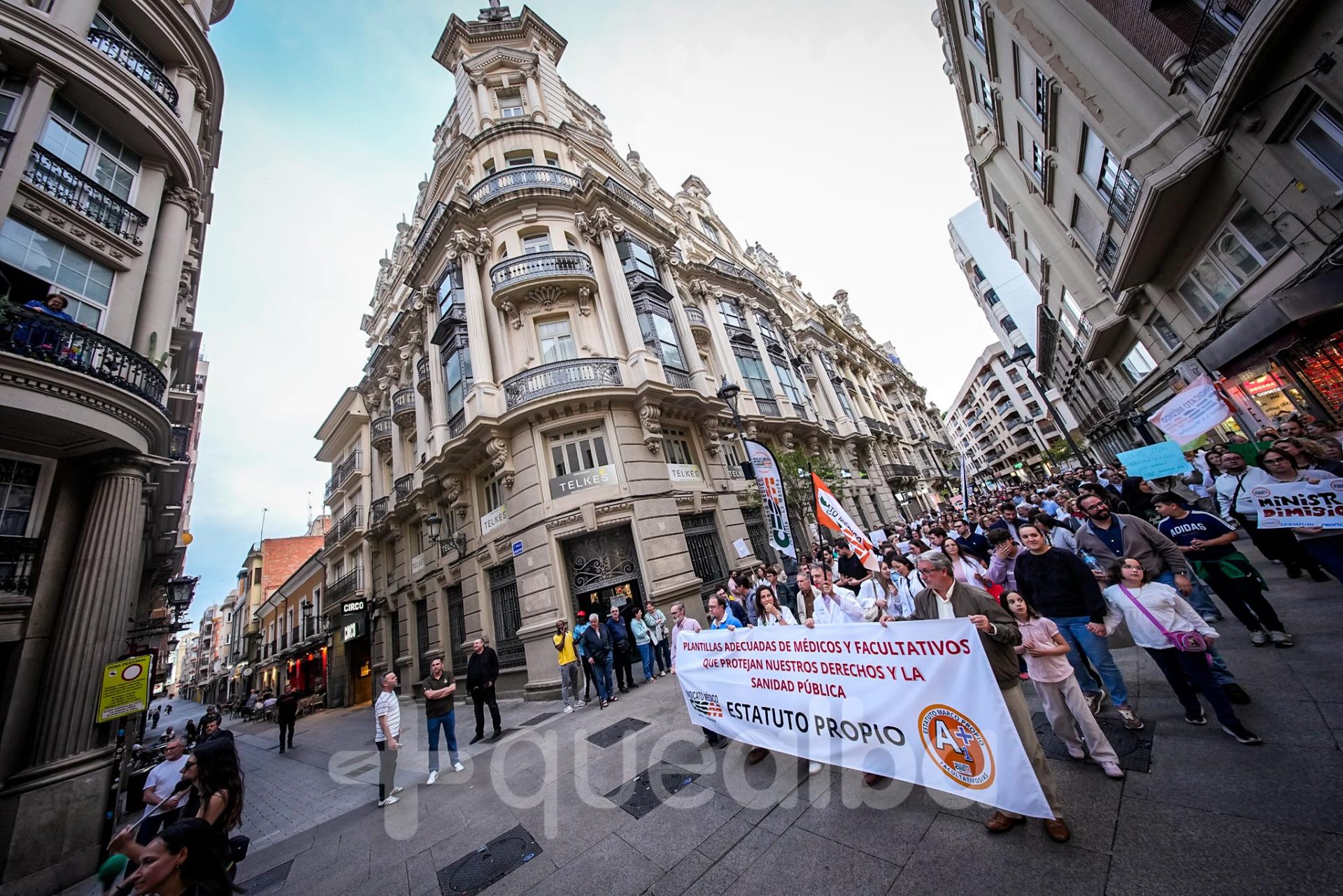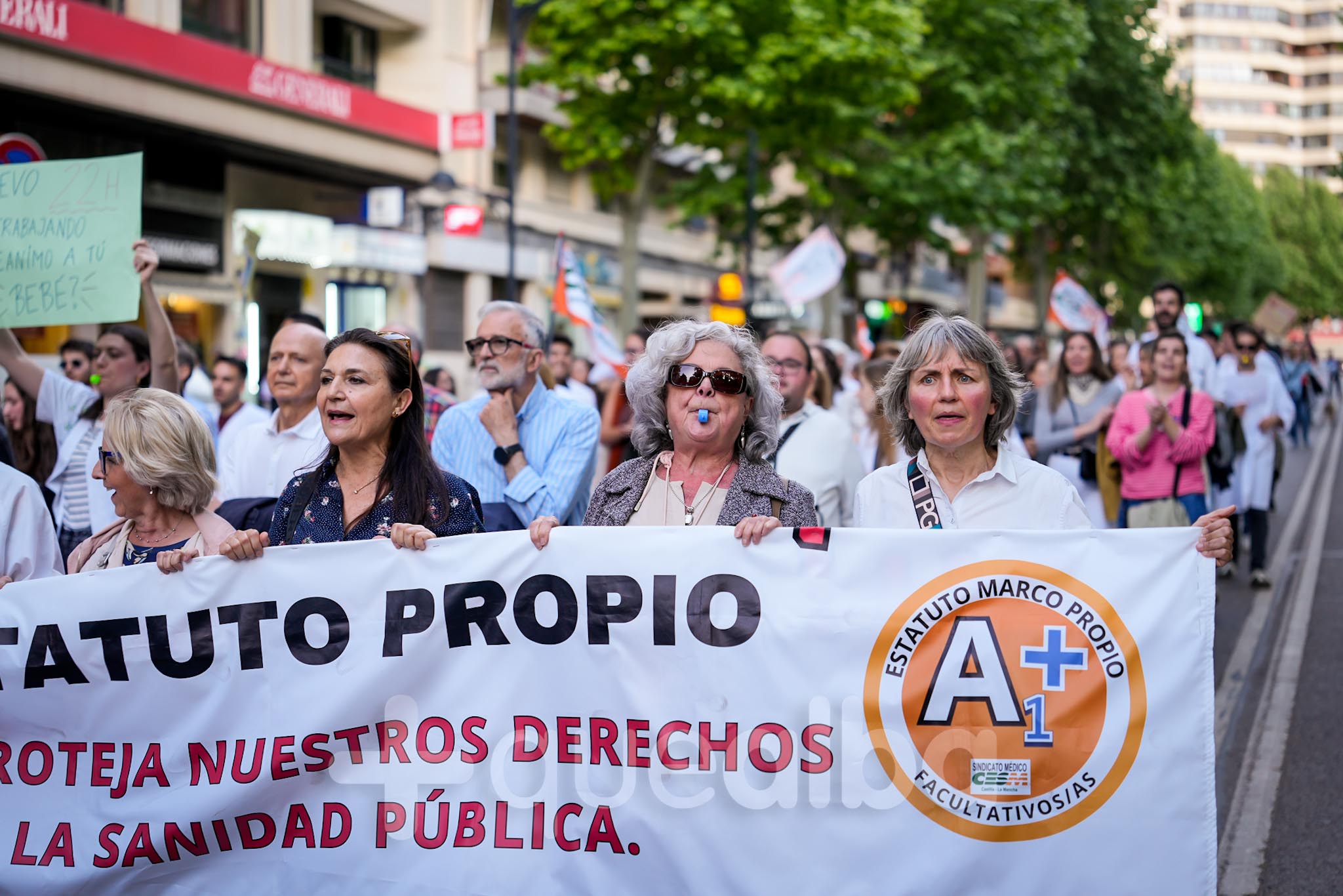 Alrededor de medio millar de médicos han participado, esta tarde-noche, en la manifestación que ha partido del Hospital, para bajar por la Avenida de España y la calle Ancha, hasta la Plaza del Altozano, para reivindicar un Estatuto Marco propio. La protesta se enmarca en la nueva semana de huelga médica y ha sido convocada por el Sindicato de Médicos CESM.