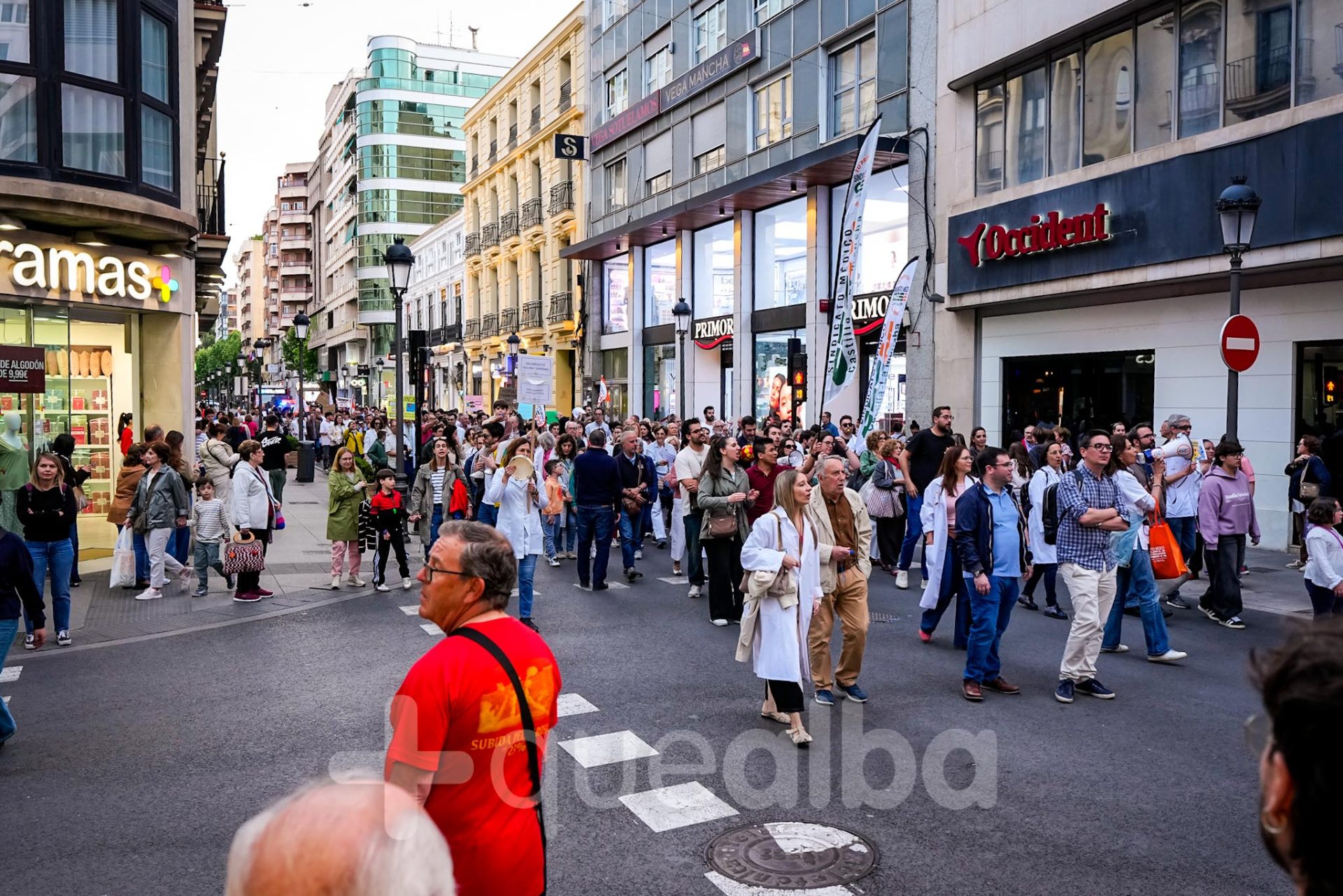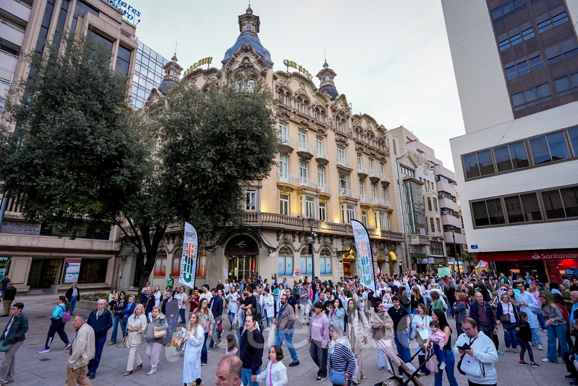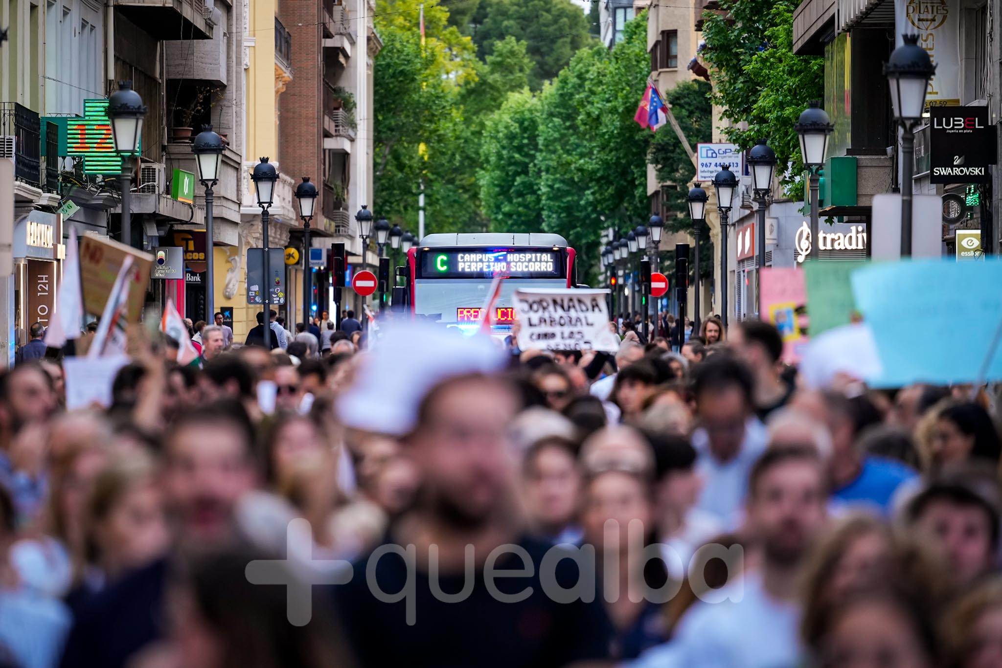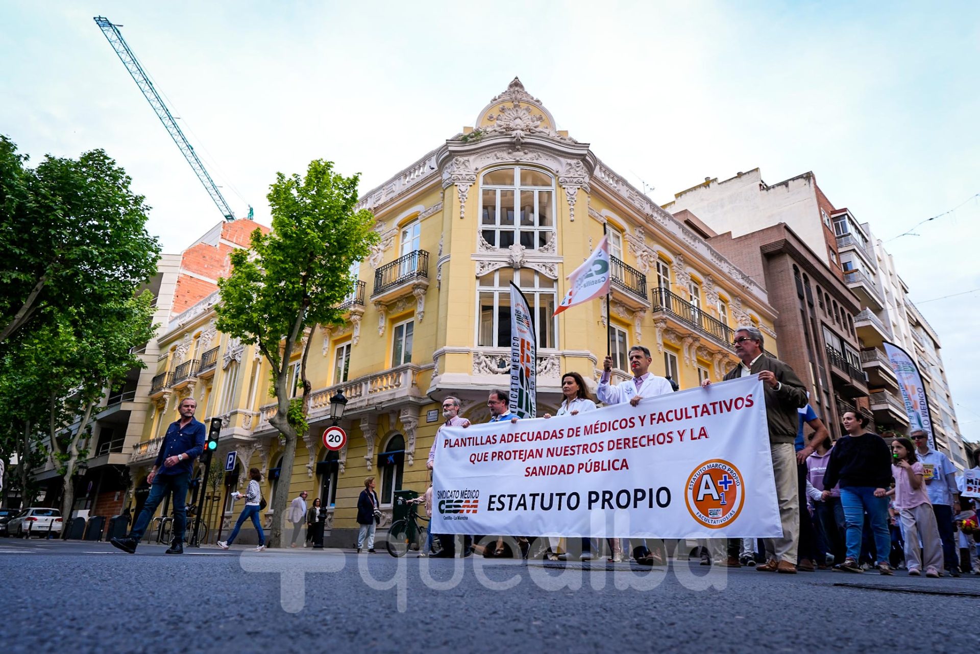 Alrededor de medio millar de médicos han participado, esta tarde-noche, en la manifestación que ha partido del Hospital, para bajar por la Avenida de España y la calle Ancha, hasta la Plaza del Altozano, para reivindicar un Estatuto Marco propio. La protesta se enmarca en la nueva semana de huelga médica y ha sido convocada por el Sindicato de Médicos CESM.