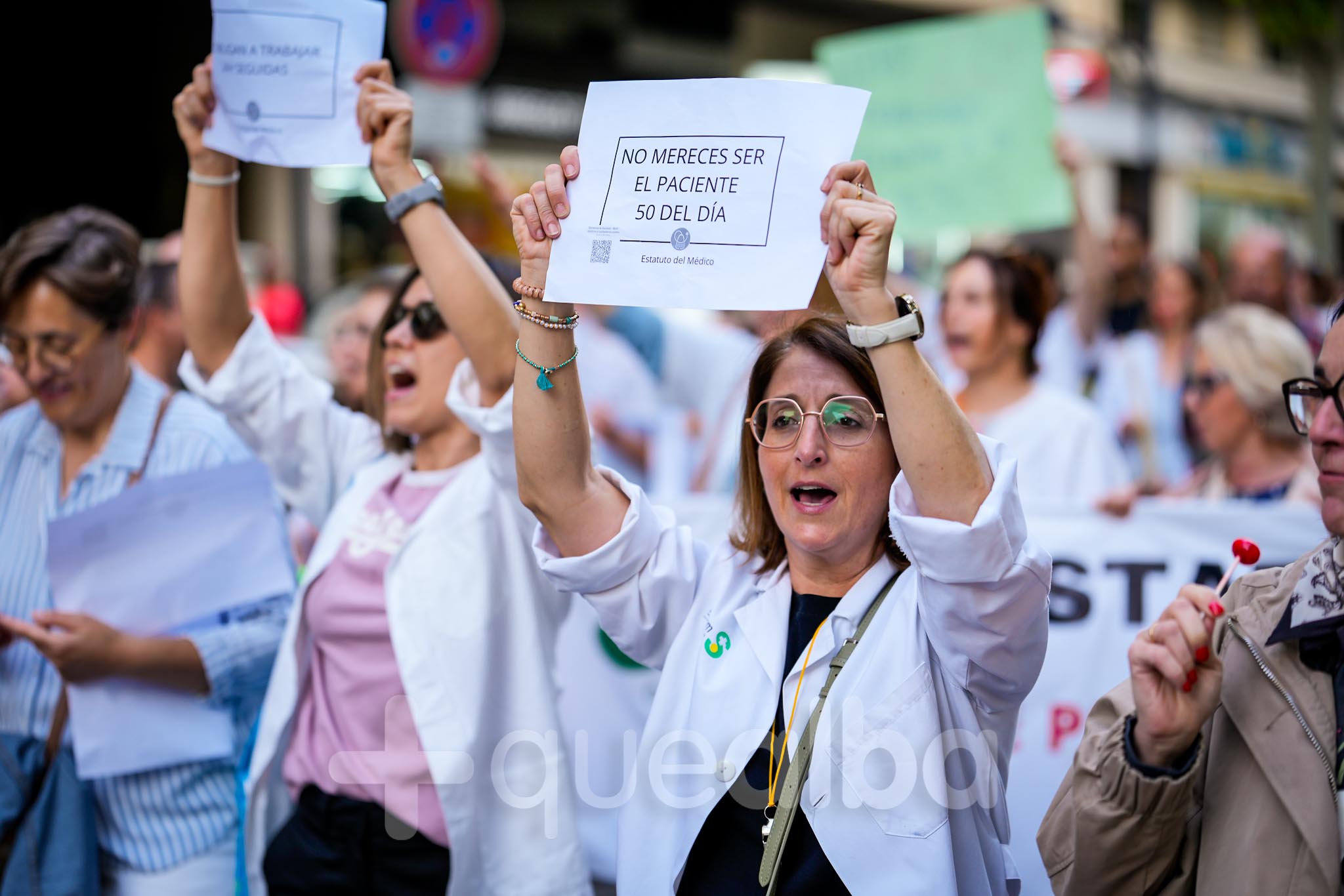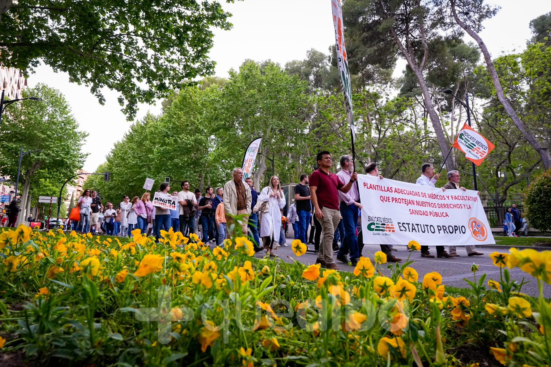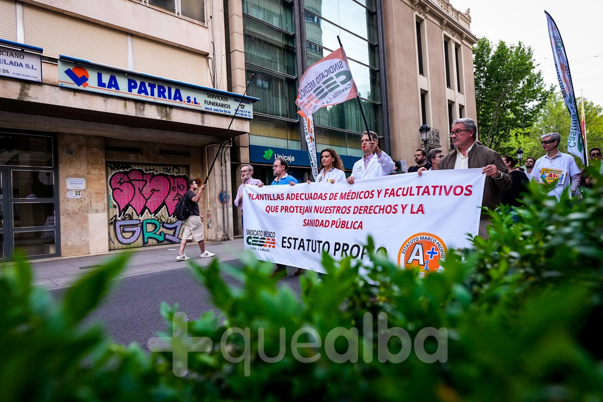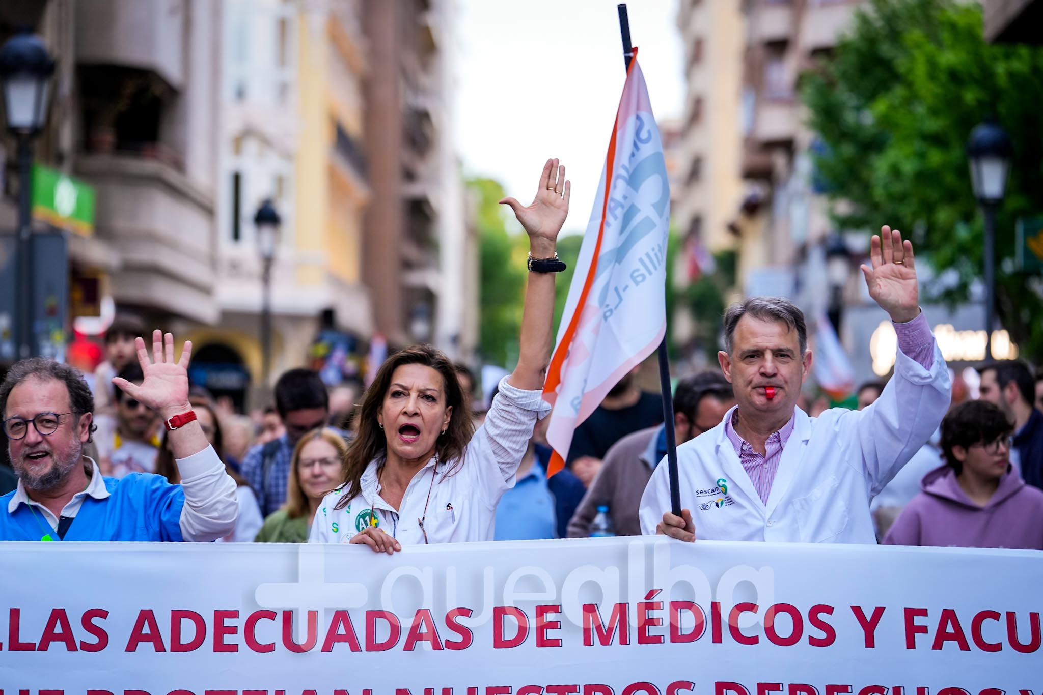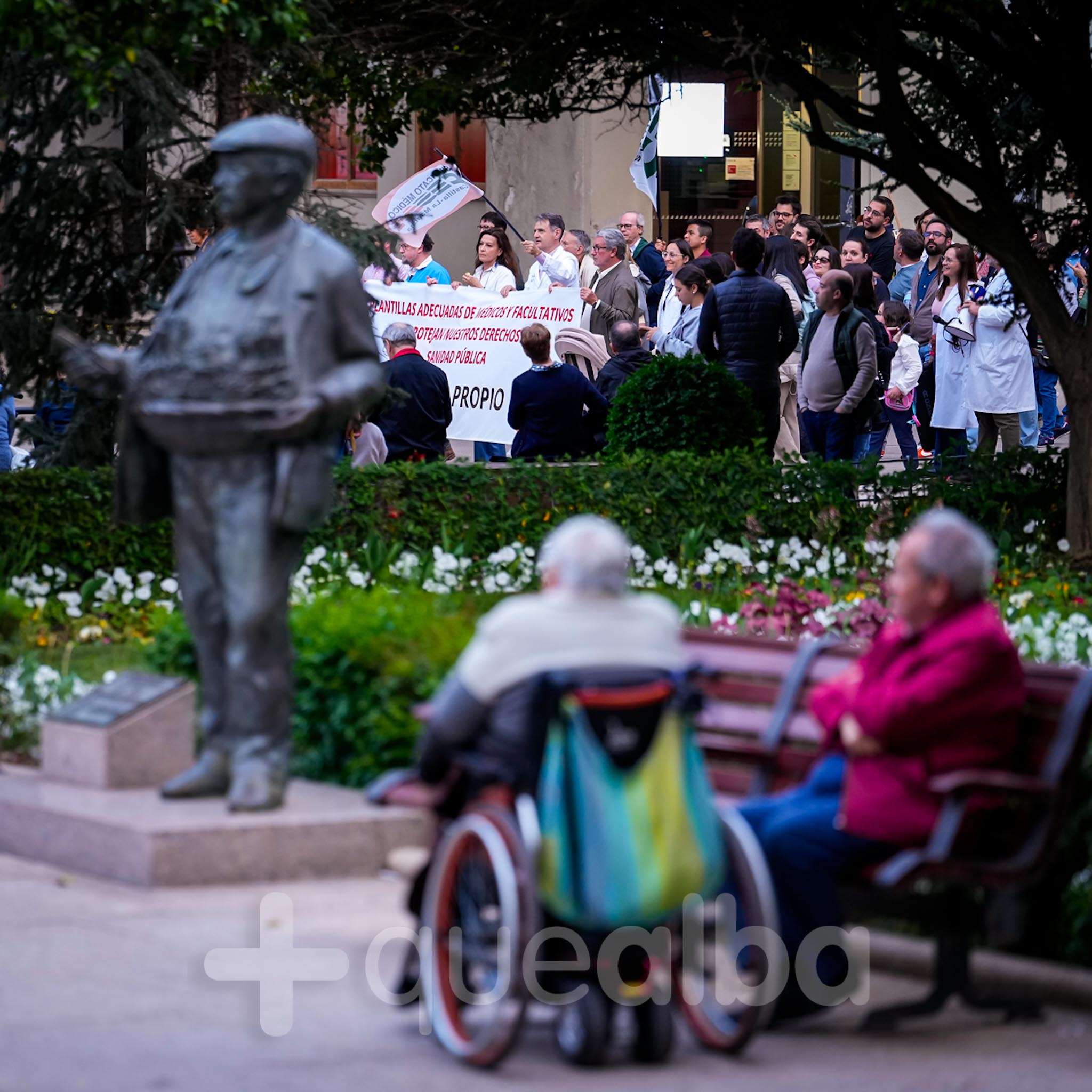 Alrededor de medio millar de médicos han participado, esta tarde-noche, en la manifestación que ha partido del Hospital, para bajar por la Avenida de España y la calle Ancha, hasta la Plaza del Altozano, para reivindicar un Estatuto Marco propio. La protesta se enmarca en la nueva semana de huelga médica y ha sido convocada por el Sindicato de Médicos CESM.