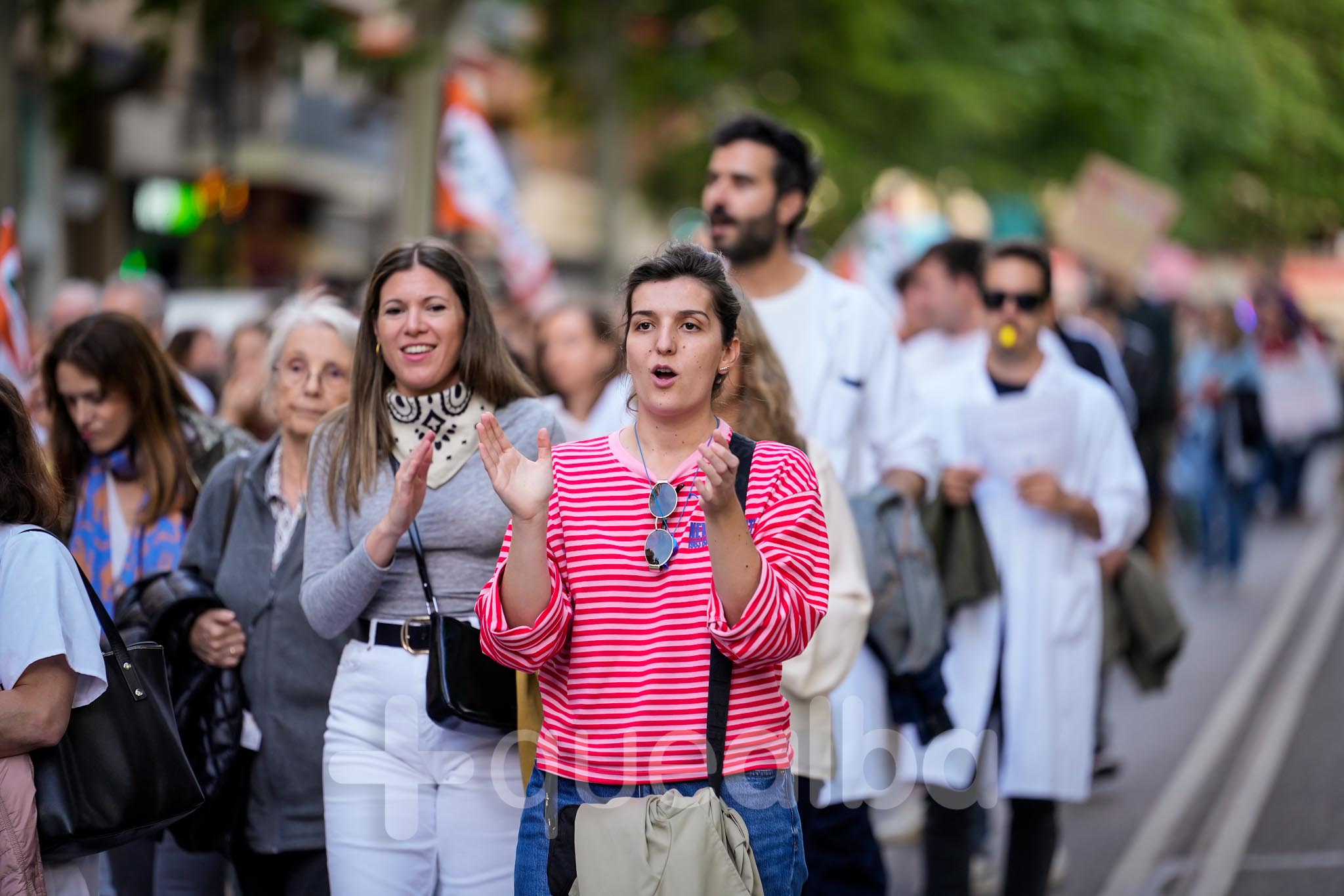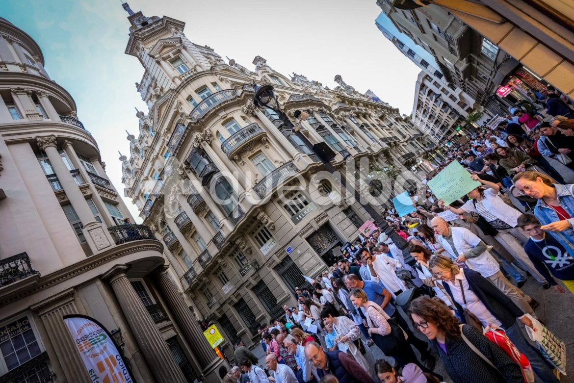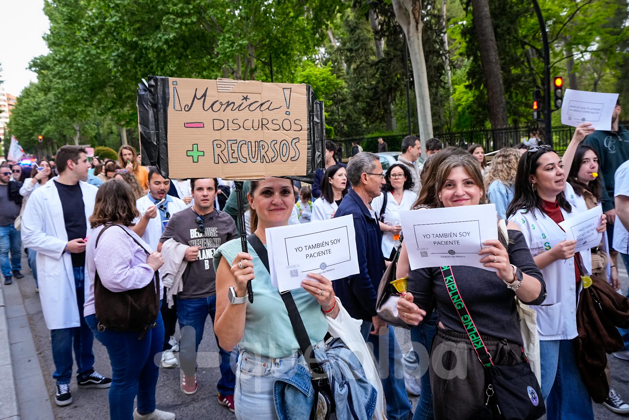 Con cánticos como «estas son las manos que te cuidan», han recorrido el centro de Albacete, mostrando pancartas con el luto por el sistema sanitario español si Mónica García no da su brazo a torcer.