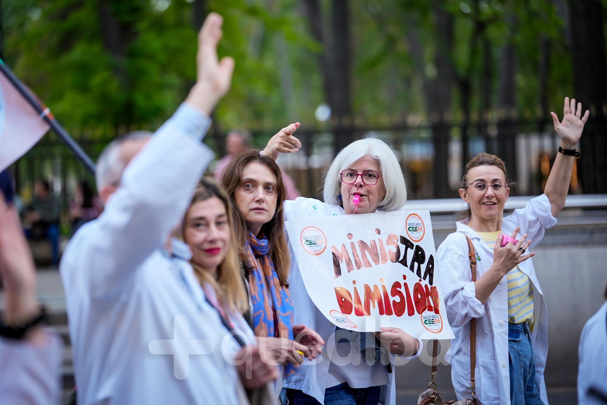 Y se han visto pancartas pidiendo la dimisión de la ministra de Sanidad, Mónica García, a quien en la lectura del manifiesto han acusado «de no querer negociar con nosotros de manera seria y racional». En su manifiesto, los médicos han pedido disculpas a los pacientes por los inconvenientes que les está acarreando las convocatorias de huelga.