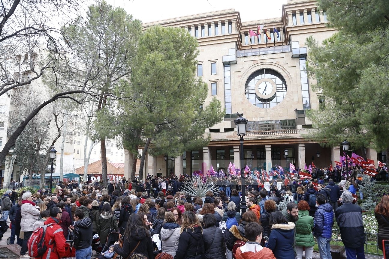 Unas 2.000 personas han acudido a la concentración convocada por 8-M en la Plaza del Ayuntamiento de Albacete, en el marco del paro de dos horas del turno de mañana.