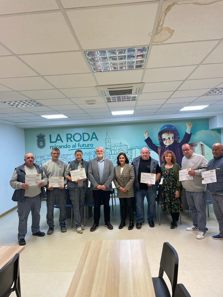 Ocho de esos contratos salen, precisamente, de este taller formativo, que durante los últimos seis meses se ha desarrollado en la localidad rodense. Ruiz Santos ha hecho entrega de los diplomas que acreditan la recualificación laboral de los trabajadores y trabajadoras que han formado parte. Durante el acto, en el que ha estado acompañado por la concejal de Empleo, María Ángeles García Tébar, ha tenido palabras de reconocimiento hacia el trabajo realizado por alumnos y alumnas y equipo formativo en este taller, que ha permitido mejorar varios espacios municipales rodenses.