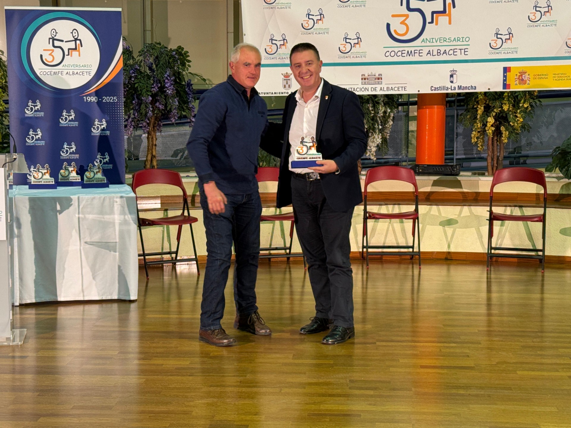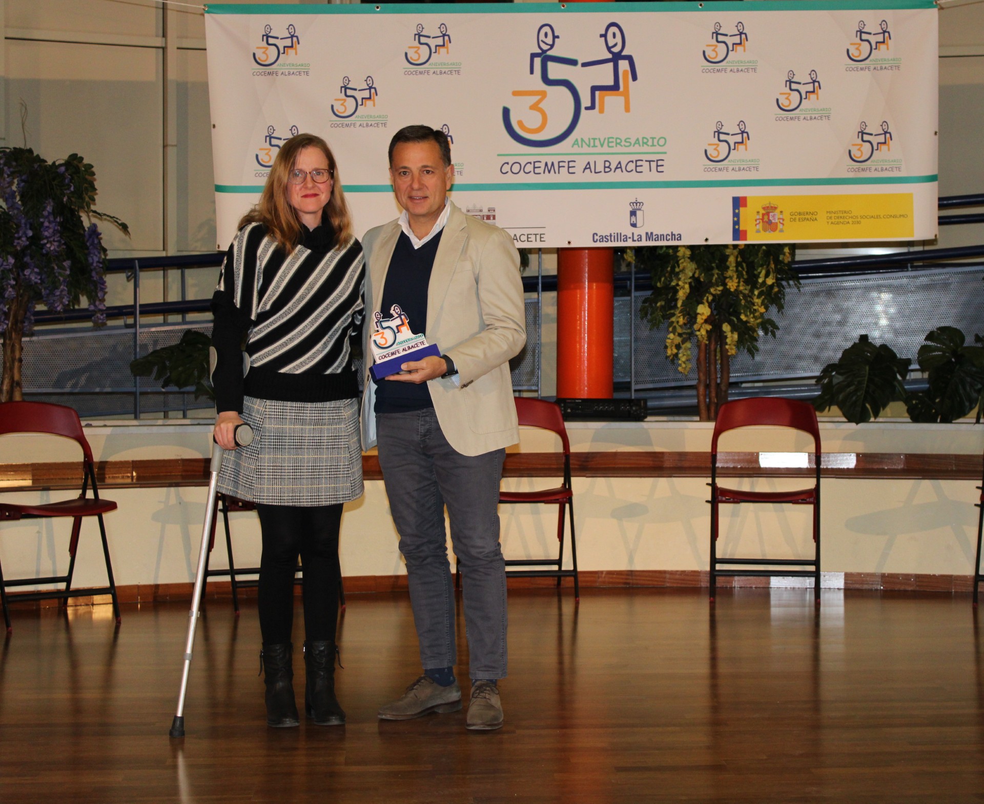 El alcalde y concejal de Inclusión y Accesibilidad, Manuel Serrano, ha agradecido a la Federación de Asociaciones de Personas con Discapacidad Física y Orgánica de Albacete, Cocemfe, el reconocimiento que hoy ha entregado al Ayuntamiento porque “es un aliciente para que sigamos avanzando hacia una ciudad accesible e inclusiva en la que todas las personas puedan alcanzar sus sueños y aspiraciones sin barreras ni impedimentos”.