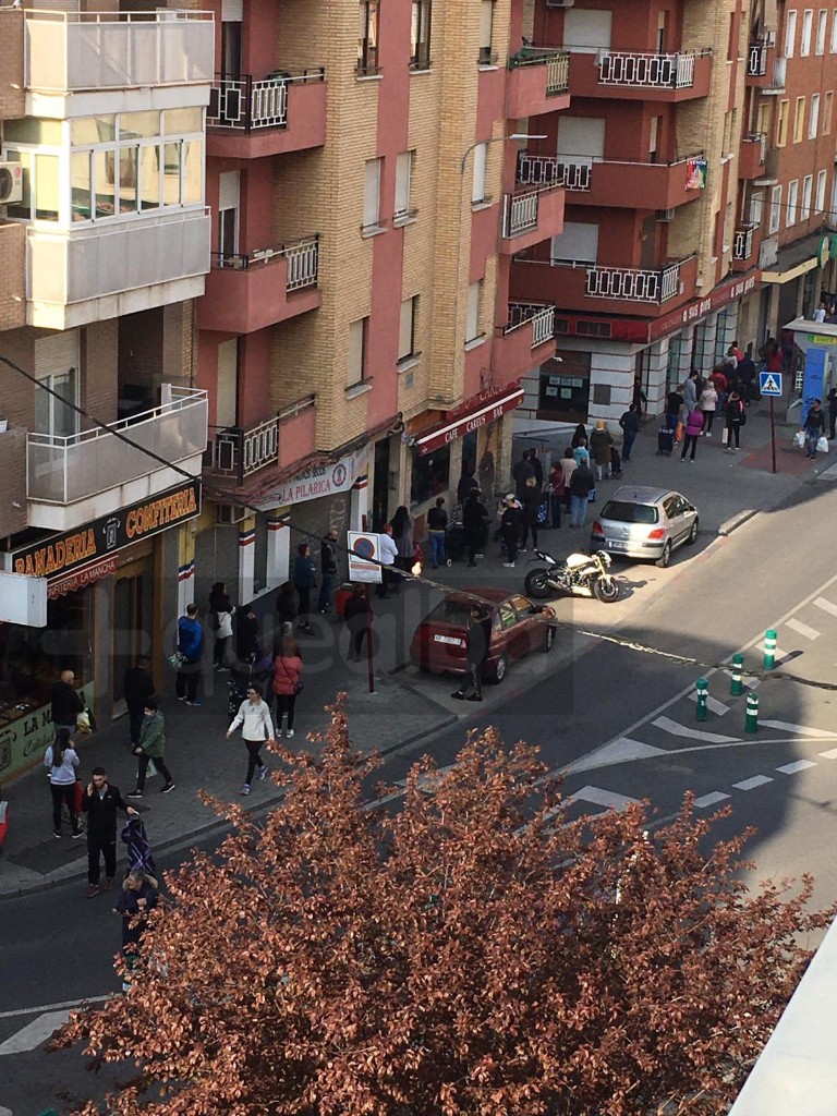 Numerosas personas hacían cola en las puertas de muchos de los supermercados de Albacete antes de su apertura este sábado.