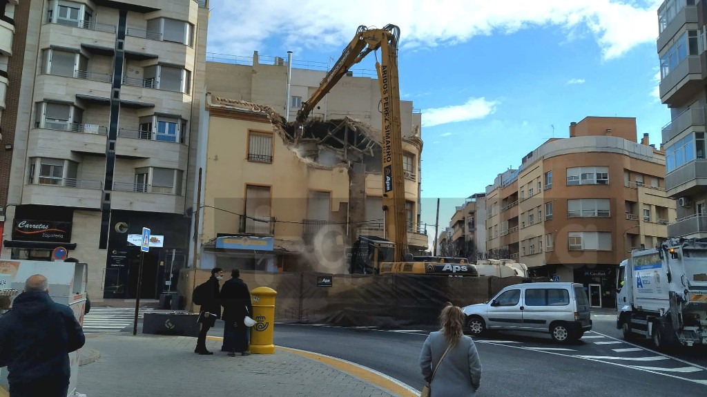 Este martes ha comenzado el derribo del edificio en ruinas en la Plaza de las Carretas, esquina con calle Cid, que llevaba tiempo con vallas alrededor por el riesgo de desprendimiento. Los vecinos venían solicitando que se actuara para evitar el peligro que suponía.
