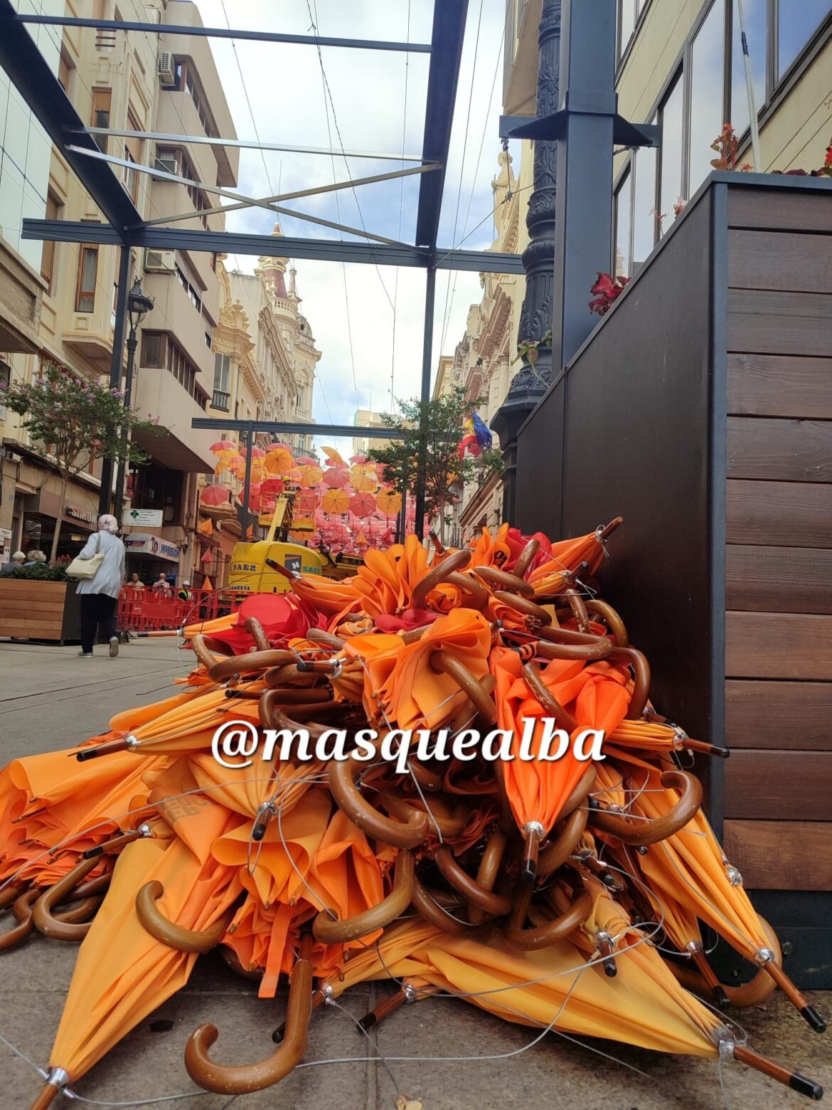 Ayer terminaba la Feria de Albacete y hoy ha comenzado la retirada de los paraguas de la Calle Ancha, del proyecto ‘Umbrella Sky’ que se puso en marcha este verano, desde la empresa RES y en colaboración con la AECC.