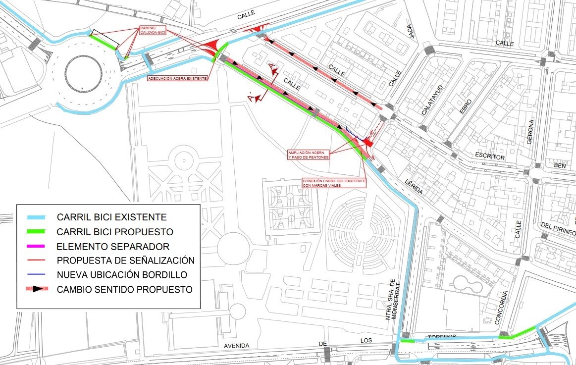González ha recordado que dentro del proyecto para mejorar la infraestructura ciclista se incluye la actuación en la calle Lérida, “donde en estos momentos no existe un carril-bici completo, pero una vez que esté dotada con su plataforma ciclista, se podrá conectar con los carriles-bici del Canal de María Cristina y de la calle Virgen del Pilar”.