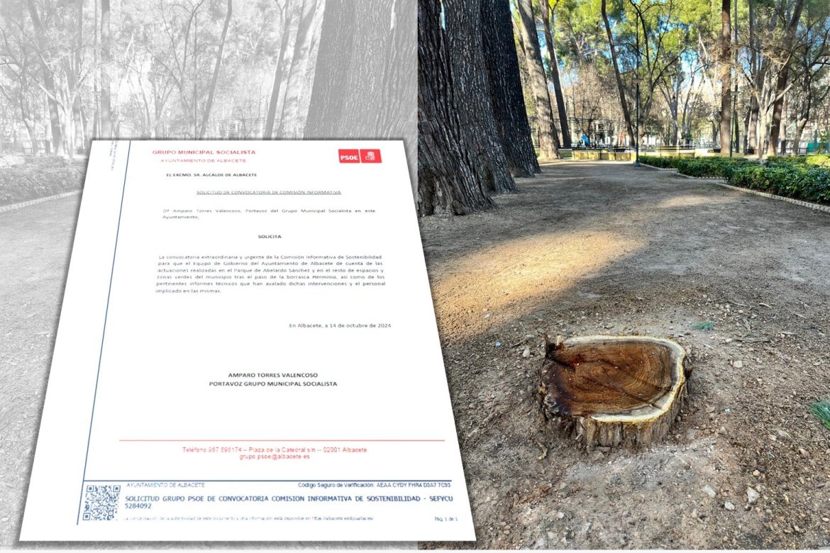 El Grupo Municipal Socialista ha solicitado la convocatoria extraordinaria y urgente de la Comisión de Sostenibilidad, para que el Equipo de Gobierno informe y rinda cuentas de las actuaciones realizadas en el Parque de Abelardo Sánchez y en el resto de espacios y zonas verdes del municipio, tras el paso de la borrasca Herminia, así como de los pertinentes informes técnicos que han avalado dichas intervenciones y el personal implicado en las mismas.