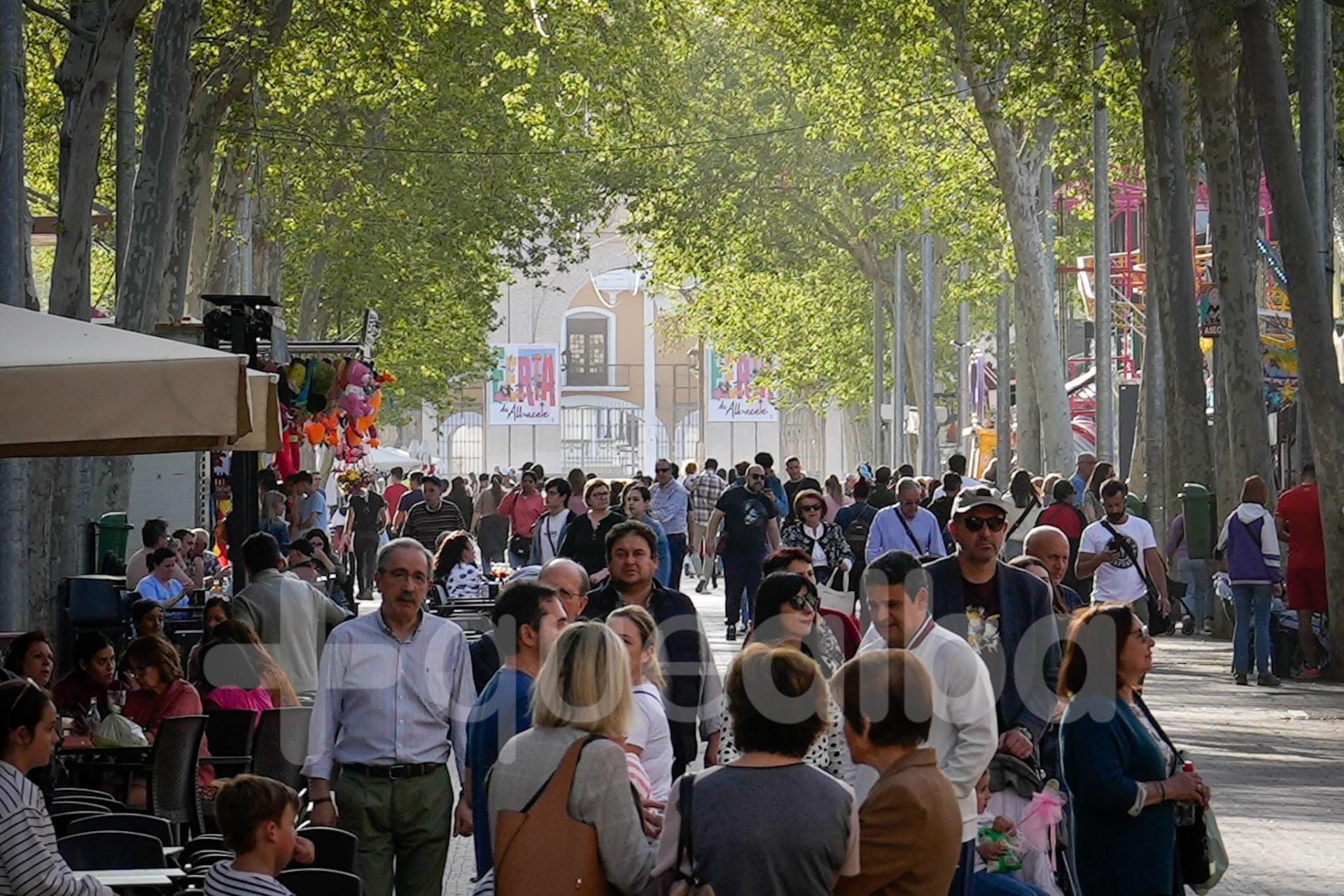 Este lunes ha sido laborable en Albacete pero así estaba, cerca de las ocho de la tarde, el Paseo de la Feria. Normal con estas temperaturas prácticamente como si fuera el mes de julio.
