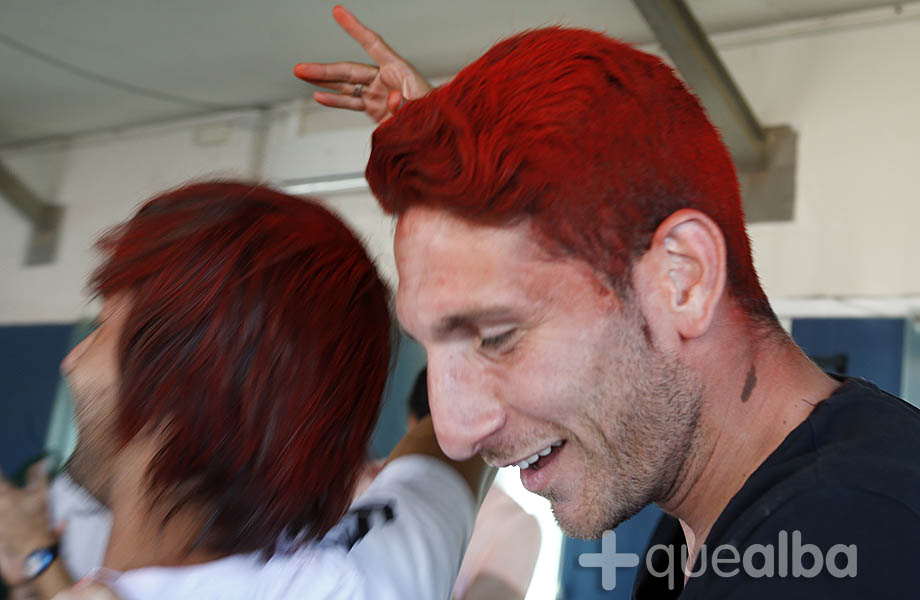Mario Ortiz ha desvelado hoy, tras el entrenamiento, que «si el club nos permite a Rojas y a mí salir con el pelo rojo así lo haríamos», para cumplir una promesa por haber conseguido el ascenso. Ya les vimos así en la fiesta de celebración en el autobús de los Campeones por el centro de la ciudad.