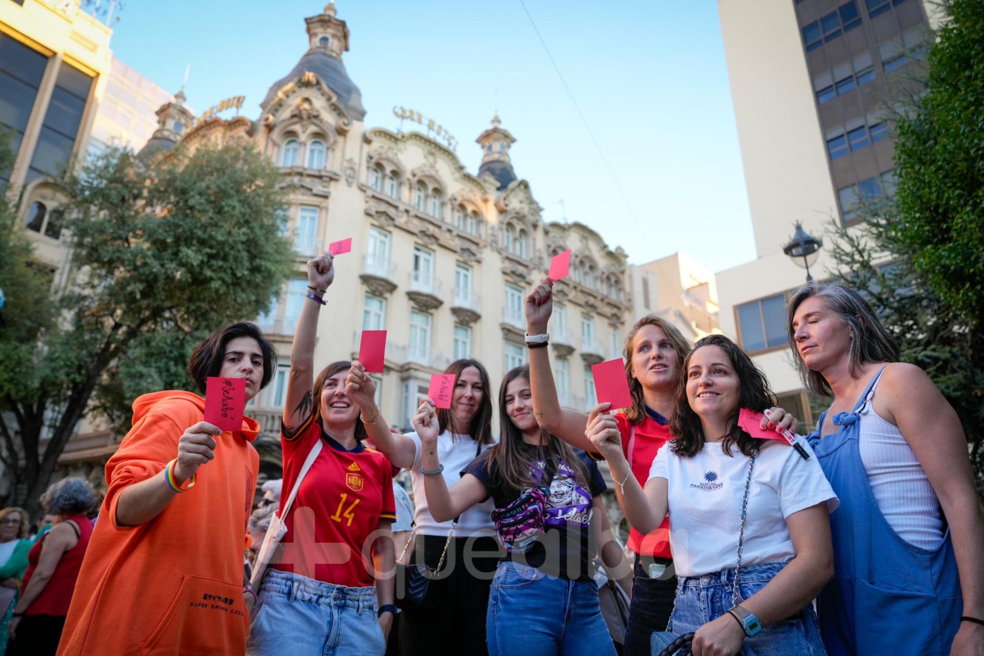 La cita había sido convocada por la Coordinadora 8M «para mostrar nuestra repulsa frente a los hechos acontecidos el pasado 20 de agosto durante la entrega de medallas de la Copa Mundial Femenina de fútbol, así como las falacias y manipulaciones que desde la Real Federación Española de Fútbol se han vertido posteriormente sobre Jenni Hermoso y todo el equipo», como lo han indicado en el manifiesto expuesto en este acto.